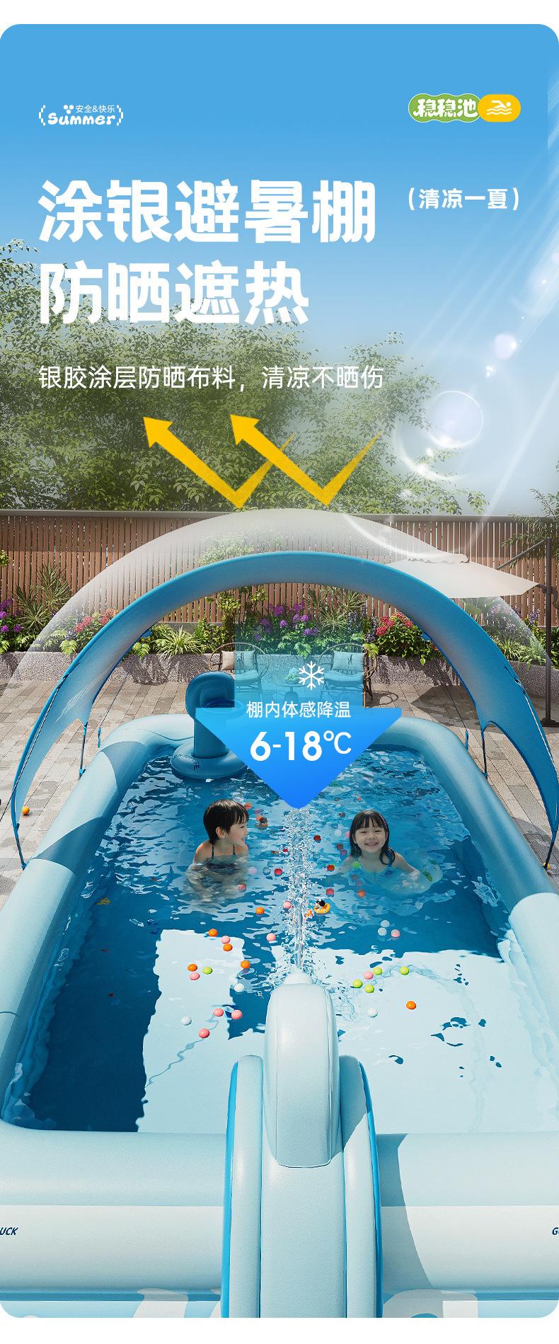 Blue shooting stand, 1.8m layer glacier secret realm inflatable pool, 2.1m layer glacier secret realm inflatab...