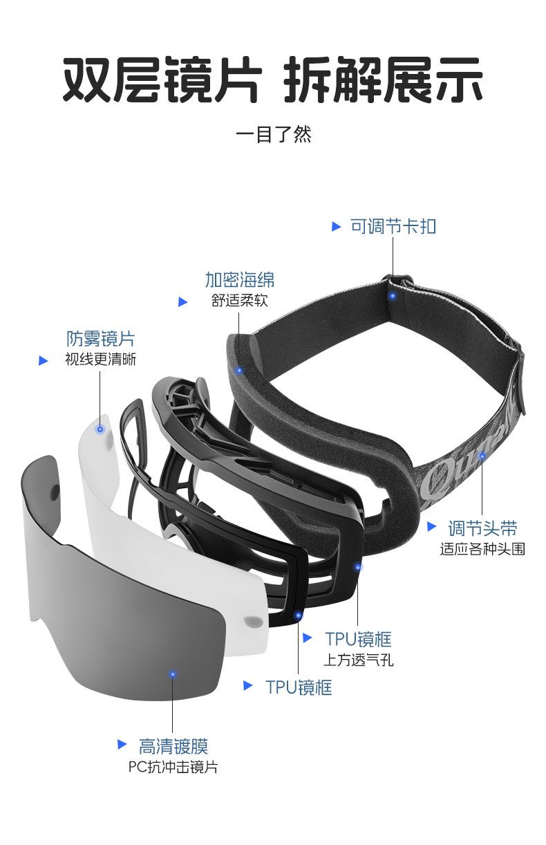 Gafas de esquí Tuoye para hombre y mujer, gafas de esquí transpirables sin montura antivaho a prueba de rayos UV, gafas para exteriores