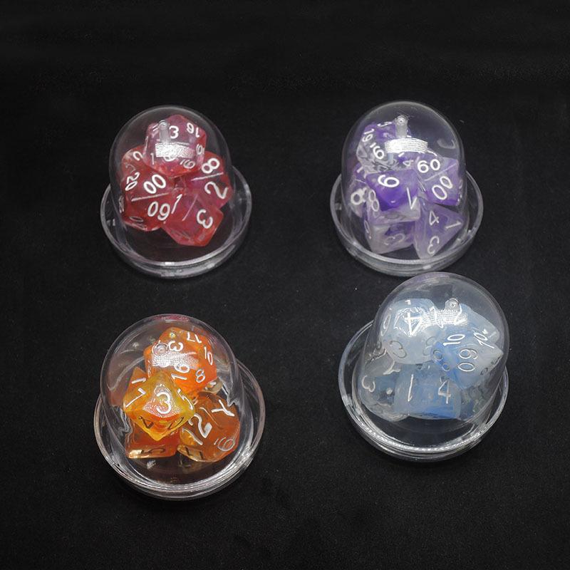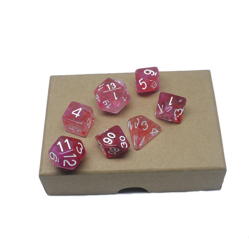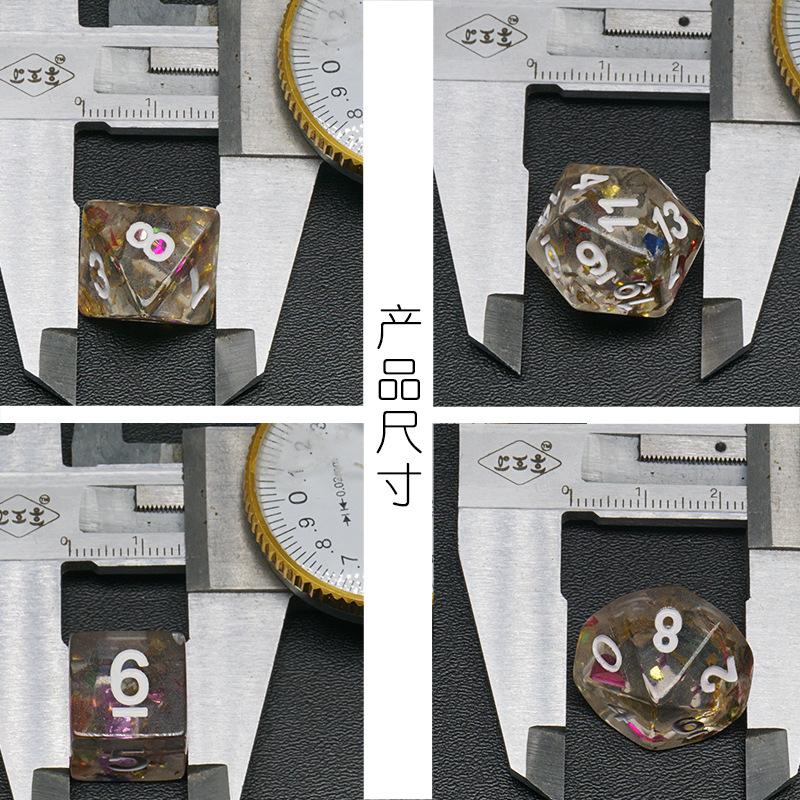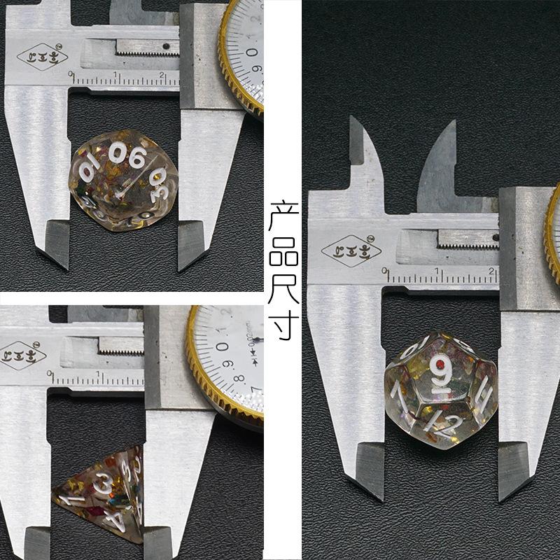 Este juego de dados poliédricos incluye siete especificaciones de dados digitales poliédricos: 4 caras/6 caras/8 caras/10 caras/12 caras/20 caras. Todos están hechos de material acrílico nuevo, con grabados claros en cada lado, patrones de dados brillantes y claros, y una apariencia hermosa y de alta gama.Es ampliamente utilizado por varios accesorios de juego en el país y en el extranjero.