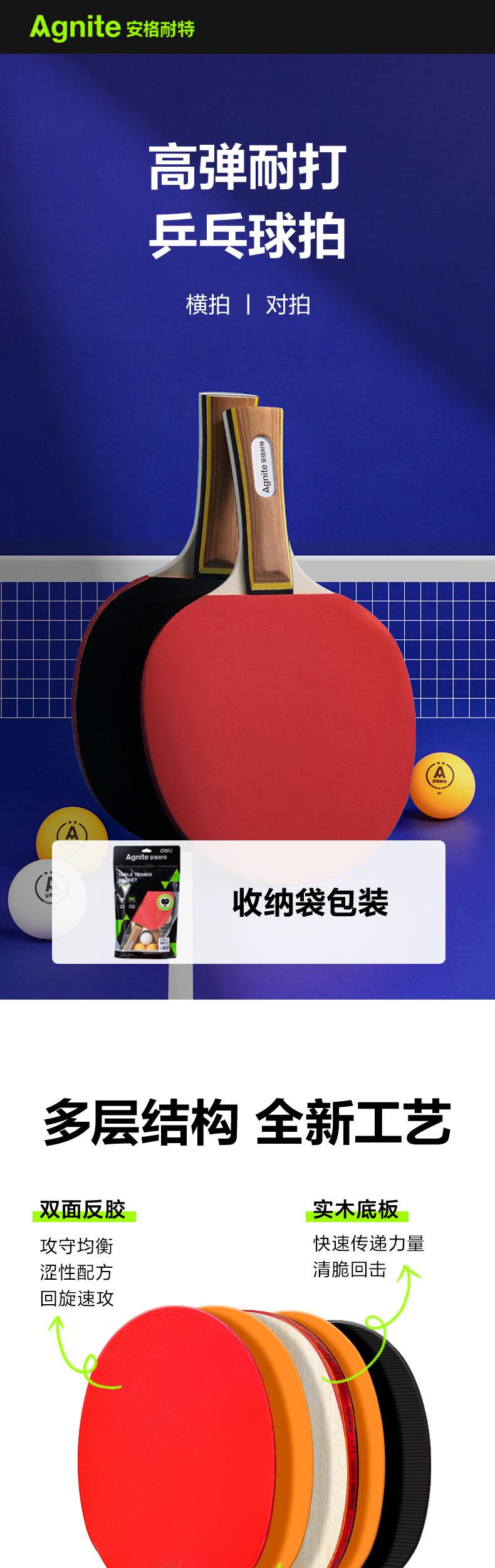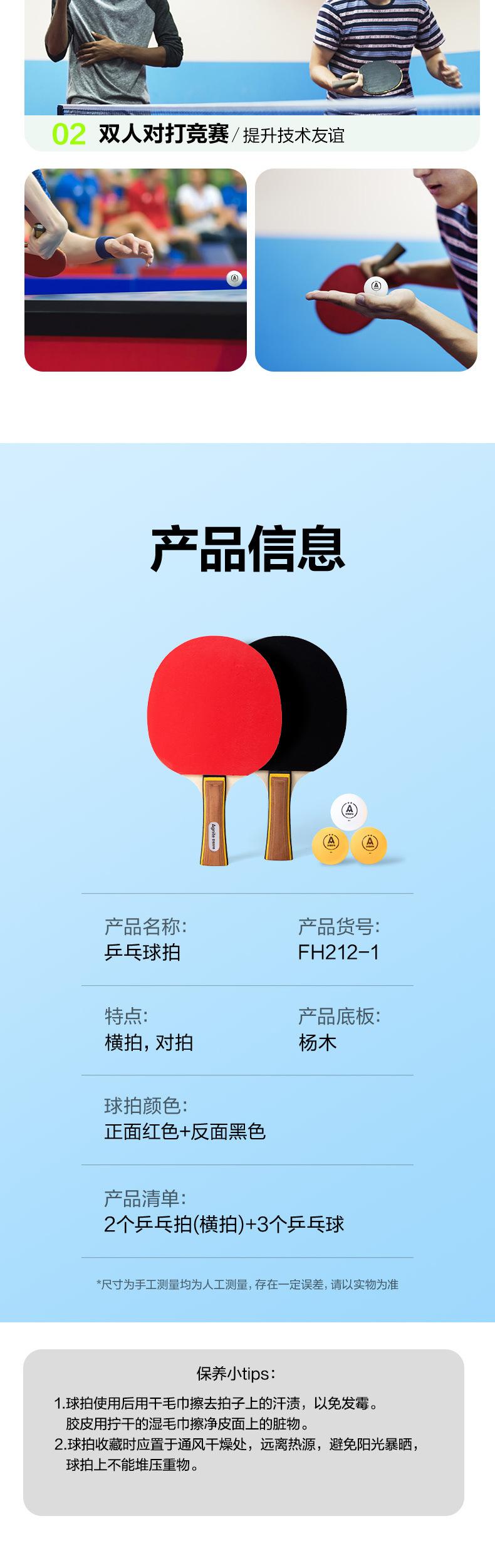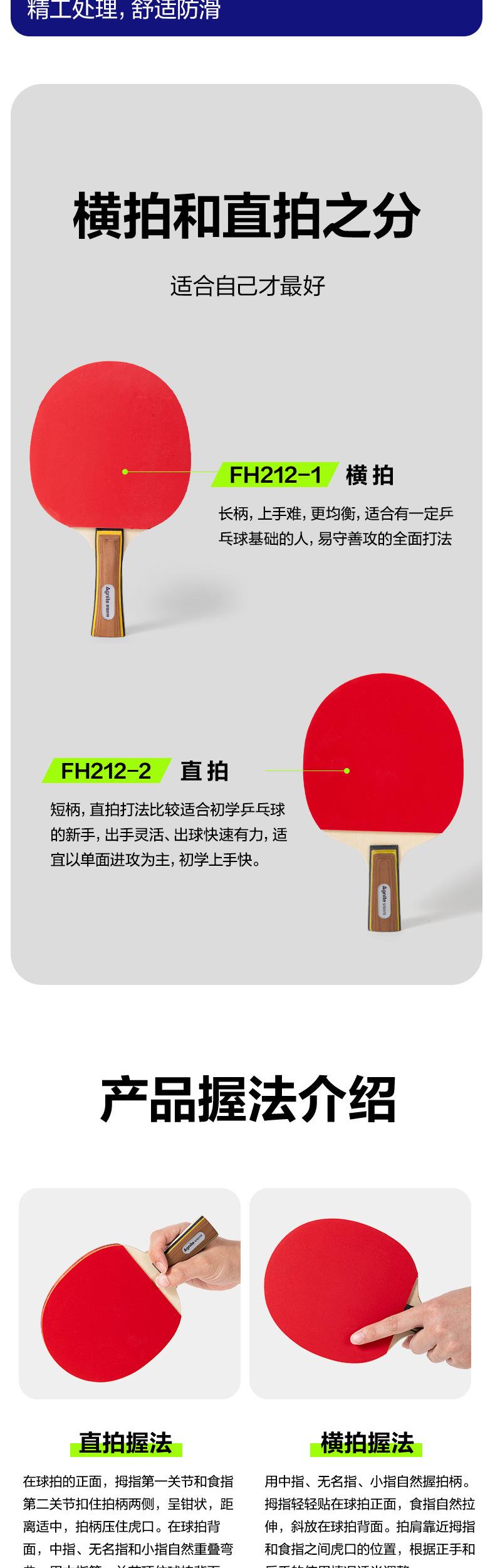 FH212-1【3-star】Set of two rackets, horizontal grip, long handle【with 3 balls】, FH212-2【3-star】Two-pack Straigh...