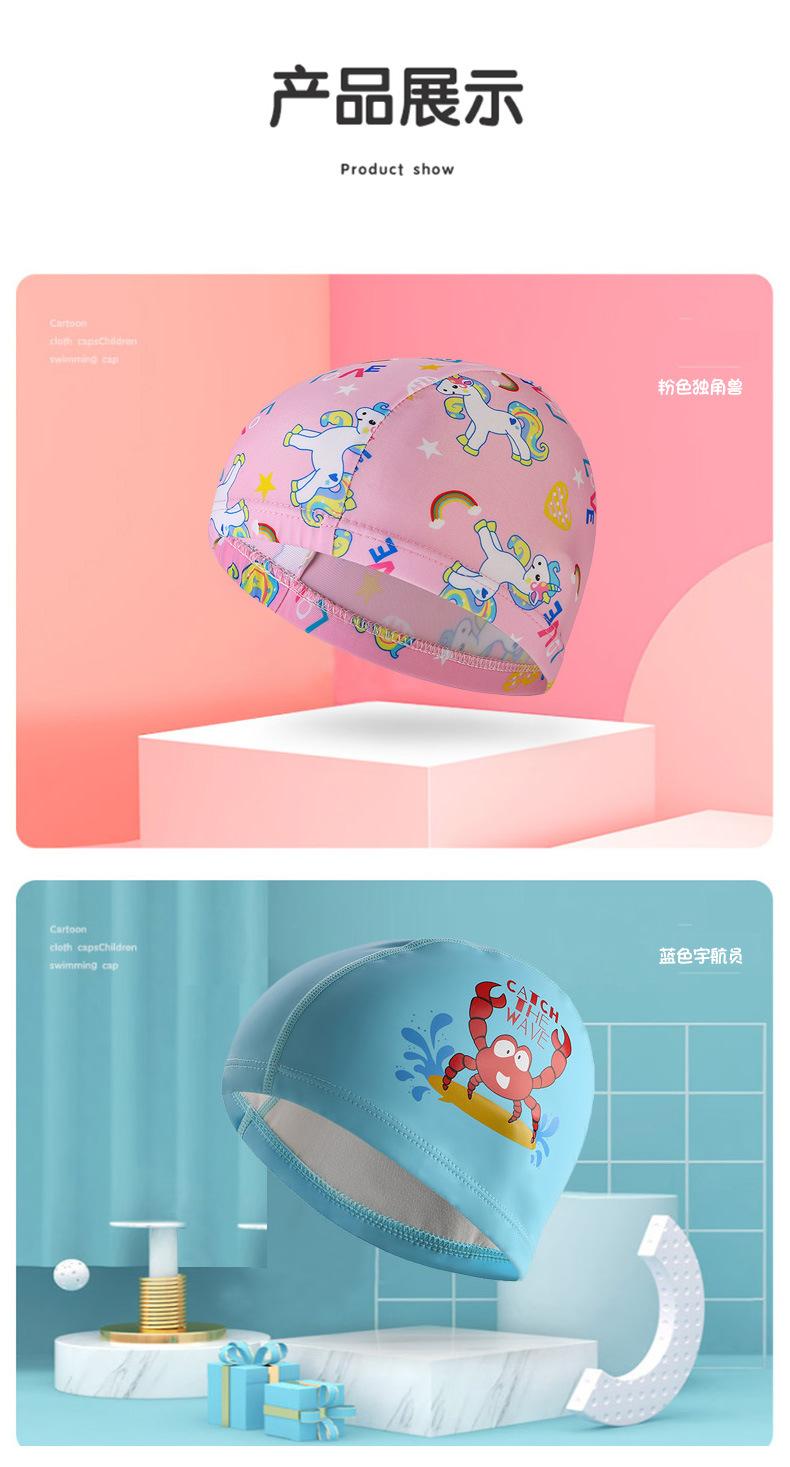 Compra Gorro de natación para niños y niñas, material de poliéster no impermeable, protección solar, sombrero con estampado de dibujos animados, cómodo, no aprieta, equipo de natación al por mayor en Joom.pro