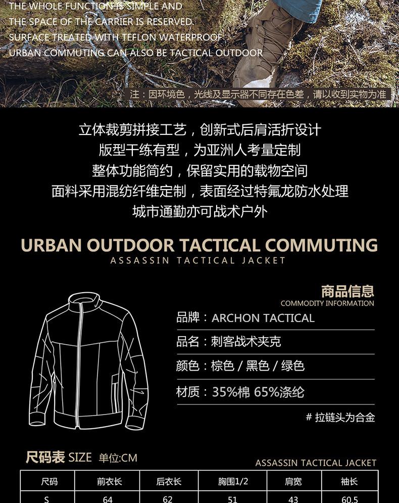 Tops Tácticos Archon Assassin para Hombre Primavera y Otoño Cortavientos Impermeables Resistentes al Desgaste Cuello Alto Tops Militares de Entrenamiento para Exteriores