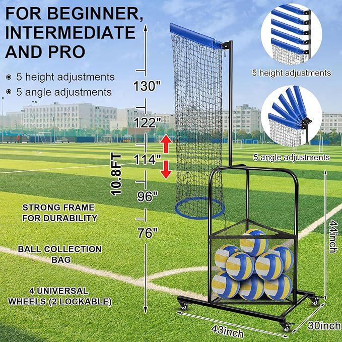 Amazon Más Vendido Red de Práctica de Voleibol de Altura Ajustable Almacenamiento Rueda de Voleibol Portátil Red de Práctica de Voleibol