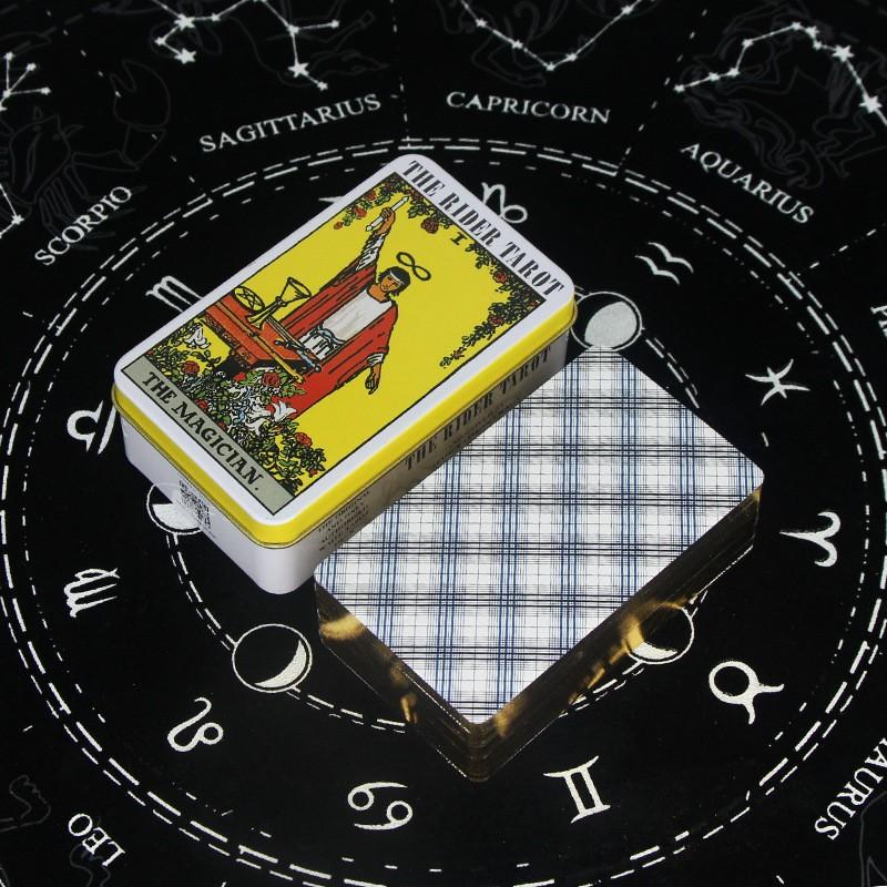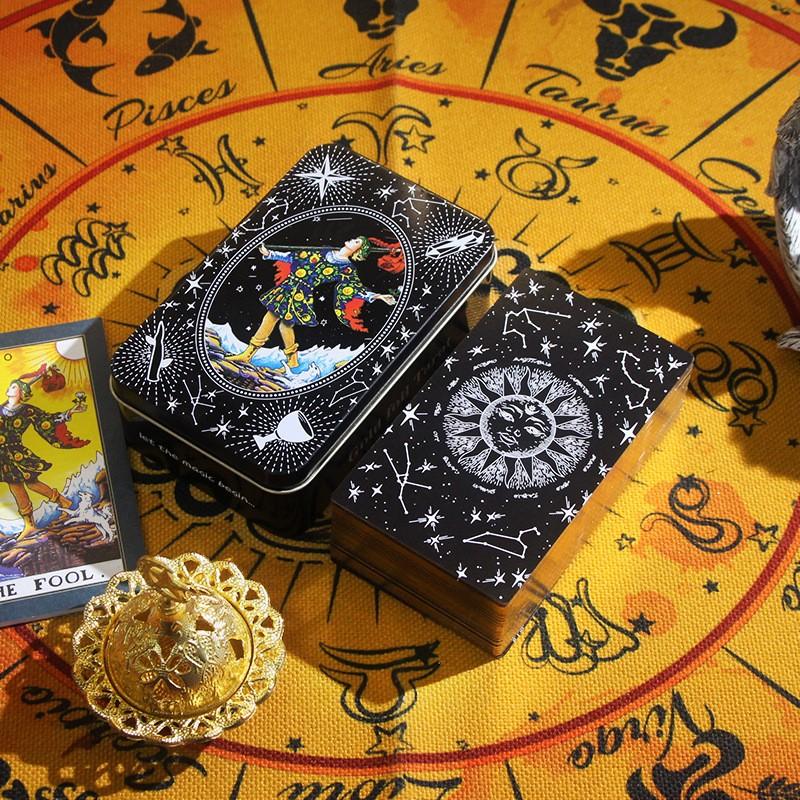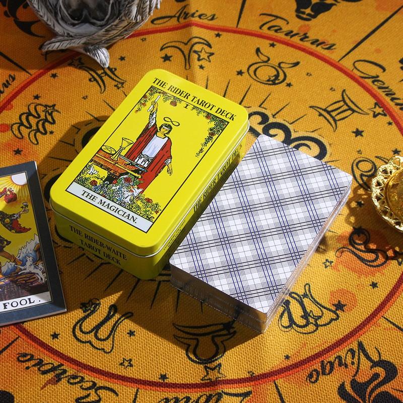 Juego de Cartas de Tarot Clásico Waite Lámina Dorada Edición Completa Caja de Hierro Cartas Impermeables de PVC Juego de Mesa Tarot del Destino en Stock Venta al por Mayor