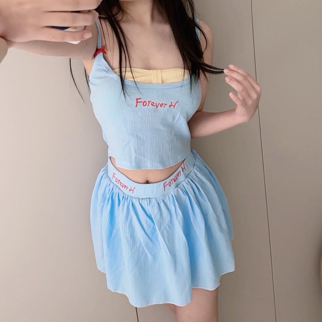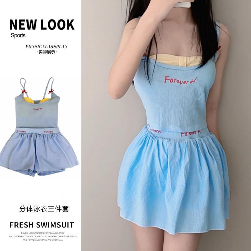 Camisola Dulce Chica Traje de Baño Dividido Chica Caliente Traje de Baño Dividido de Tres Piezas Conservador Cubre Vientre Bikini Traje de Baño para Mujer