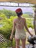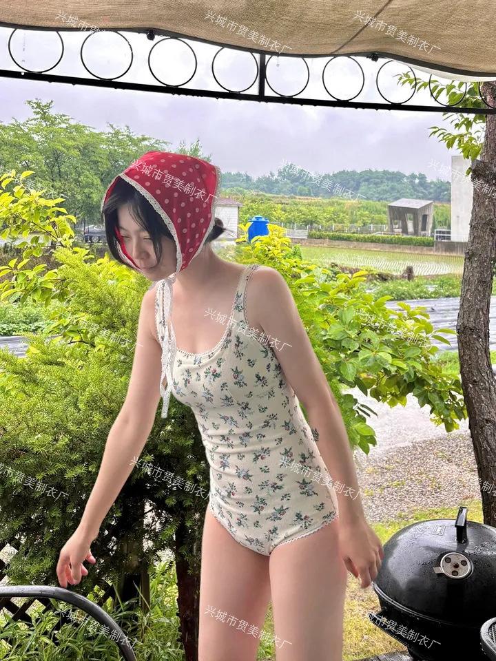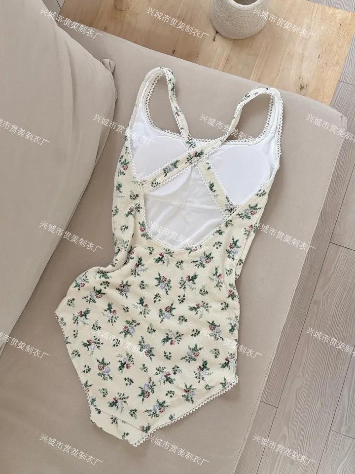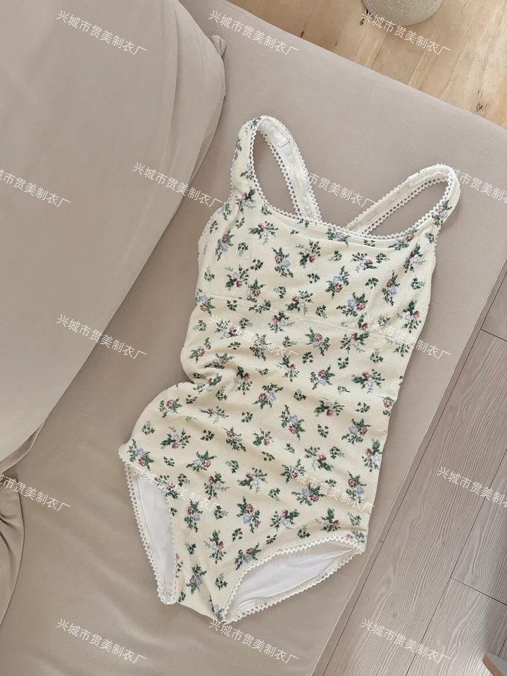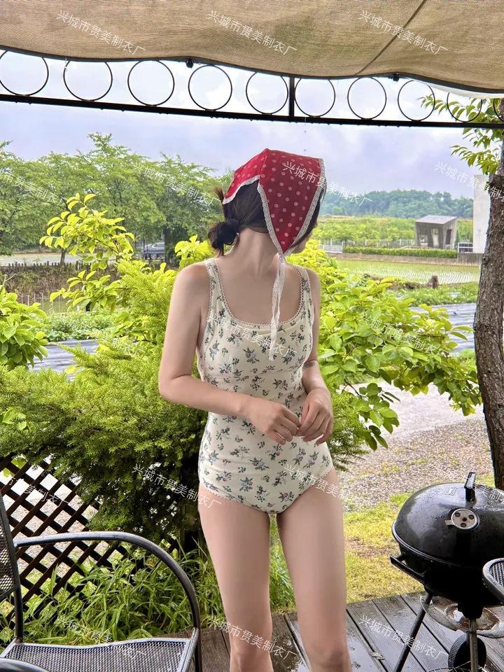 Coreano Nuevo ins Fresco Retro Floral Niña Una Pieza Tirantes Espalda Hermosa Adelgazante Triángulo Control de Abdomen Traje de Baño