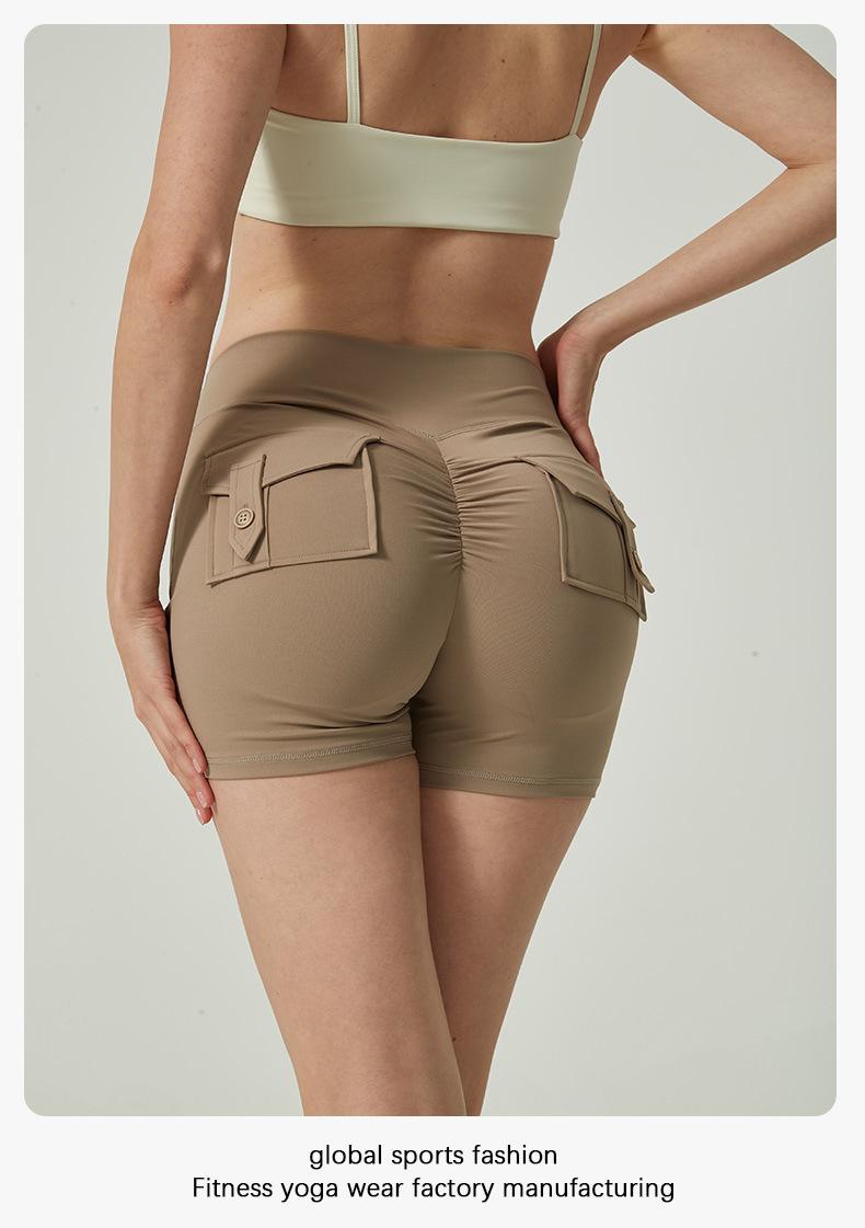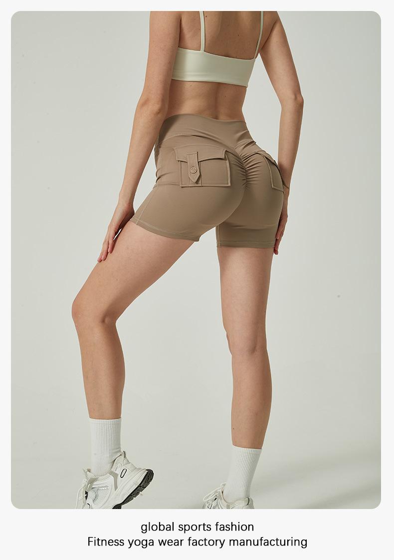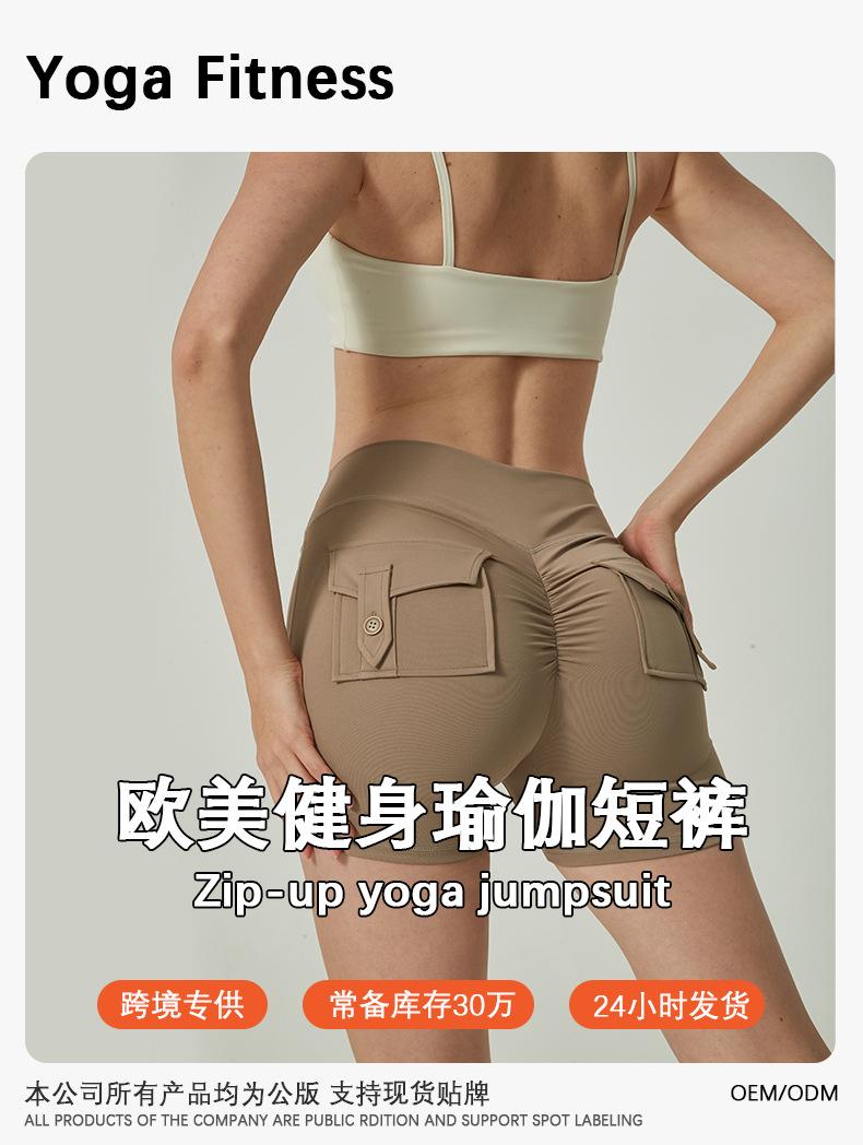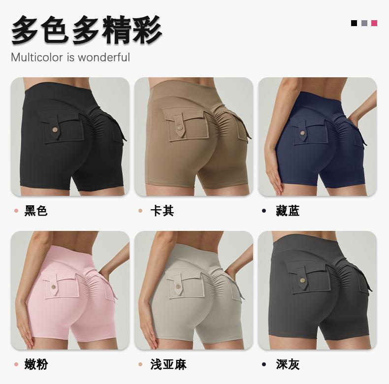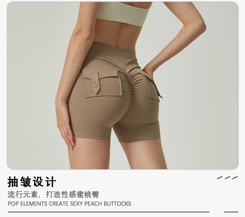 Shorts Deportivos de Bolsillo Transfronterizos Shorts de Yoga Melocotón para Mujer Sin Líneas Vergonzosas Levanta Glúteos para Correr Fitness Tres Puntos