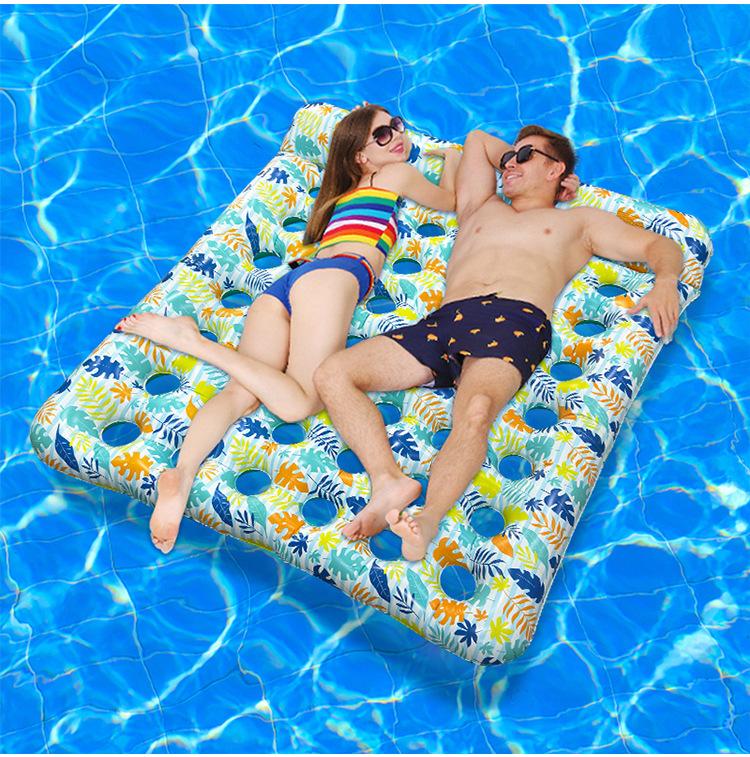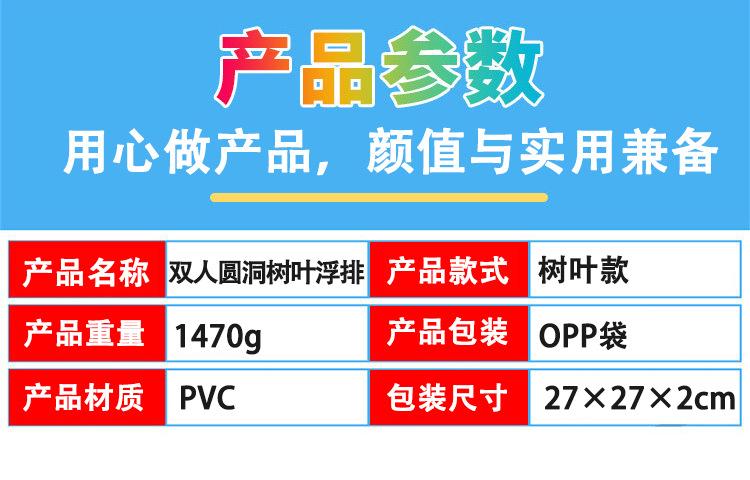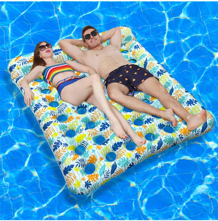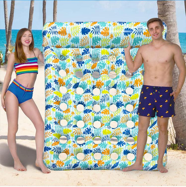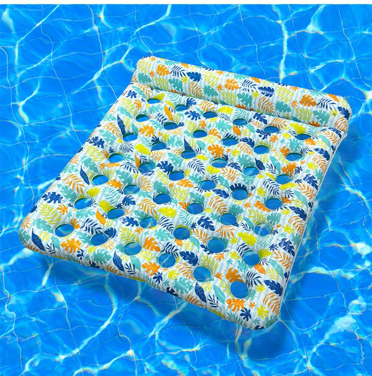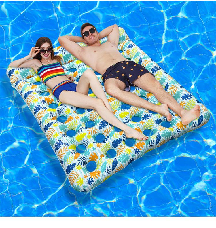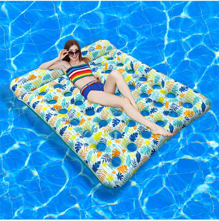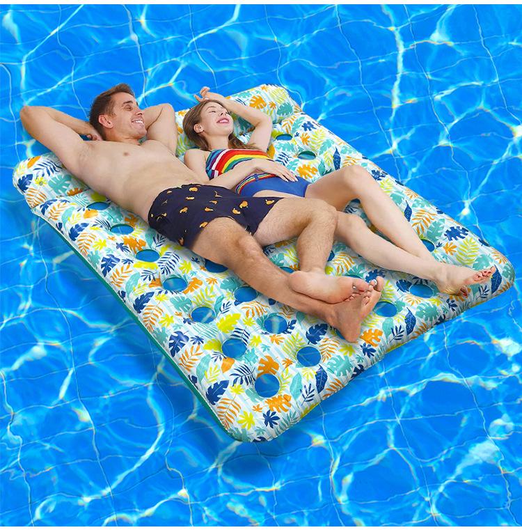 Colchón Flotante Inflable de Verano para Juegos Acuáticos Transfronterizo con Agujero Redondo y Forma de Hoja con Cojín, PVC Engrosado Ecológico Flotador Doble