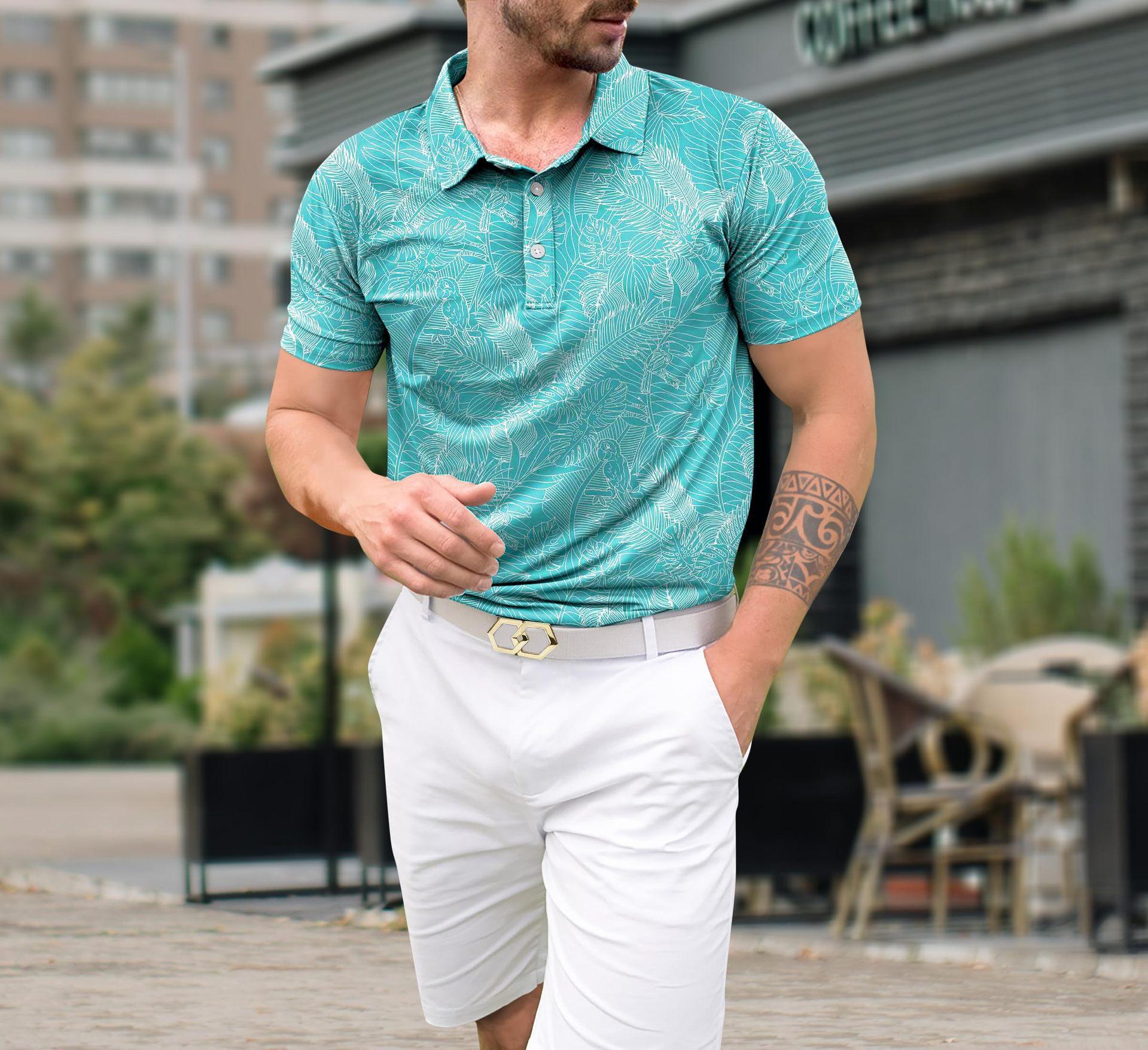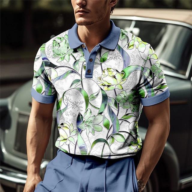 Polo de Manga Corta de Verano 2025 para Hombre, Camiseta Holgada Casual Versátil con Estampado 3D de Planta, Ropa de Negocios para Hombre