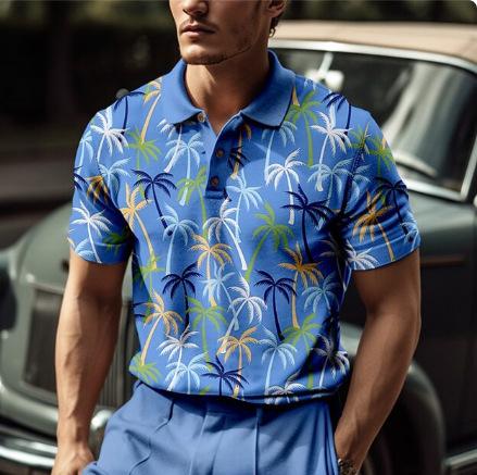 Compra Polo de Manga Corta de Verano 2025 para Hombre, Camiseta Holgada Casual Versátil con Estampado 3D de Planta, Ropa de Negocios para Hombre al por mayor en Joom.pro