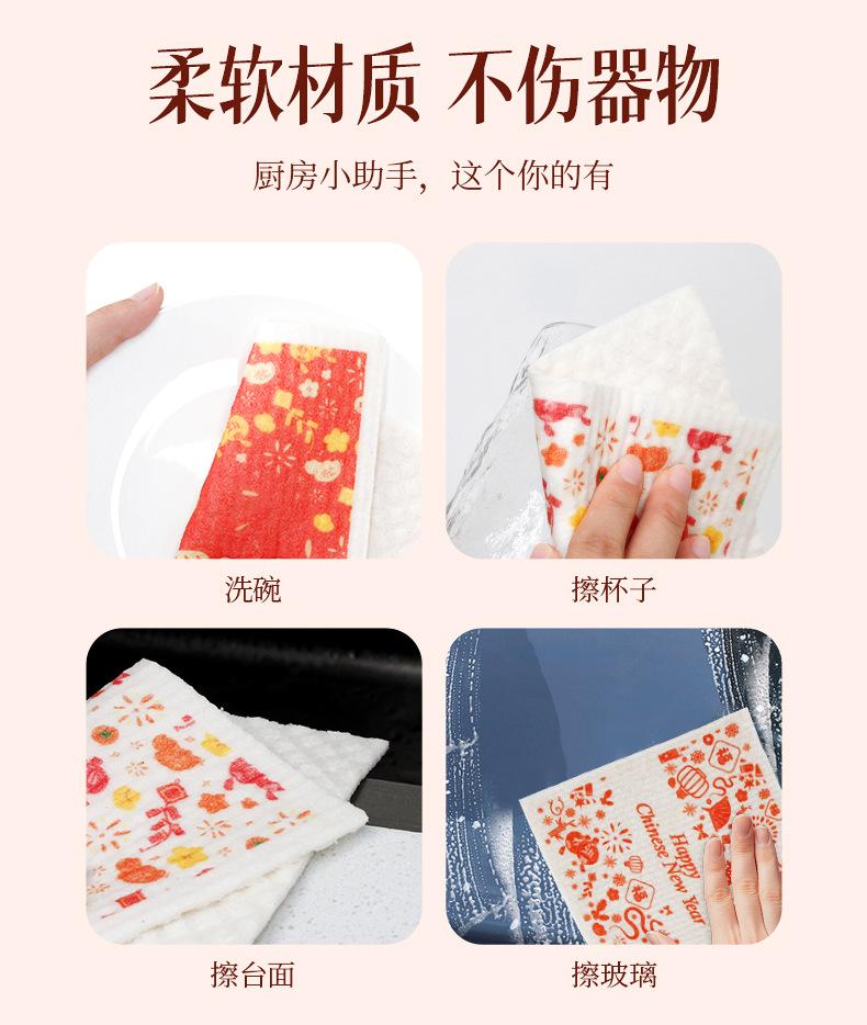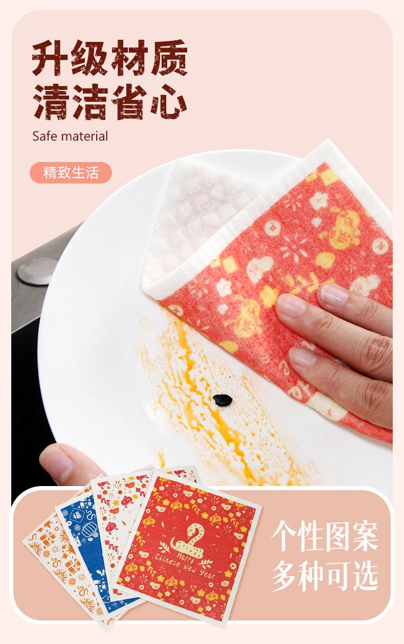 Paño de cocina de algodón de pulpa de madera de dibujos animados, cocina absorbente, a prueba de aceite, descontaminante, paño de estropajo, mantel, esponja de pulpa de madera comprimida, paño para lavar platos