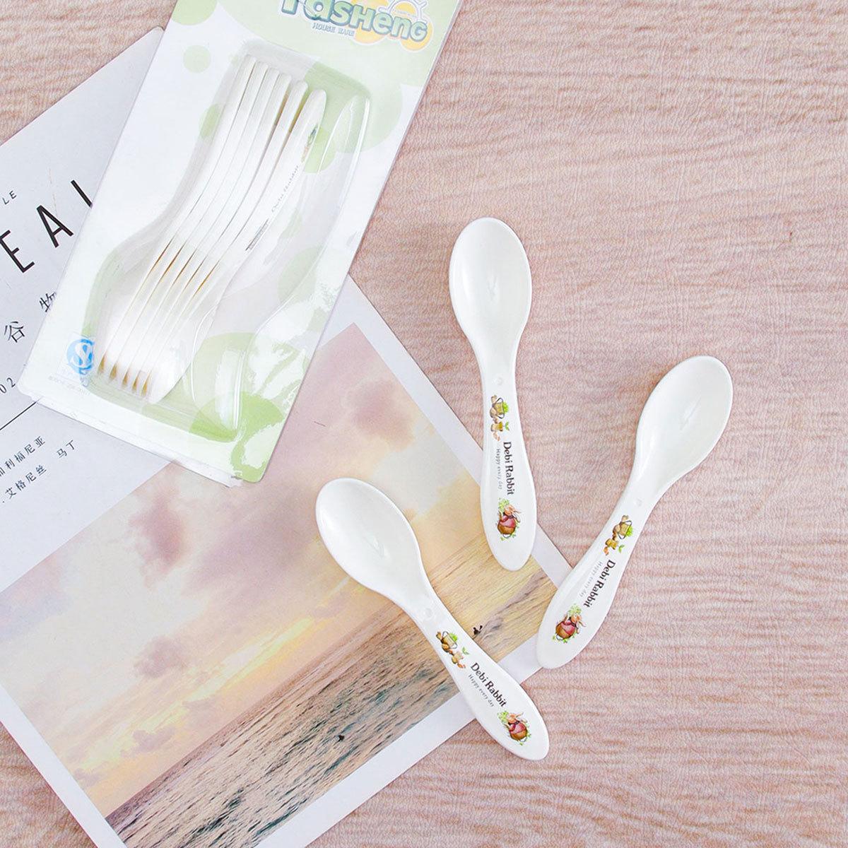 Cuchara de dibujos animados de grado alimenticio coreana cuchara para alimentar de plástico para niños cuchara sopera de mango largo gelatina pastel fruta tenedor cuchara