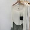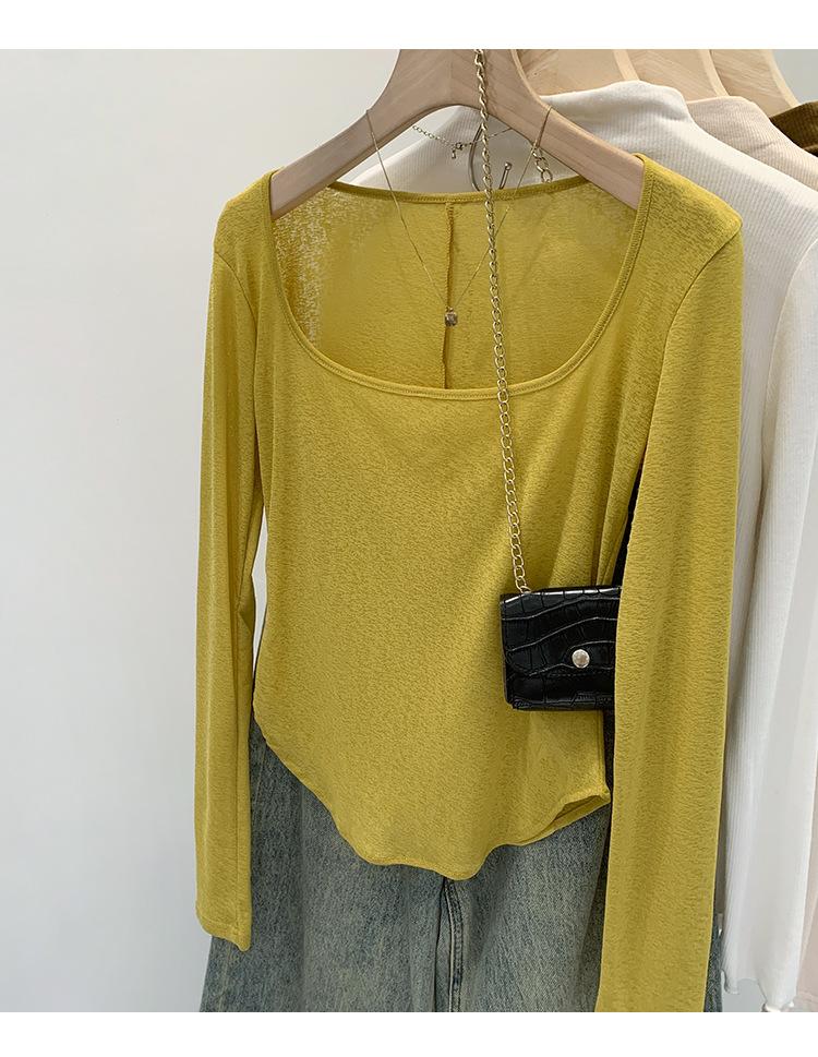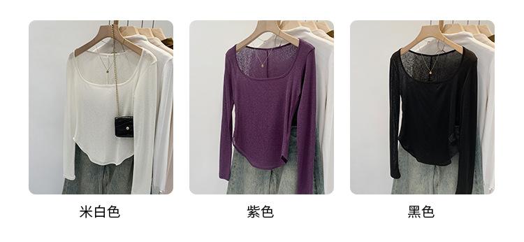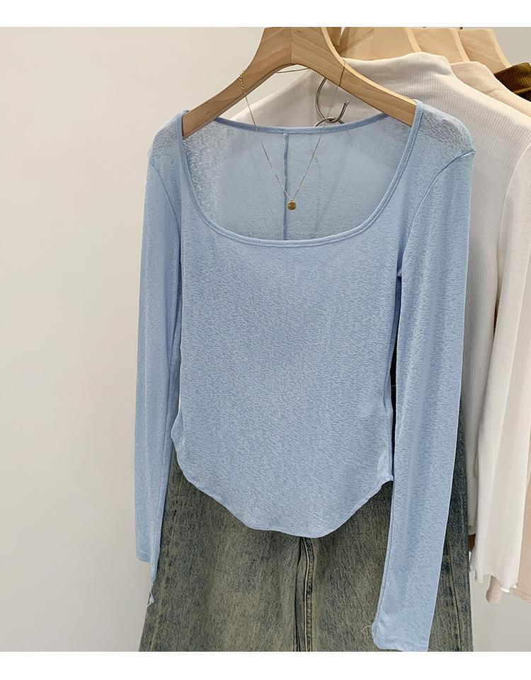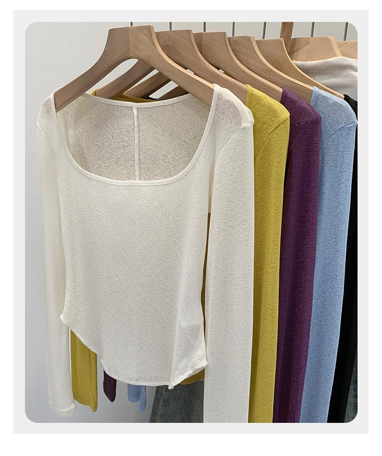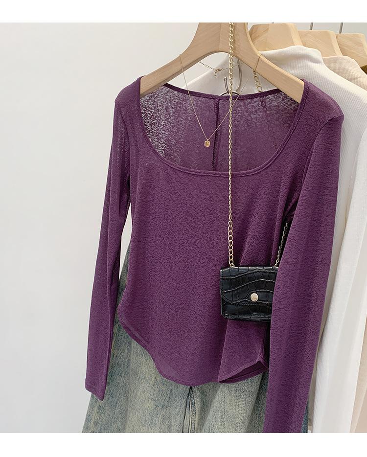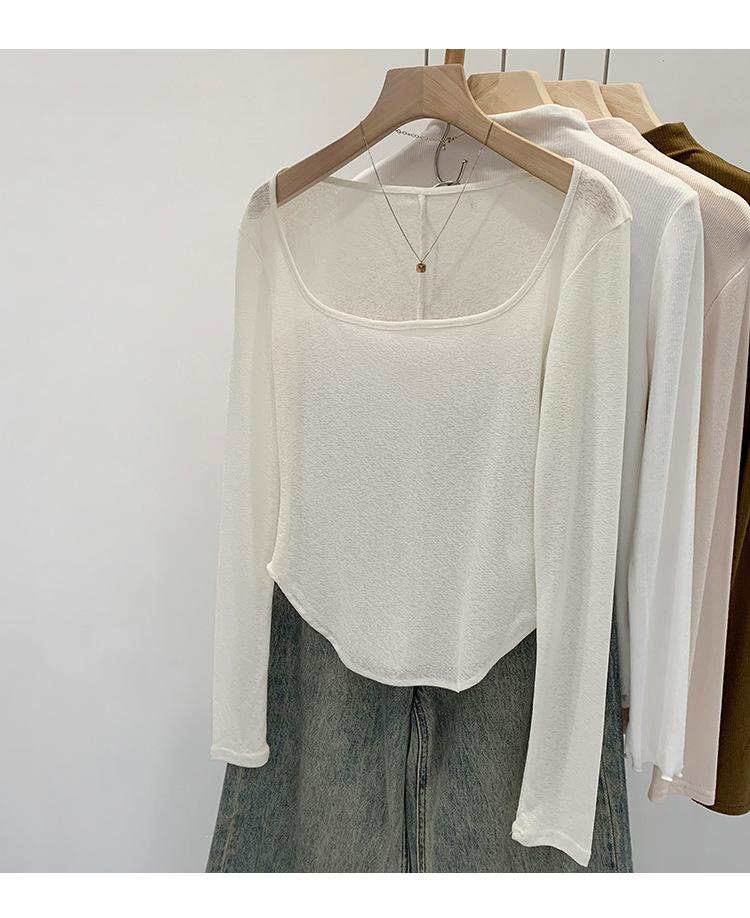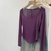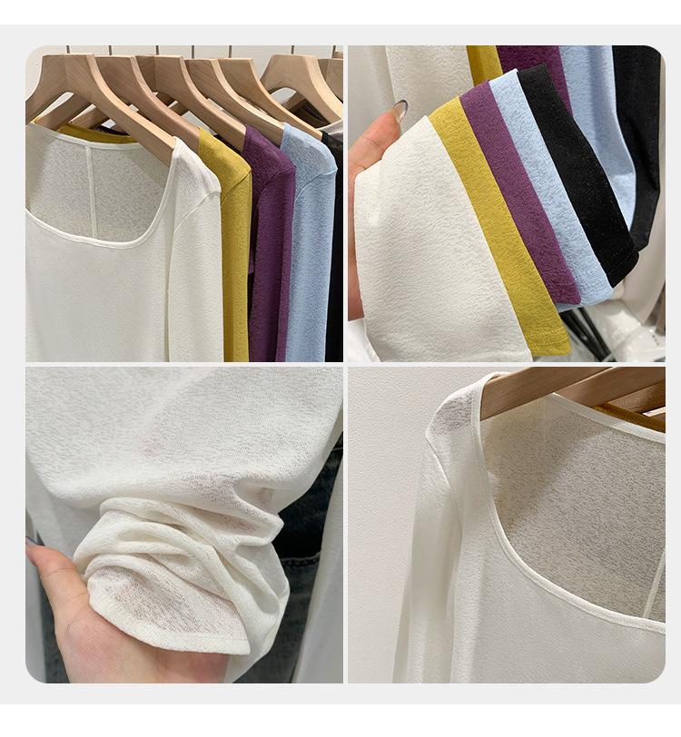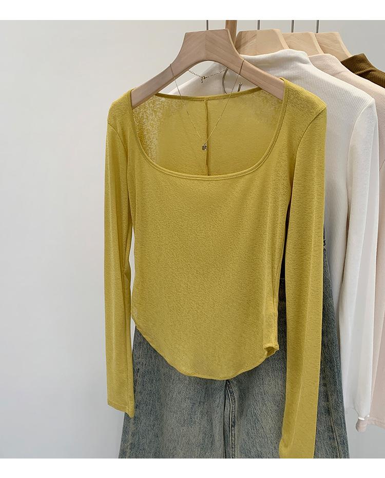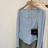 Playera Fina de Manga Larga con Cuello Cuadrado Estilo Coreano para Mujer Mercancía de Moda 2025 Verano Nueva Blusa Holgada Ajustada Top