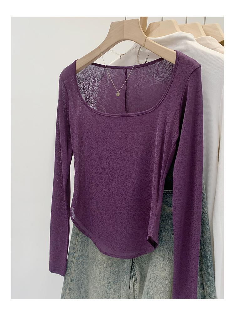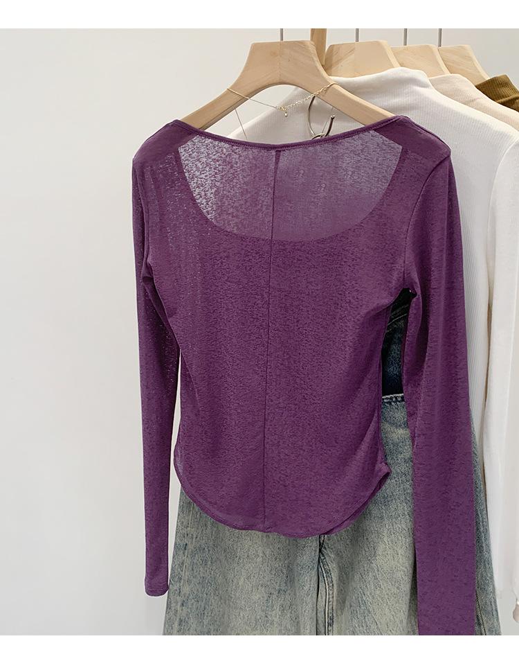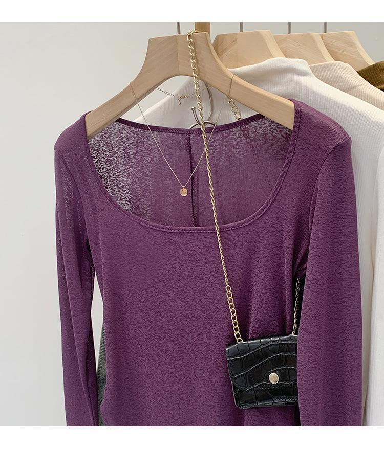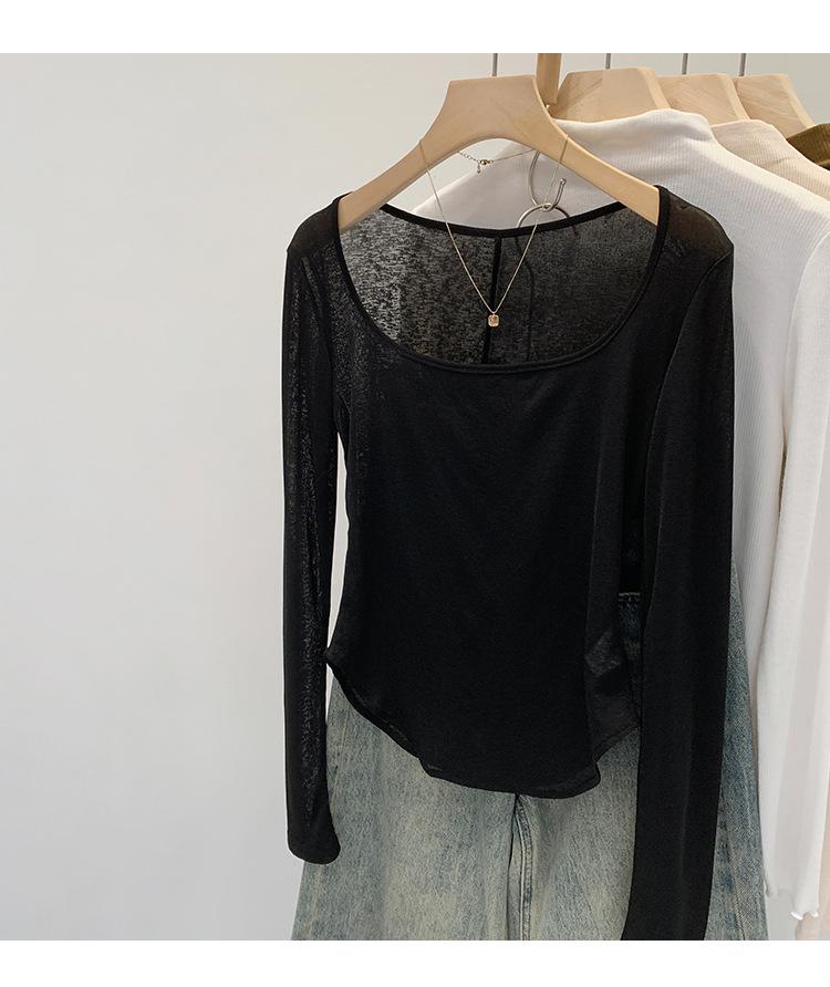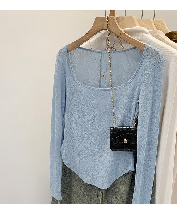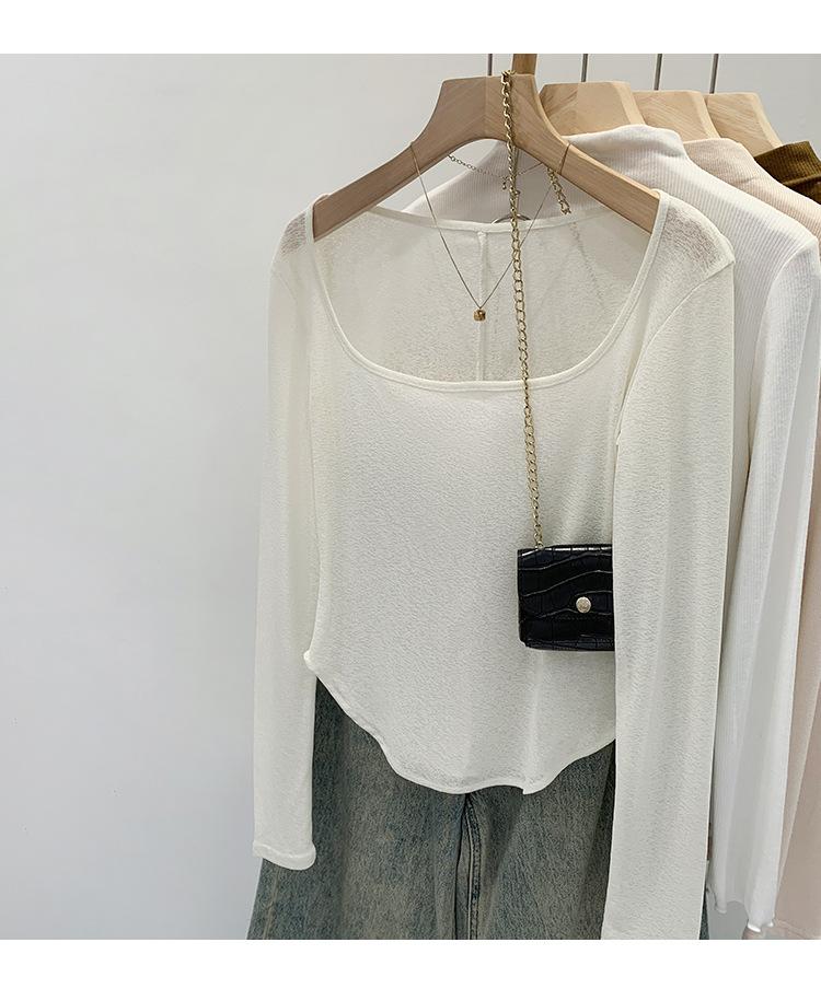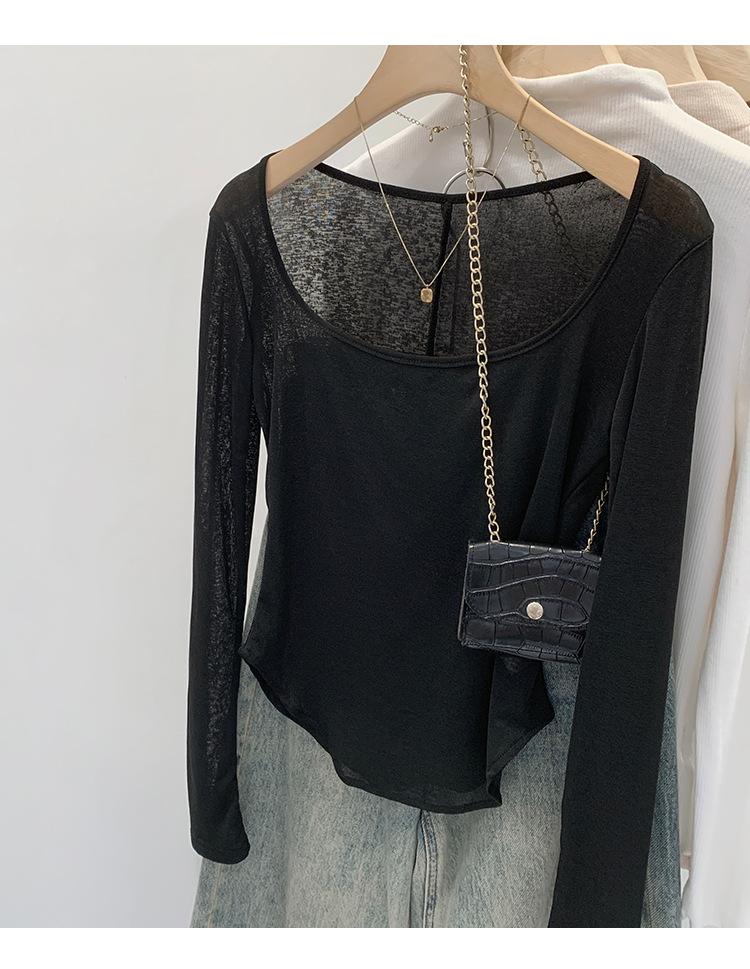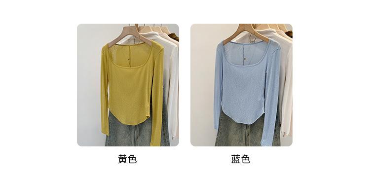 Playera Fina de Manga Larga con Cuello Cuadrado Estilo Coreano para Mujer Mercancía de Moda 2025 Verano Nueva Blusa Holgada Ajustada Top