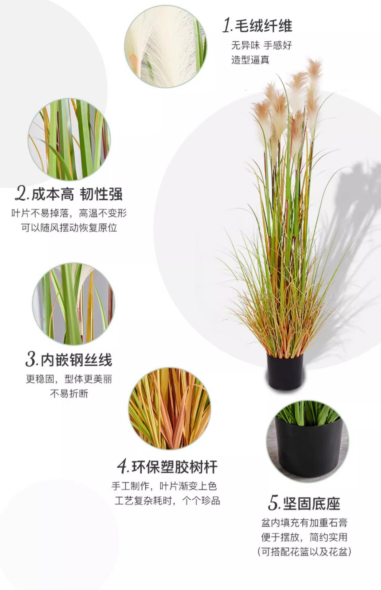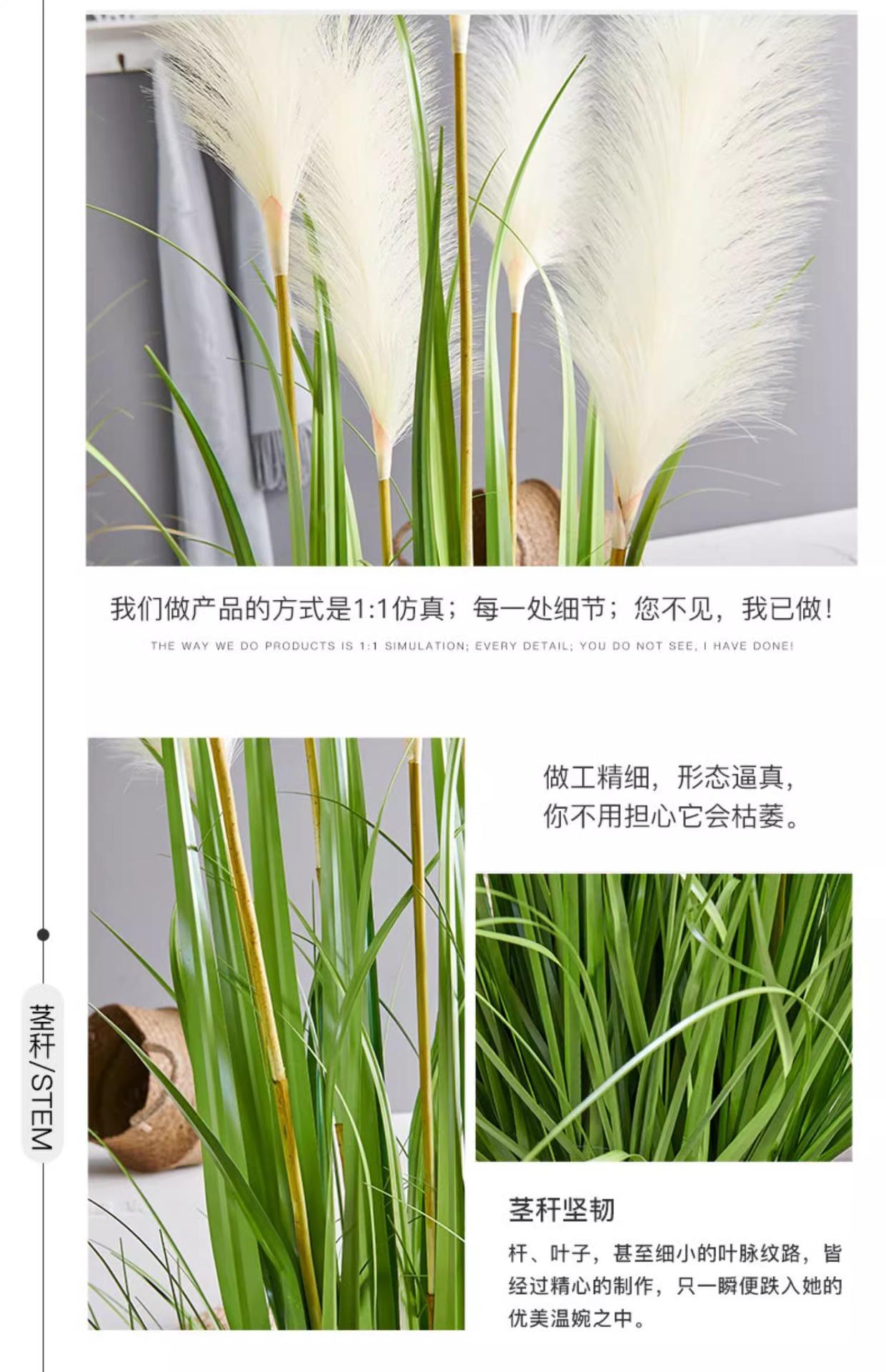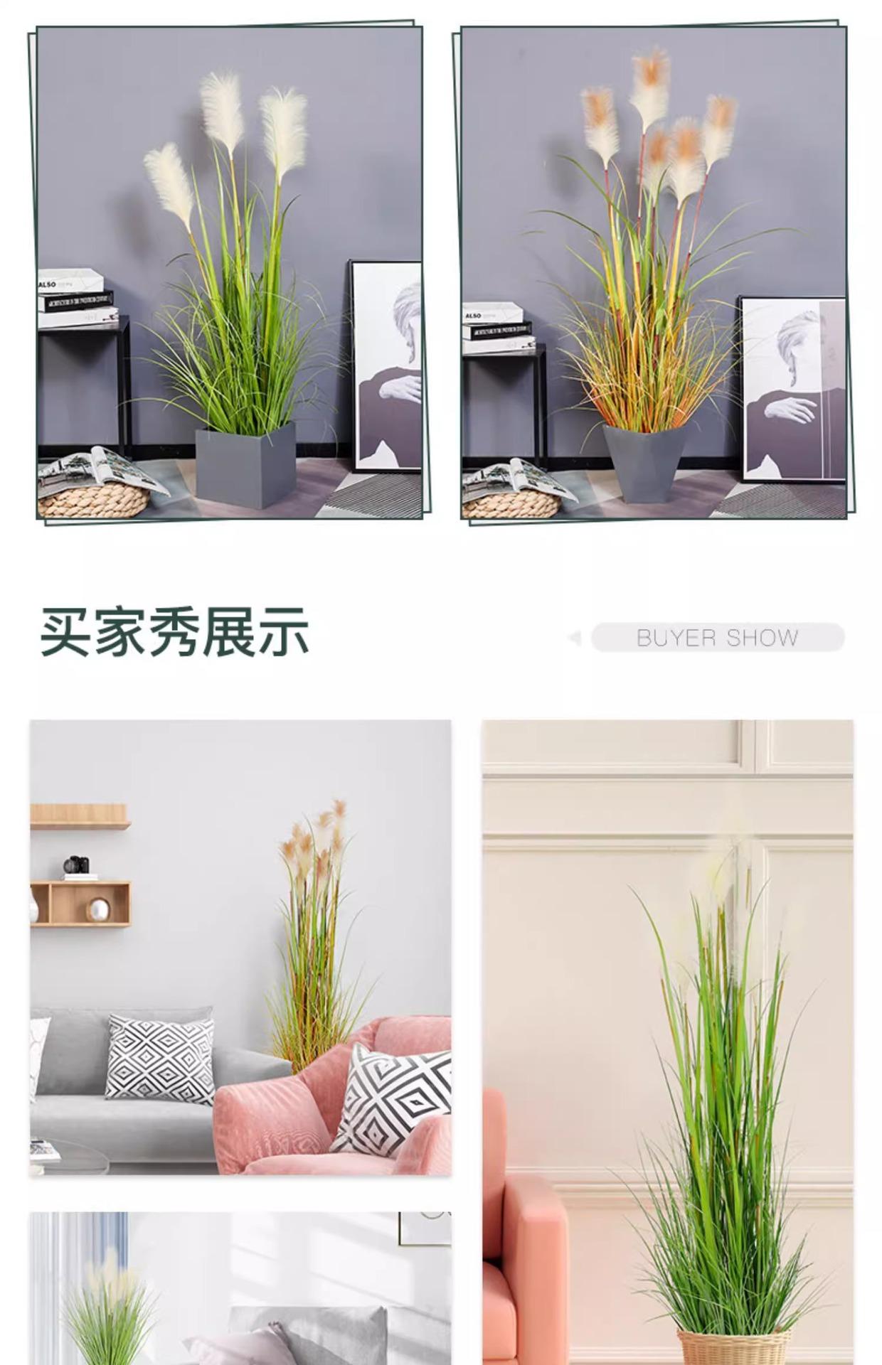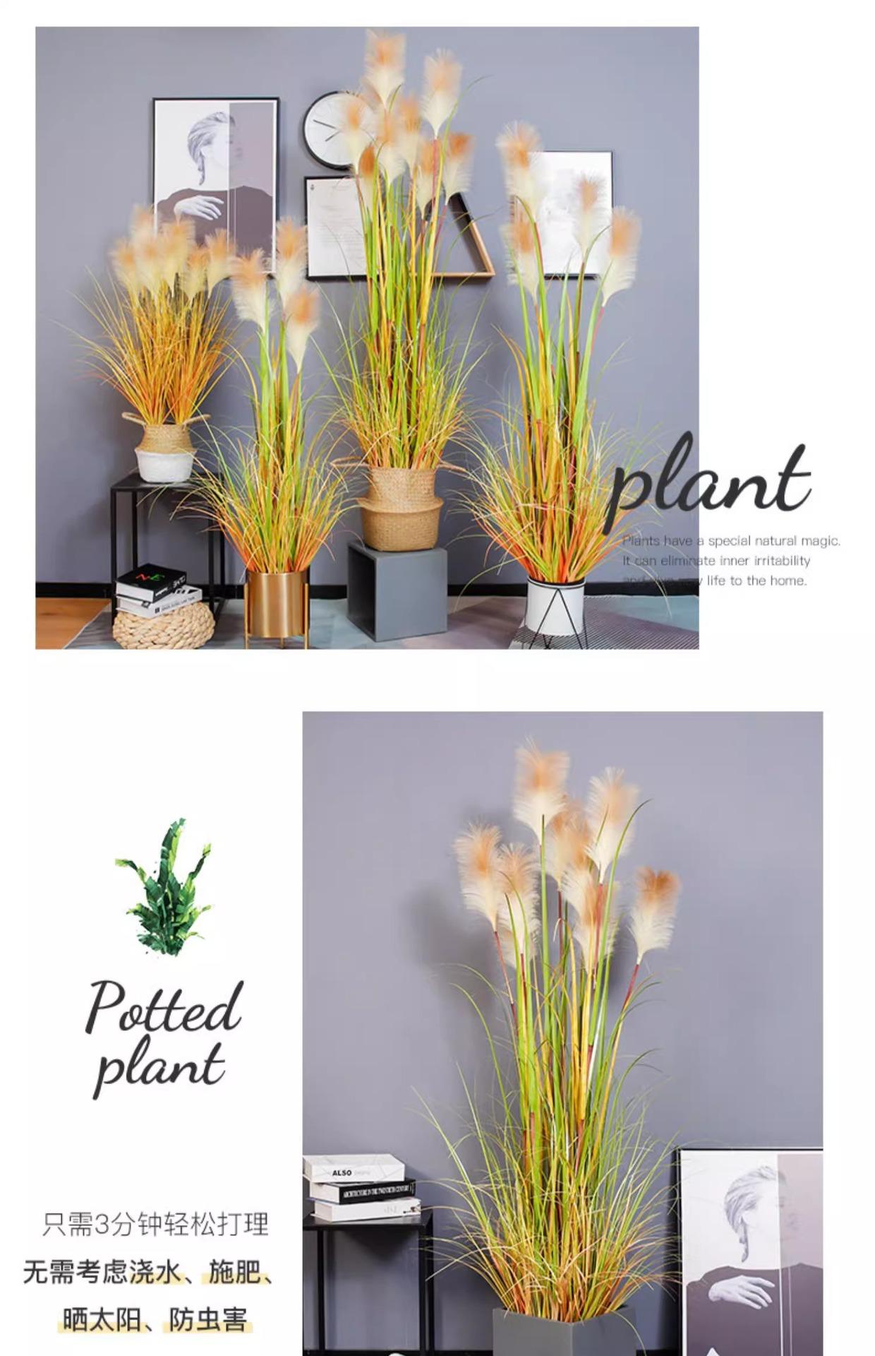 Planta artificial estilo nórdico ins pasto de caña decoración de maceta para sala de estar celebridad de internet planta verde falsa decoración de flores de piso paisaje