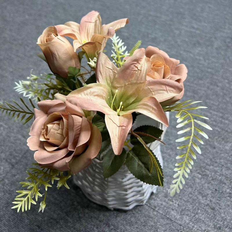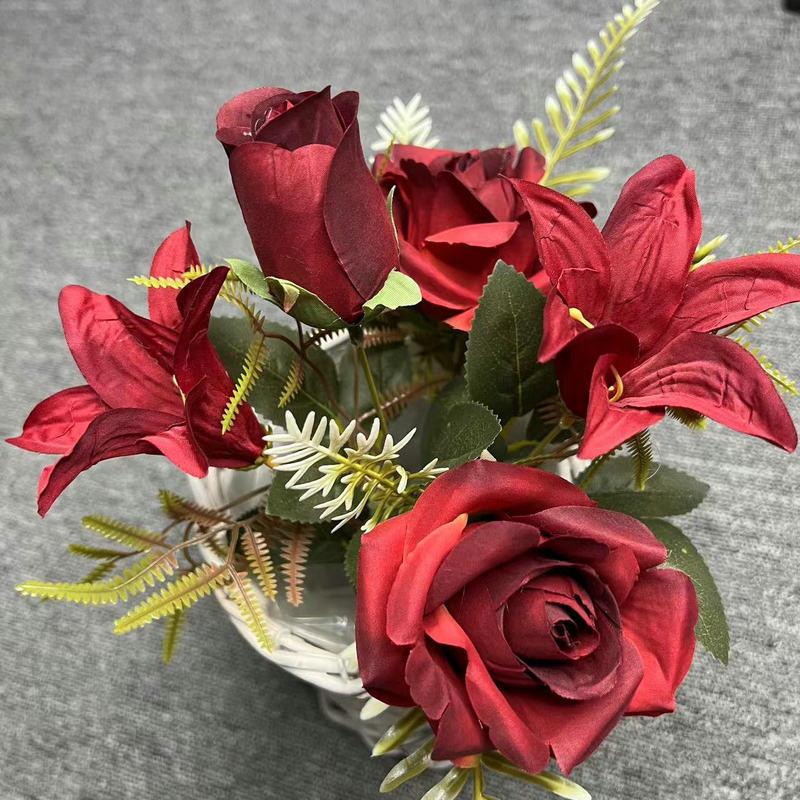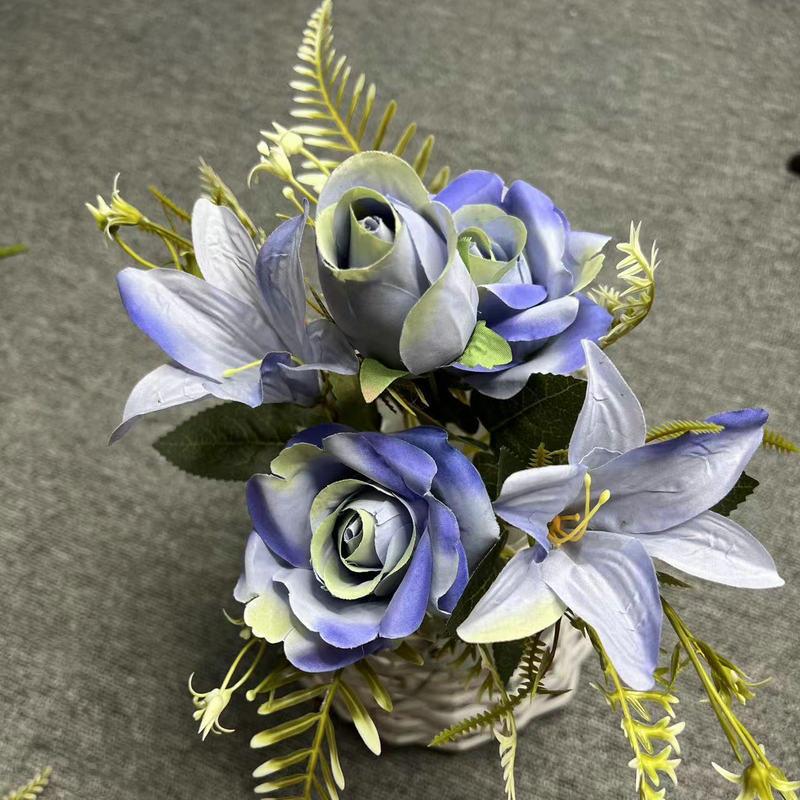 Rosa europea flor artificial hogar franela boda boda flor falsa accesorios de arreglo floral para sala venta al por mayor de fábrica