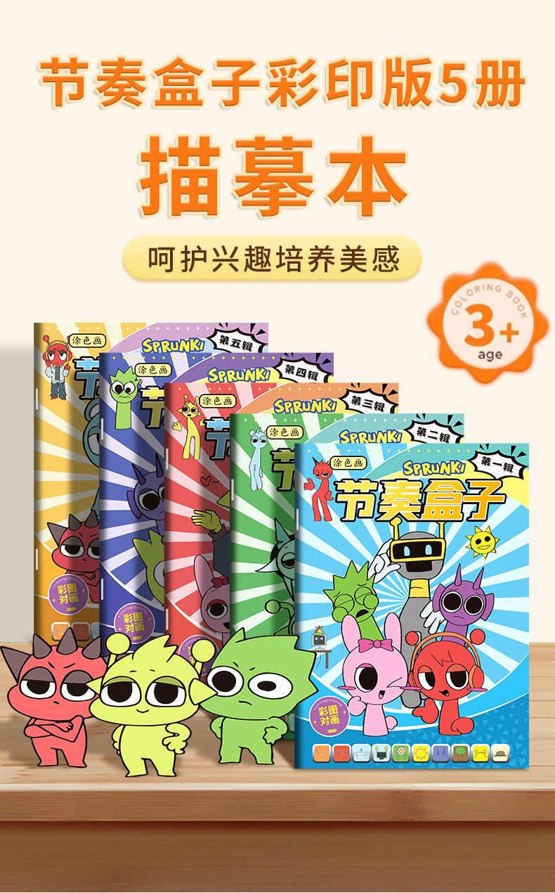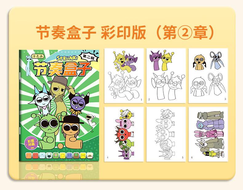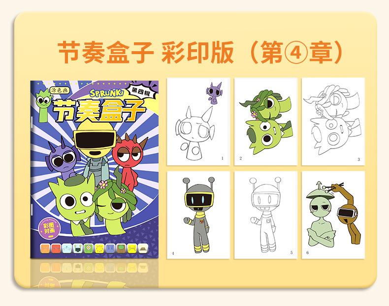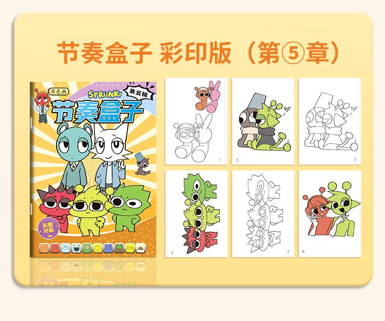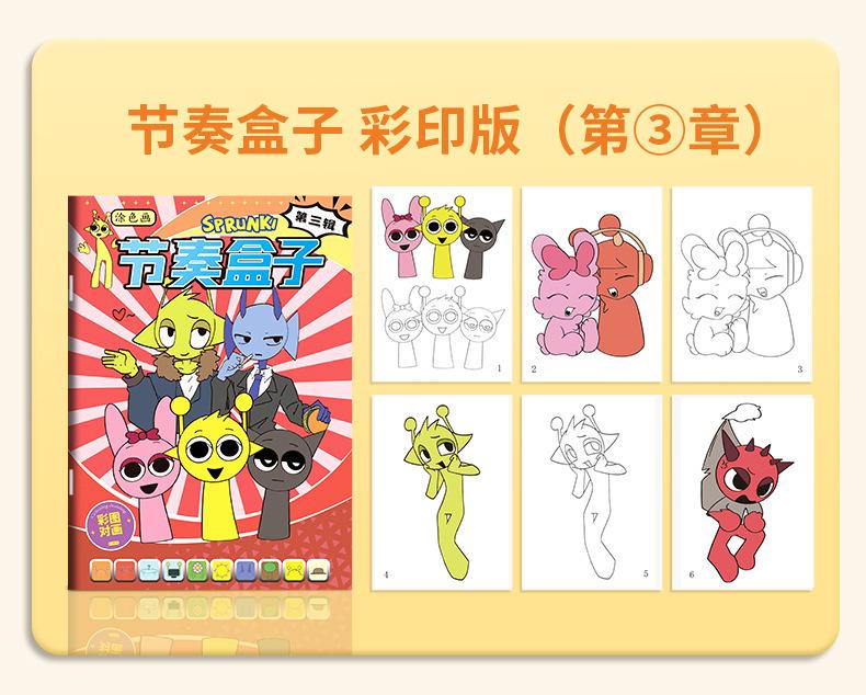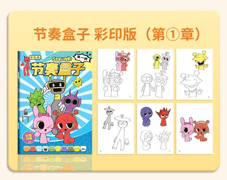 Libro de Calco Sprunki de Caja de Ritmo Libro de Dibujo Dibujo Lineal para Niños Libro de Práctica de Pintura con Lápices de Colores Pintados a Mano