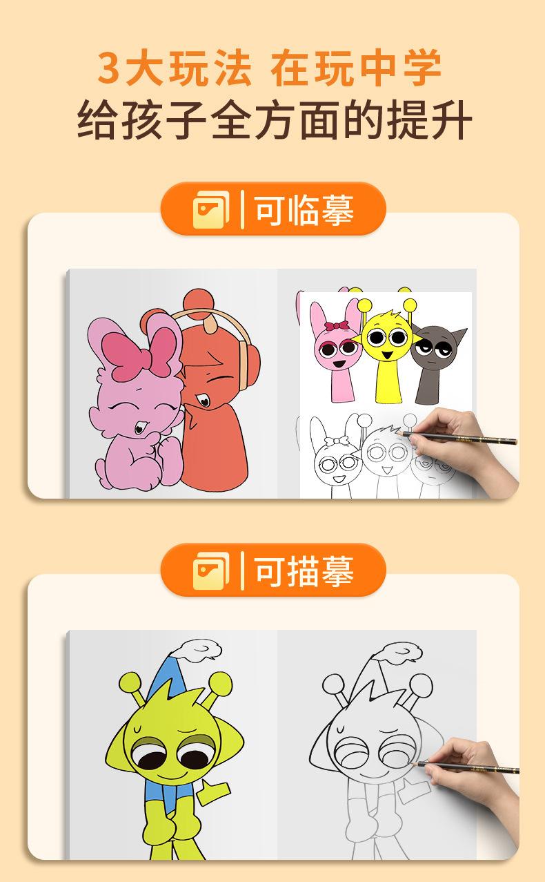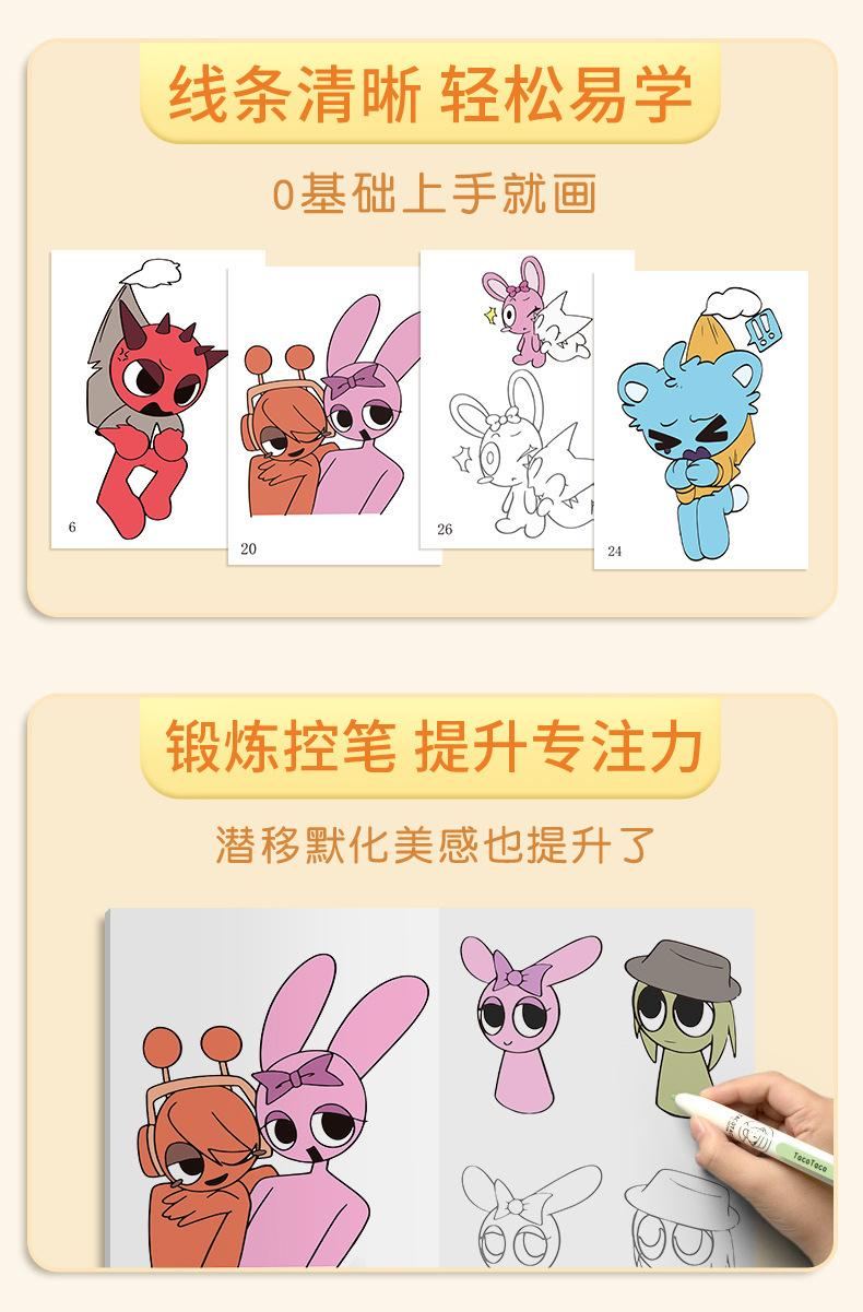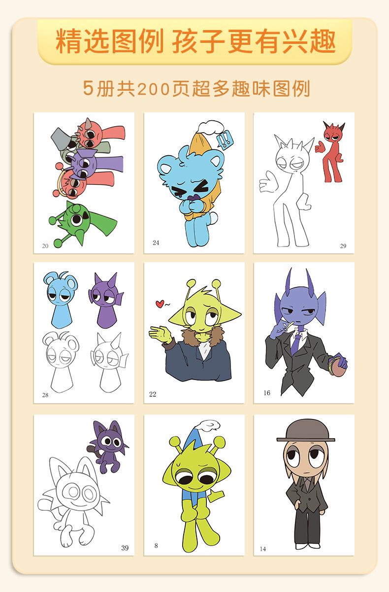 Libro de Calco Sprunki de Caja de Ritmo Libro de Dibujo Dibujo Lineal para Niños Libro de Práctica de Pintura con Lápices de Colores Pintados a Mano