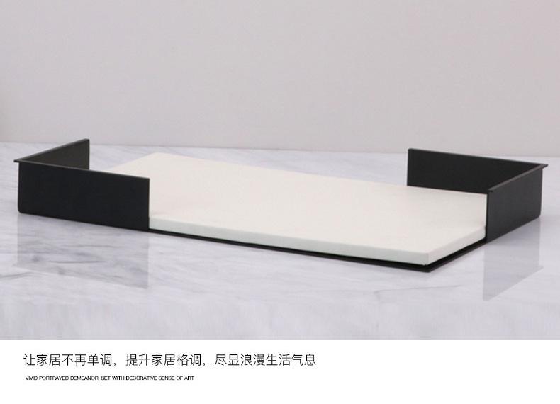 Bandeja Moderna Simple de Mármol Cuero PU Asa de Metal Adornos Creativos de Bola Estrella Decoraciones Suaves Sala de Estar