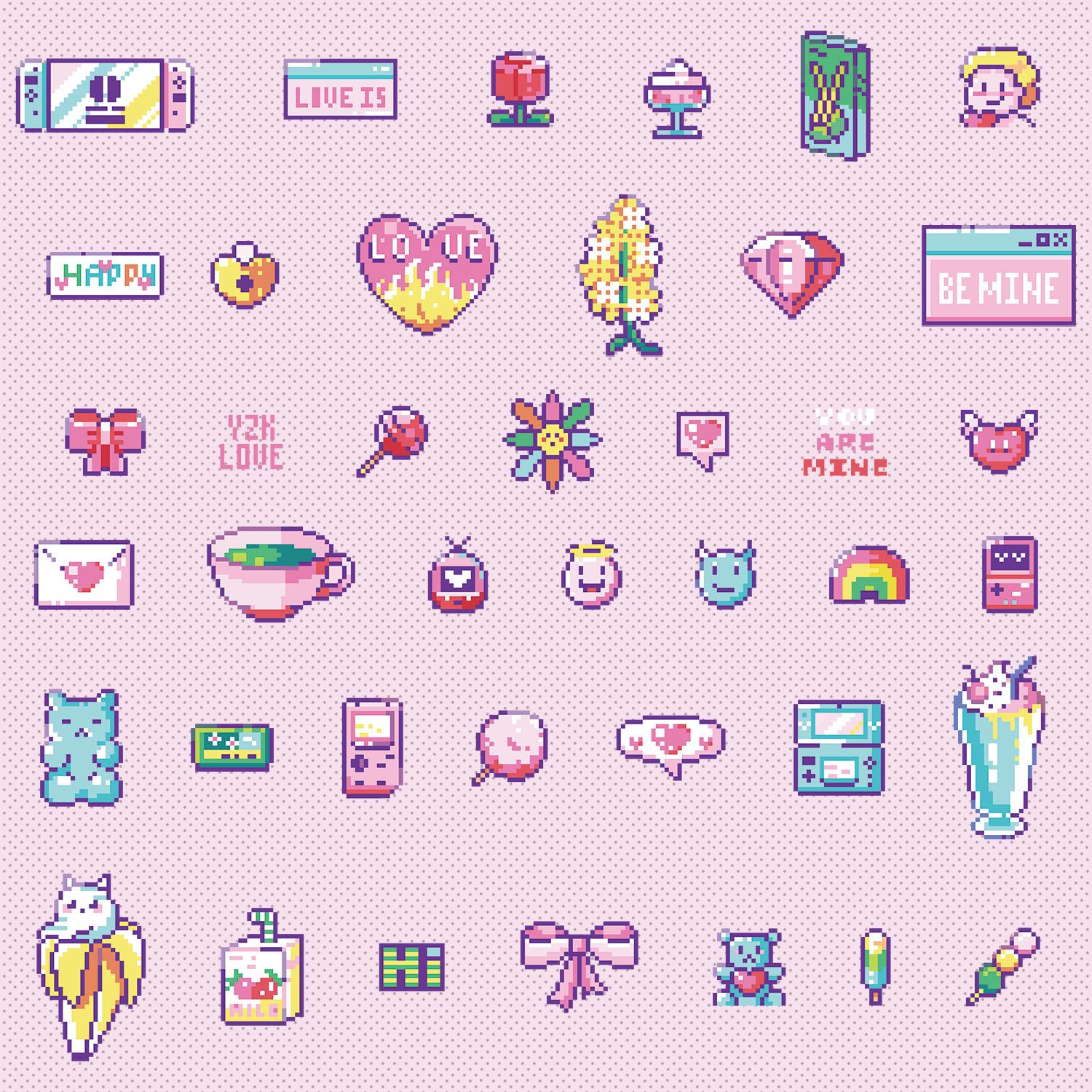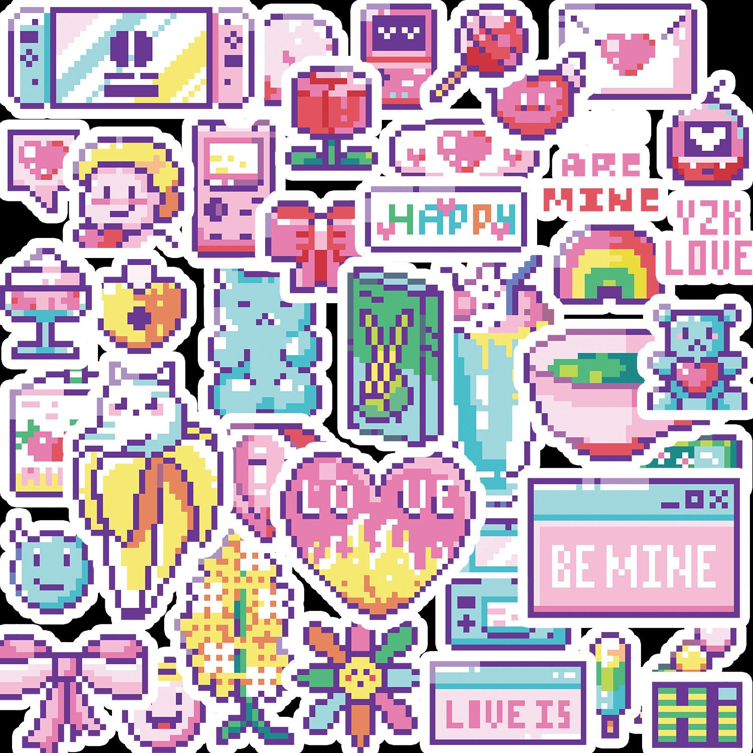 40 Pegatinas Graffiti Viento INS Pixel Rosa Púrpura Equipaje Guitarra Patineta Vaso de Agua Computadora DIY Pegatinas Impermeables
