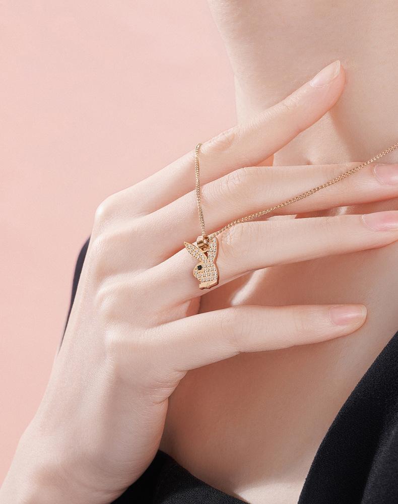 Collar con Colgante Playboy Dropshipping Lujo Ligero Dibujos Animados Cadena Clavícula para Mujer Oro