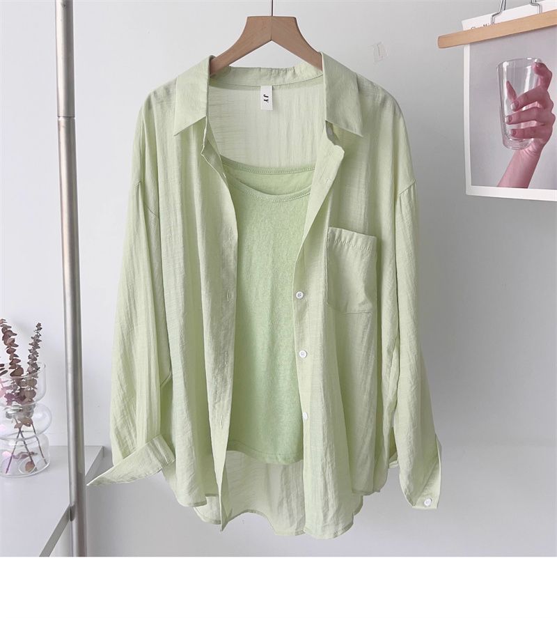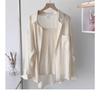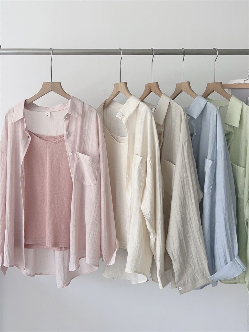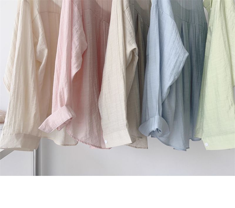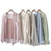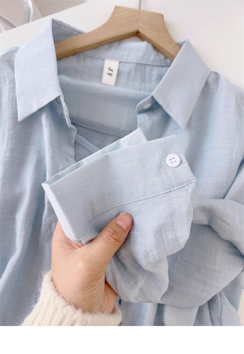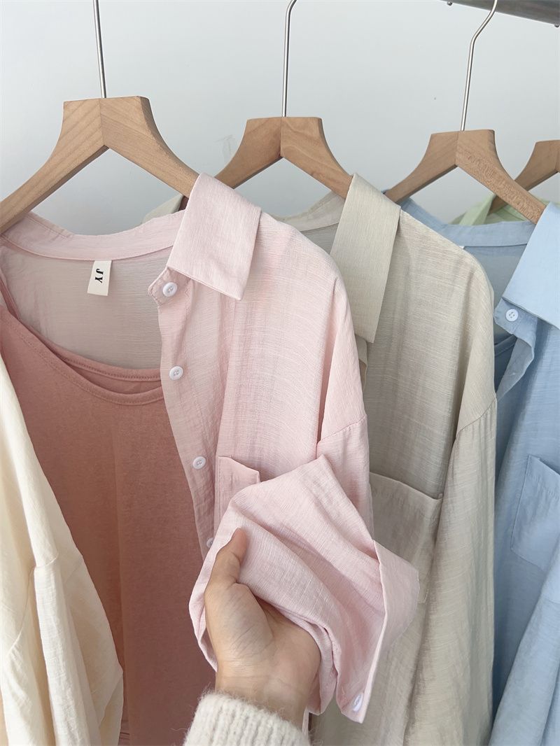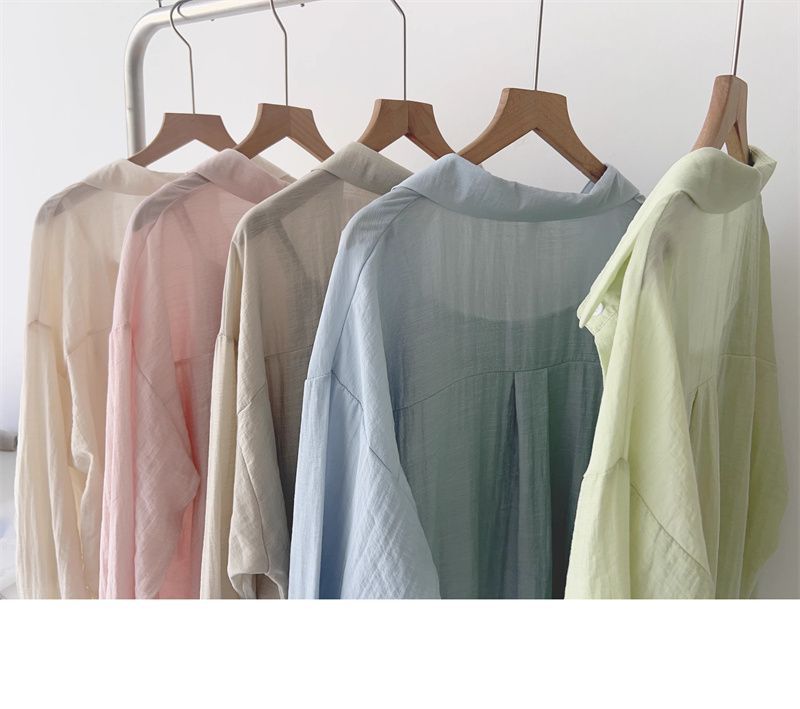 (Color hebilla color hilo) Verano nuevo coreano solapa color sólido camisa de mujer suelta transpirable bloqueador solar chaqueta camisa