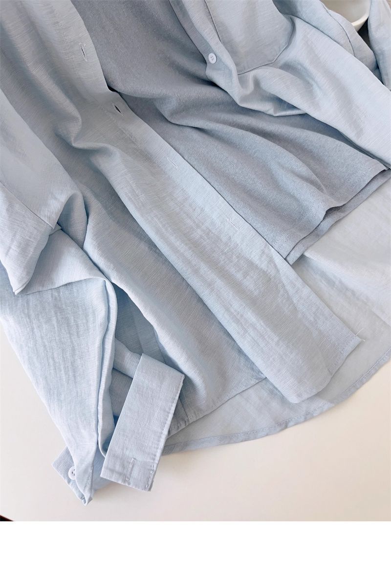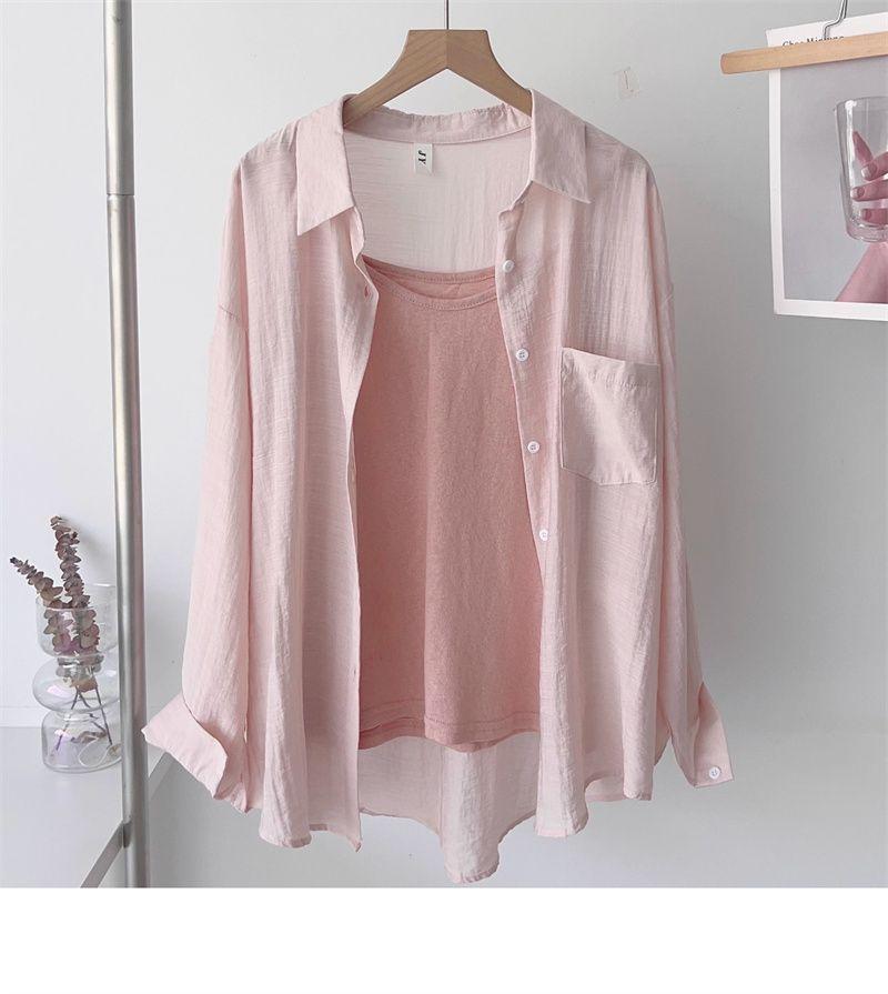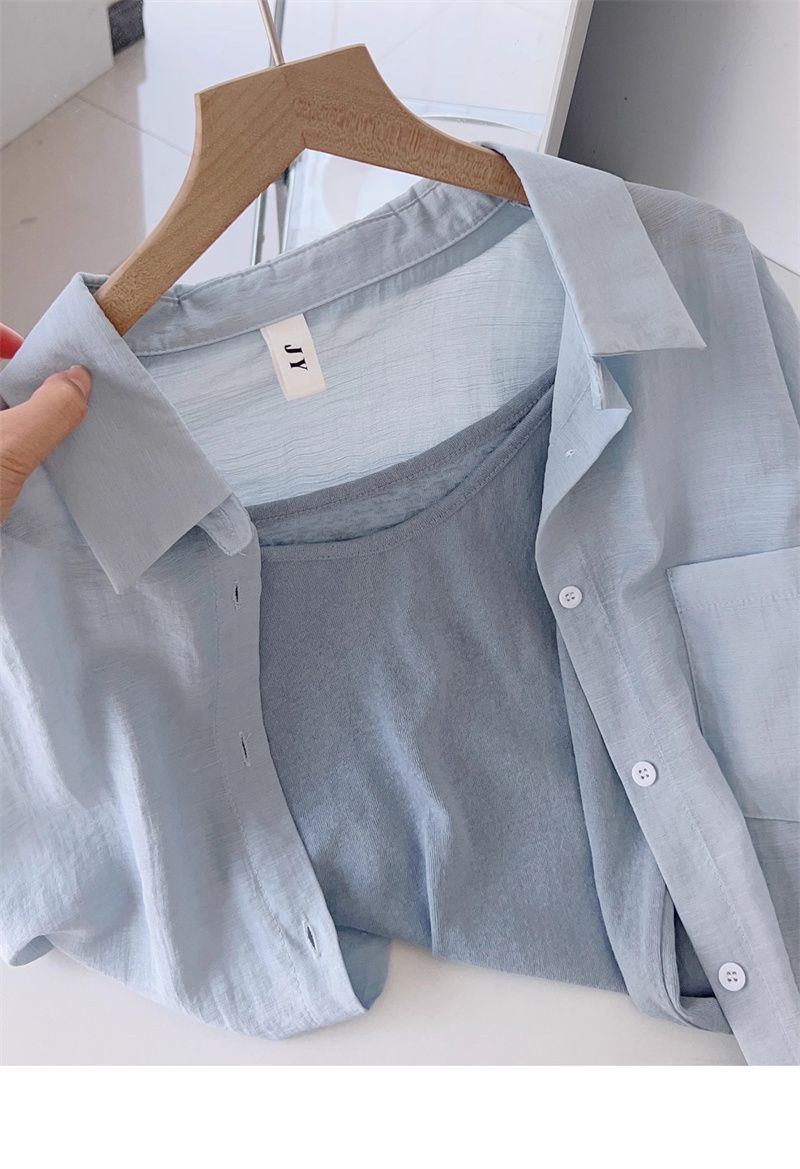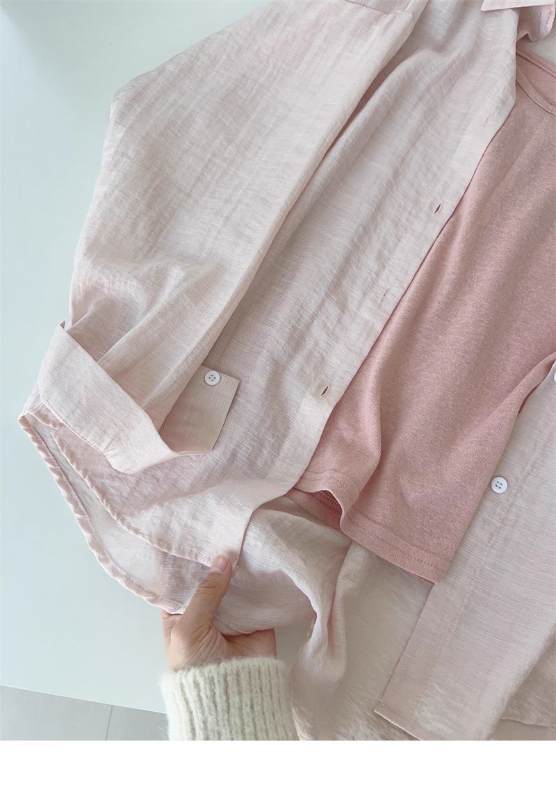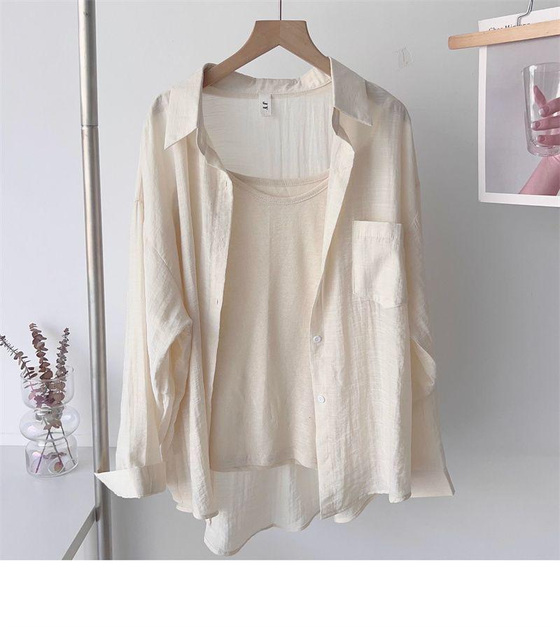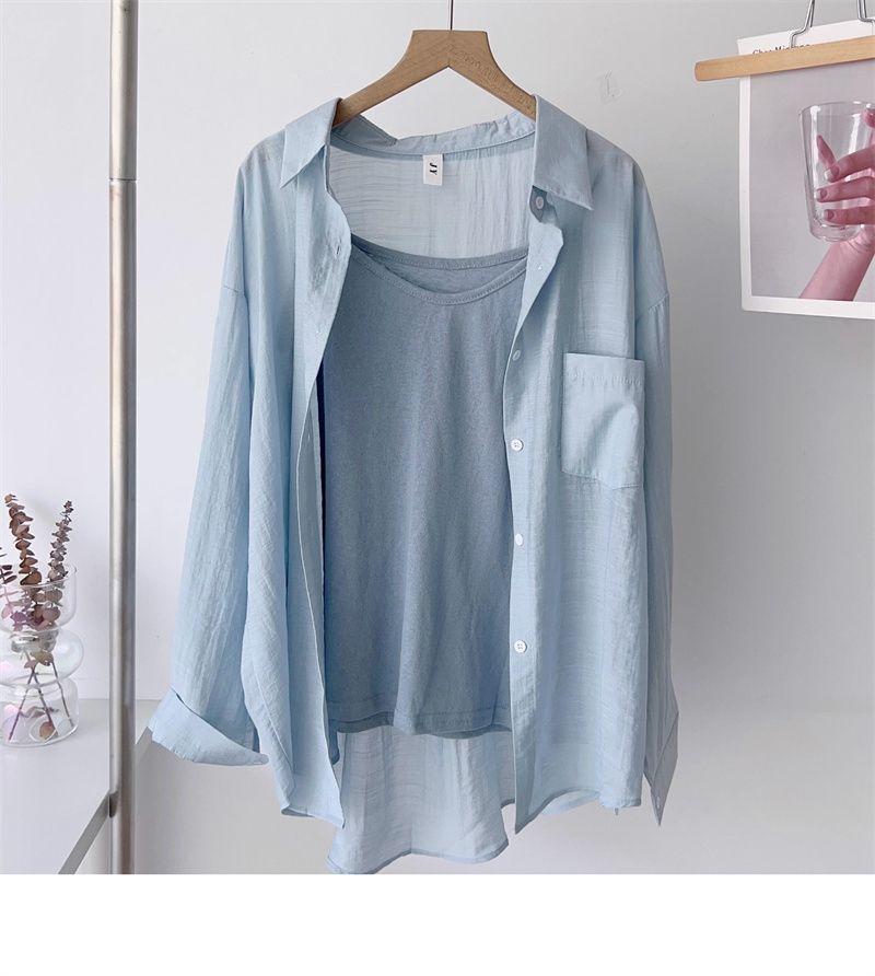 (Color hebilla color hilo) Verano nuevo coreano solapa color sólido camisa de mujer suelta transpirable bloqueador solar chaqueta camisa