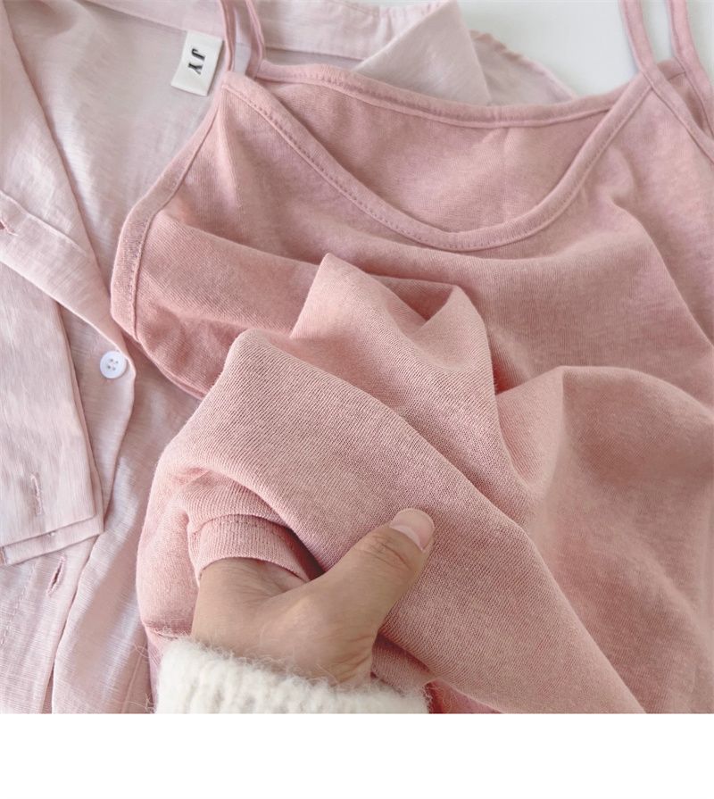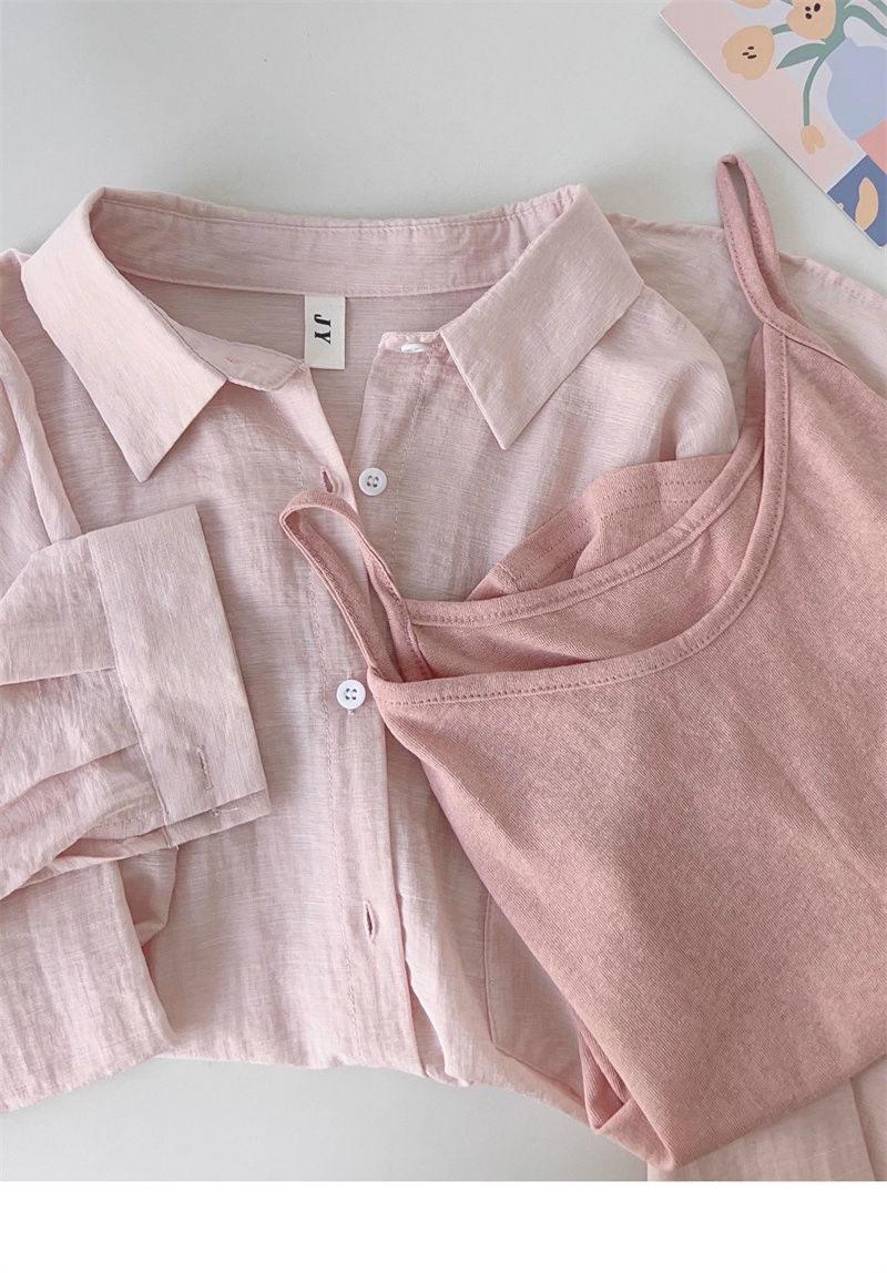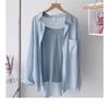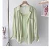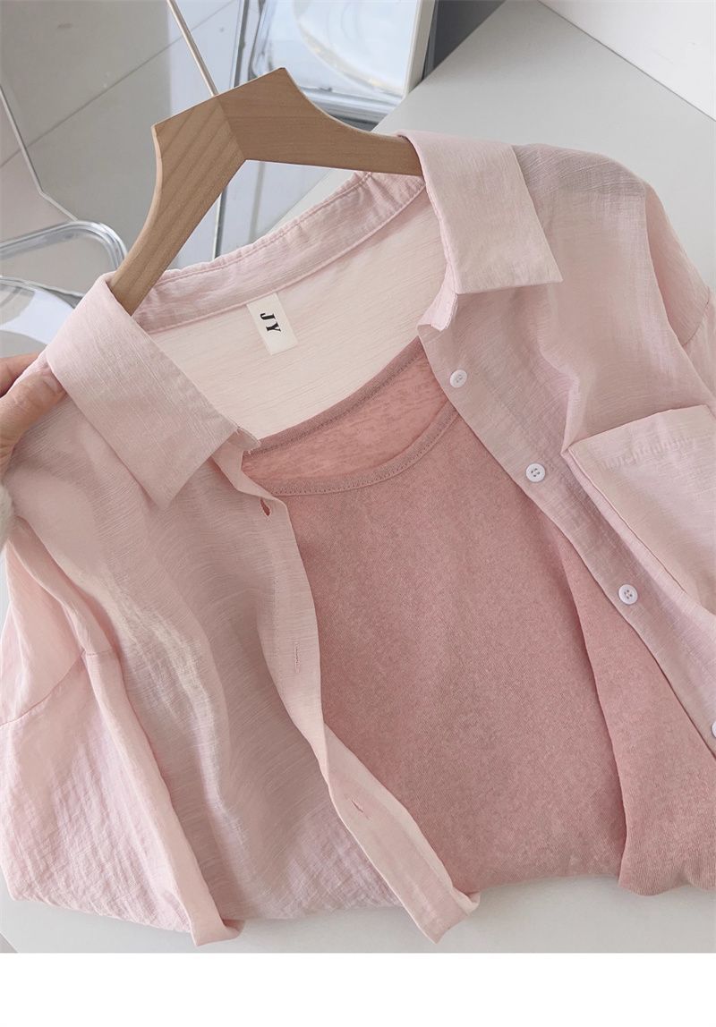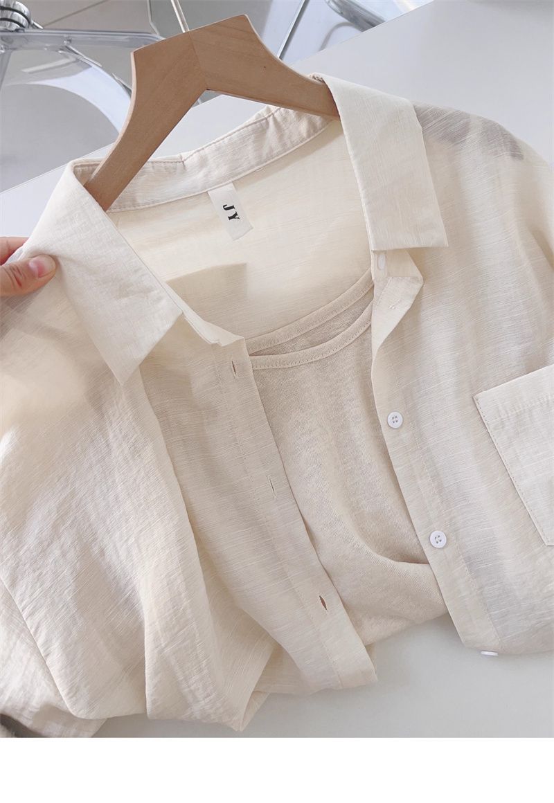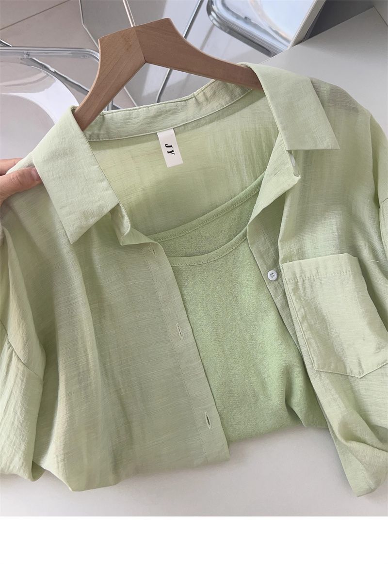 (Color hebilla color hilo) Verano nuevo coreano solapa color sólido camisa de mujer suelta transpirable bloqueador solar chaqueta camisa