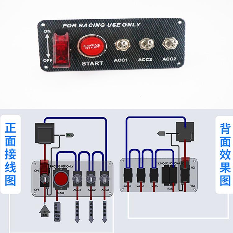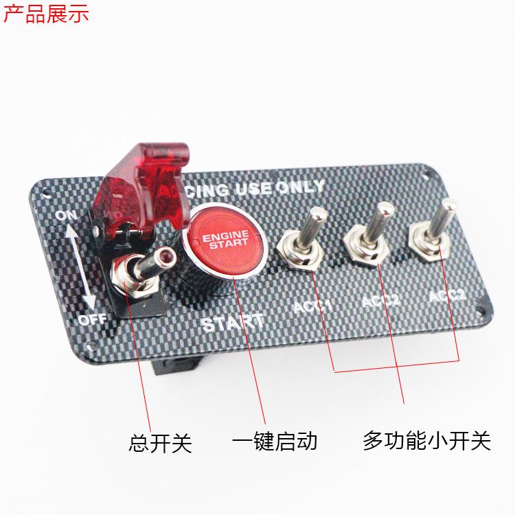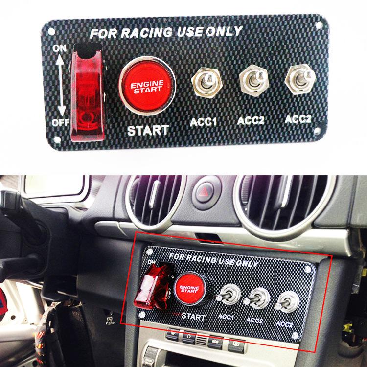 Interruptor Combinado de Modificación de Coche/ Interruptor de Panel de Fibra de Carbono/ Tipo Balancín Multifuncional Encendido Arranque con Una Tecla