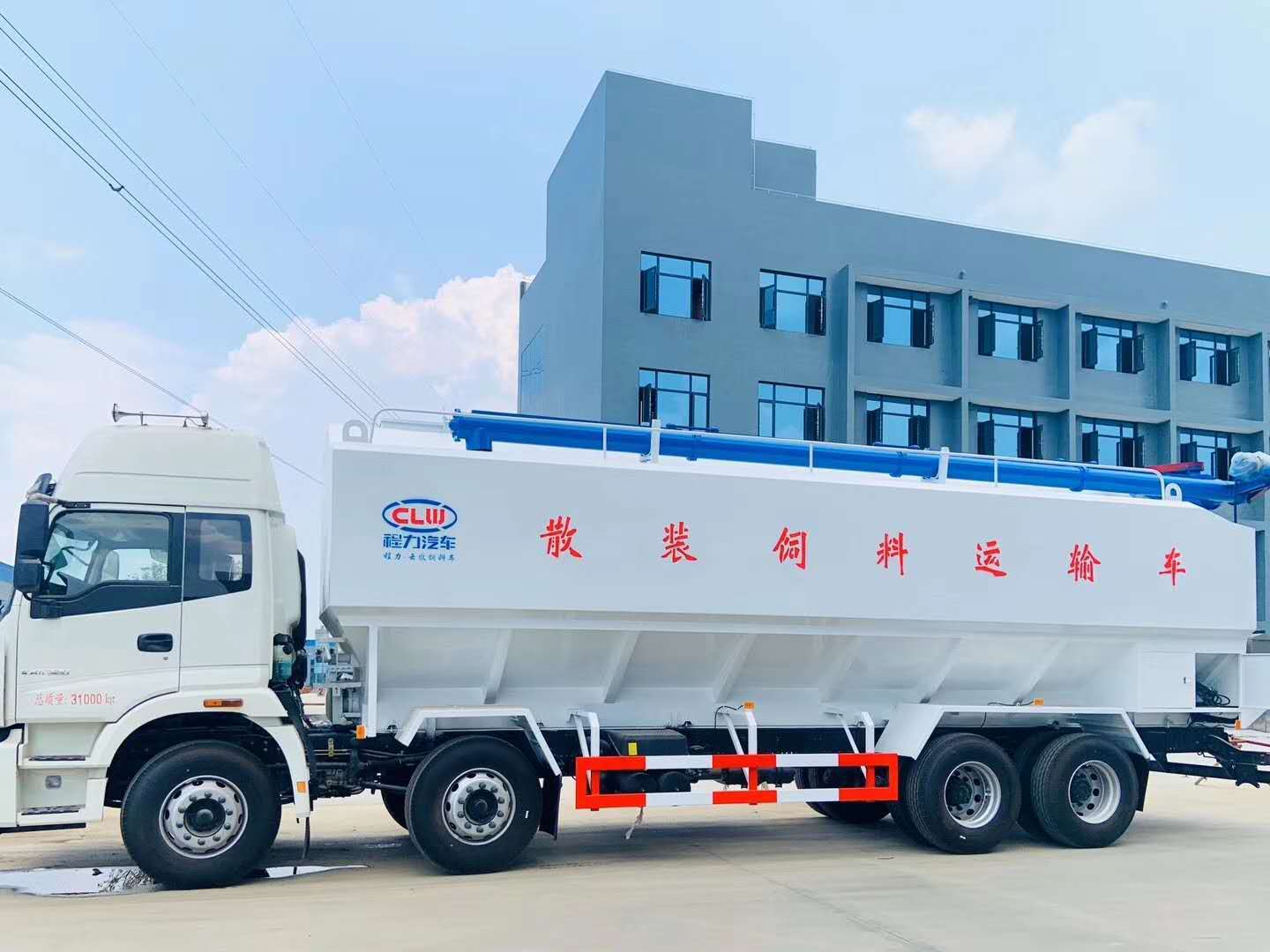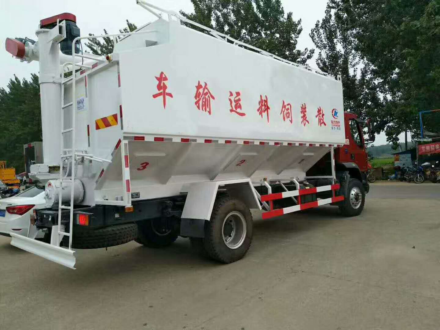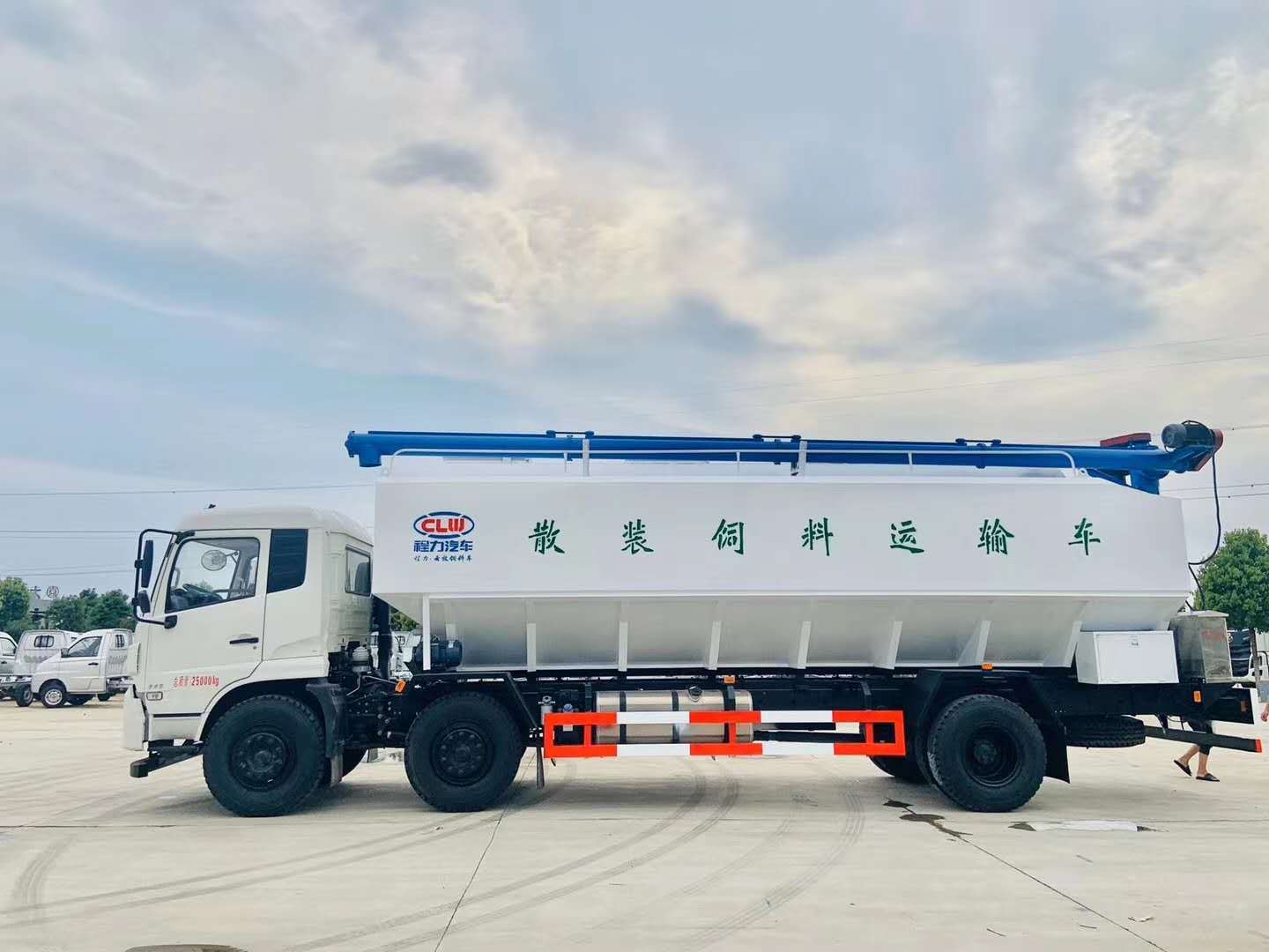 Camión de alimentación a granel, también conocido como vehículo de transporte de alimento a granel, vehículo de transporte de alimento. Tiene las características de estructura simple, rendimiento confiable, gran capacidad de transporte, operación conveniente, fuerte movilidad y no contaminación de los materiales, y es ampliamente utilizado en el transporte de alimento para empresas de cría grandes, medianas y pequeñas.