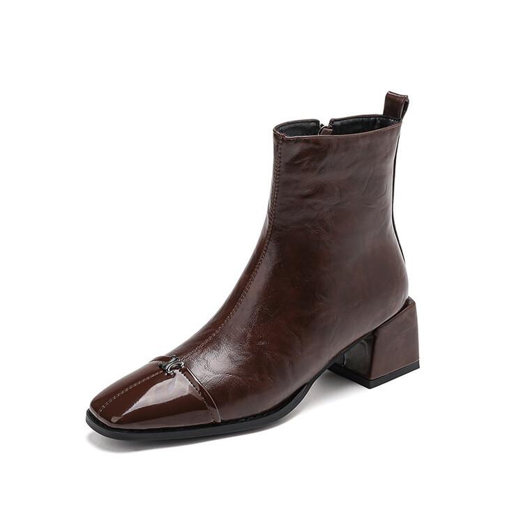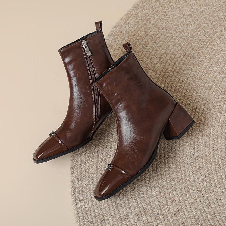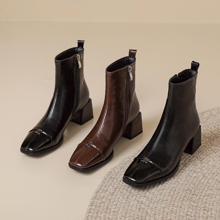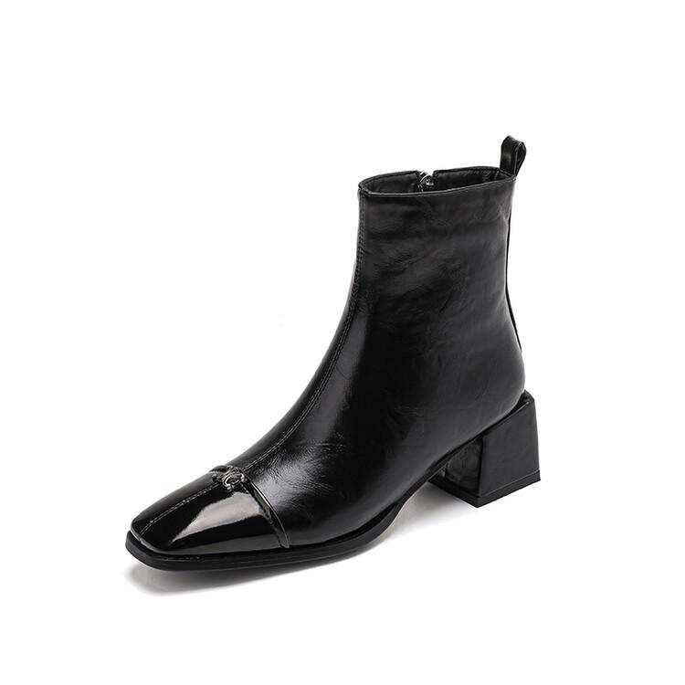 Compra Otoño e invierno botas Martin de tacón bajo para mujer cremallera lateral talla grande botas de cuero tacón cuadrado cómodas punta cuadrada botas de mujer estilo coreano botas de media caña para mujer al por mayor en Joom.pro