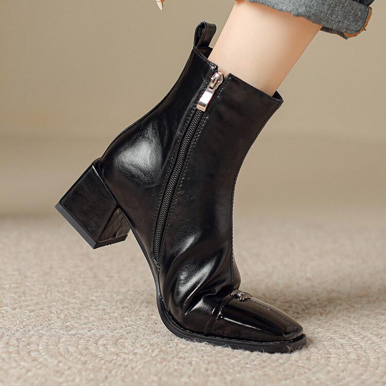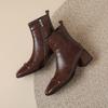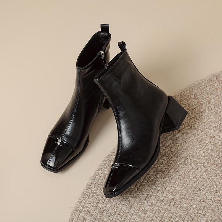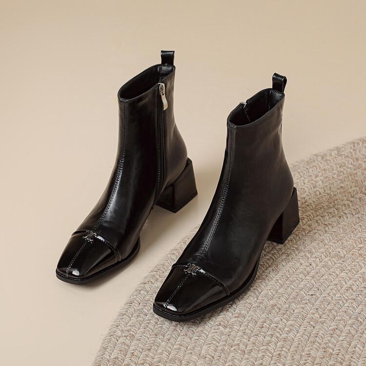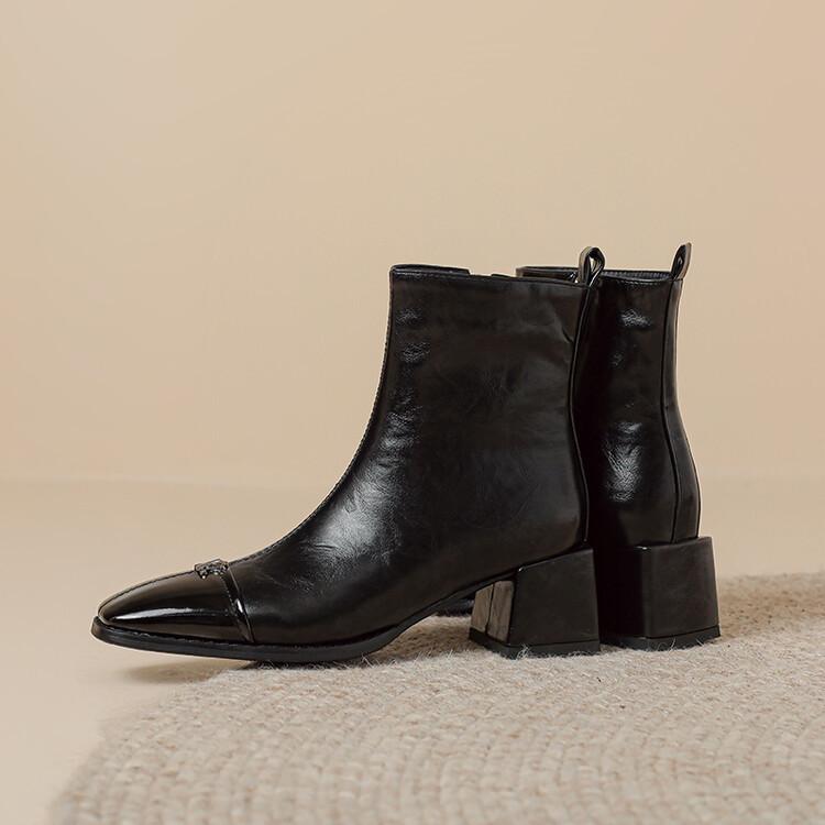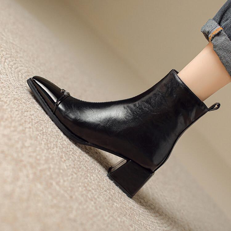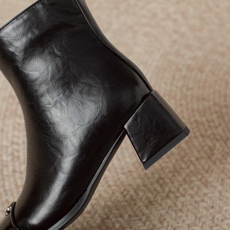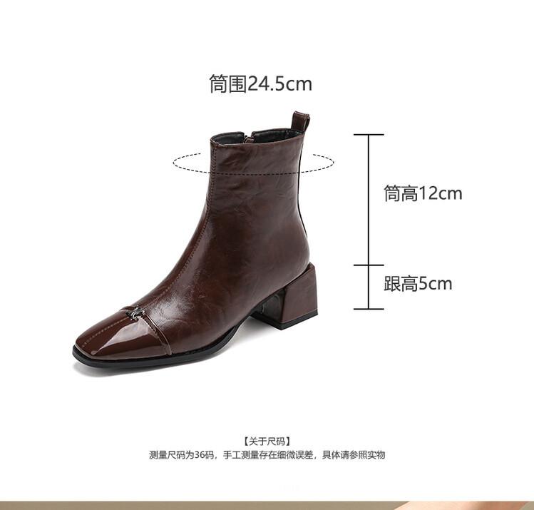 Otoño e invierno botas Martin de tacón bajo para mujer cremallera lateral talla grande botas de cuero tacón cuadrado cómodas punta cuadrada botas de mujer estilo coreano botas de media caña para mujer