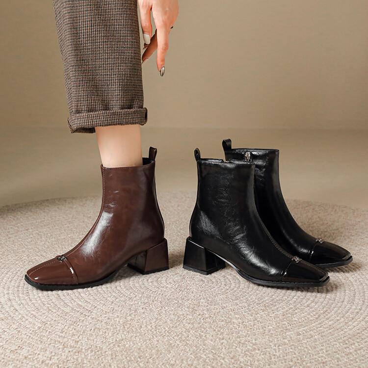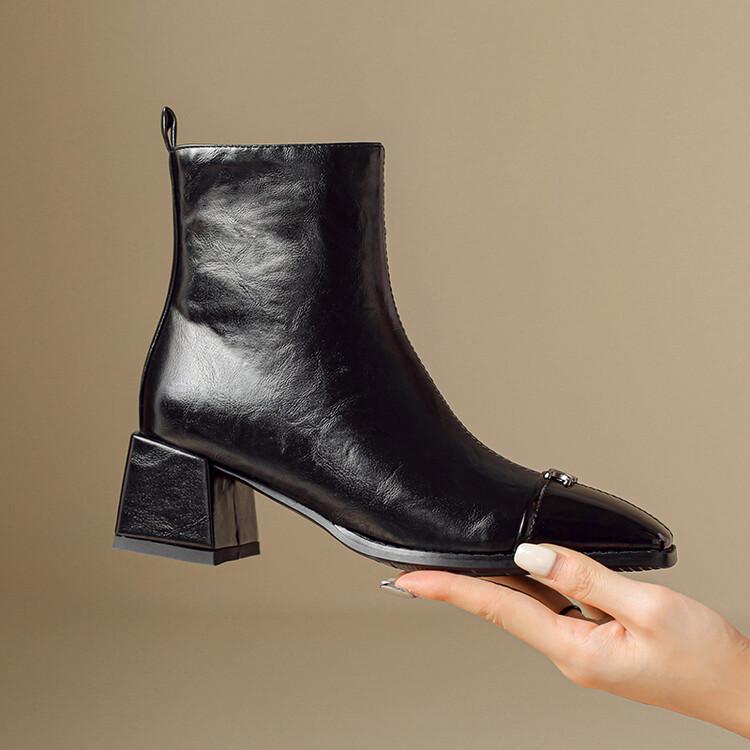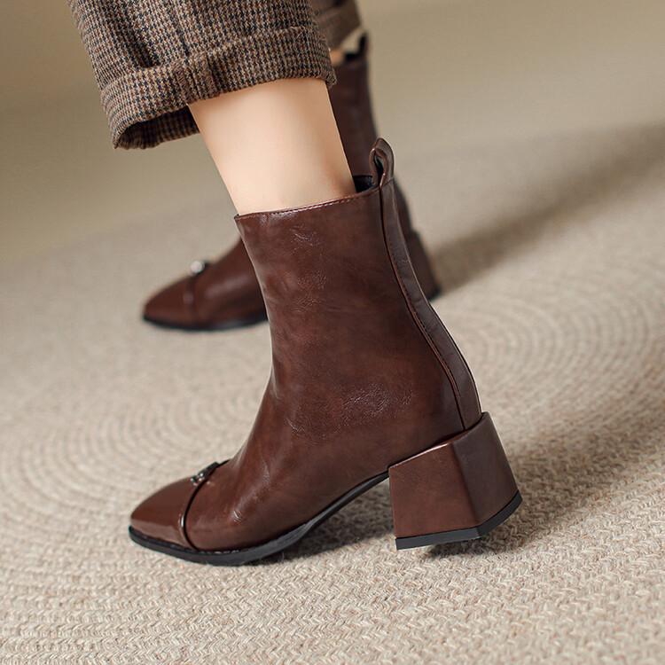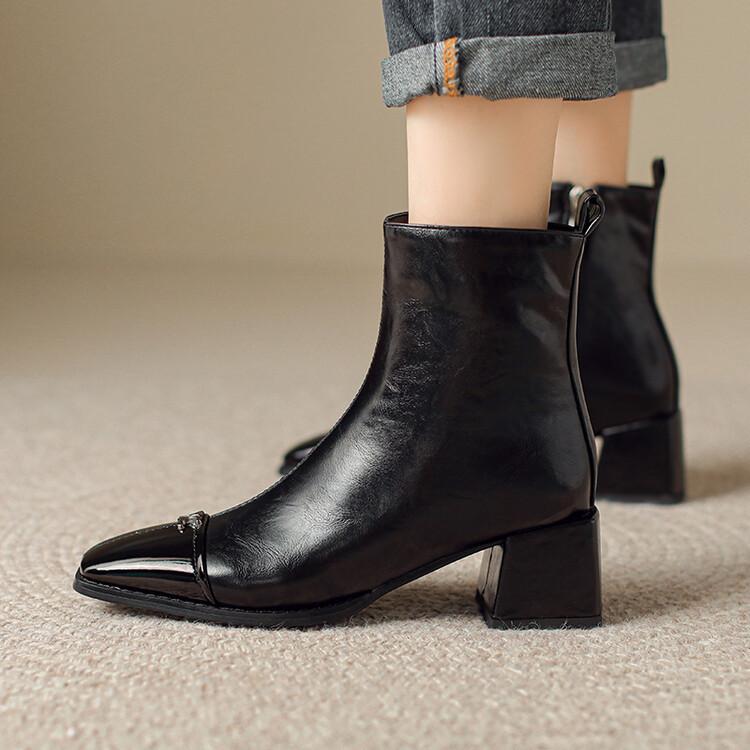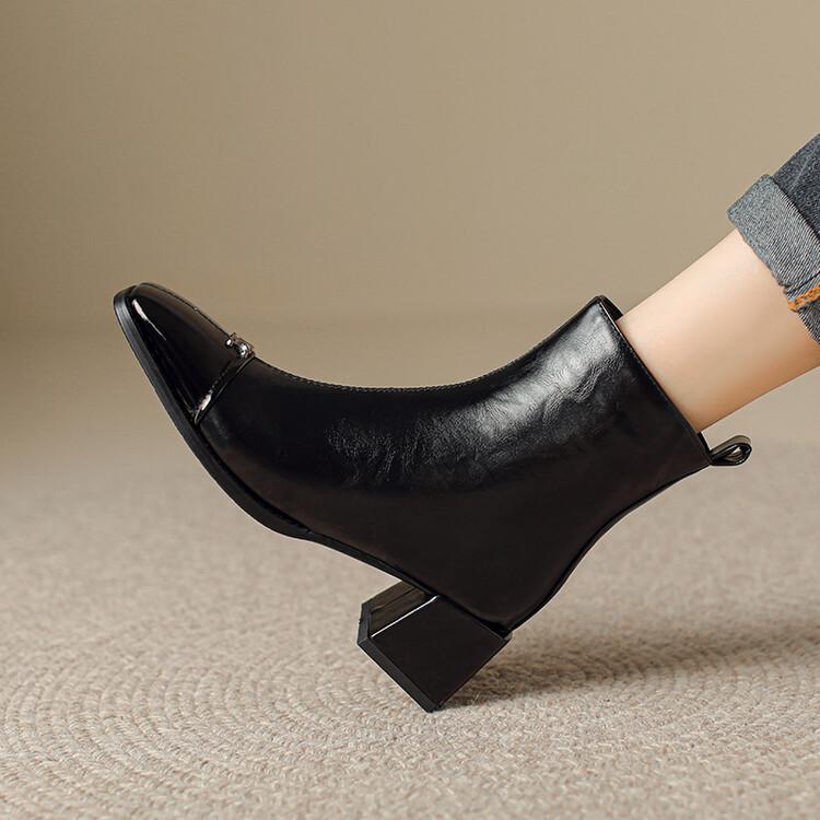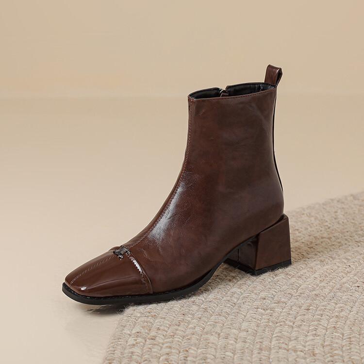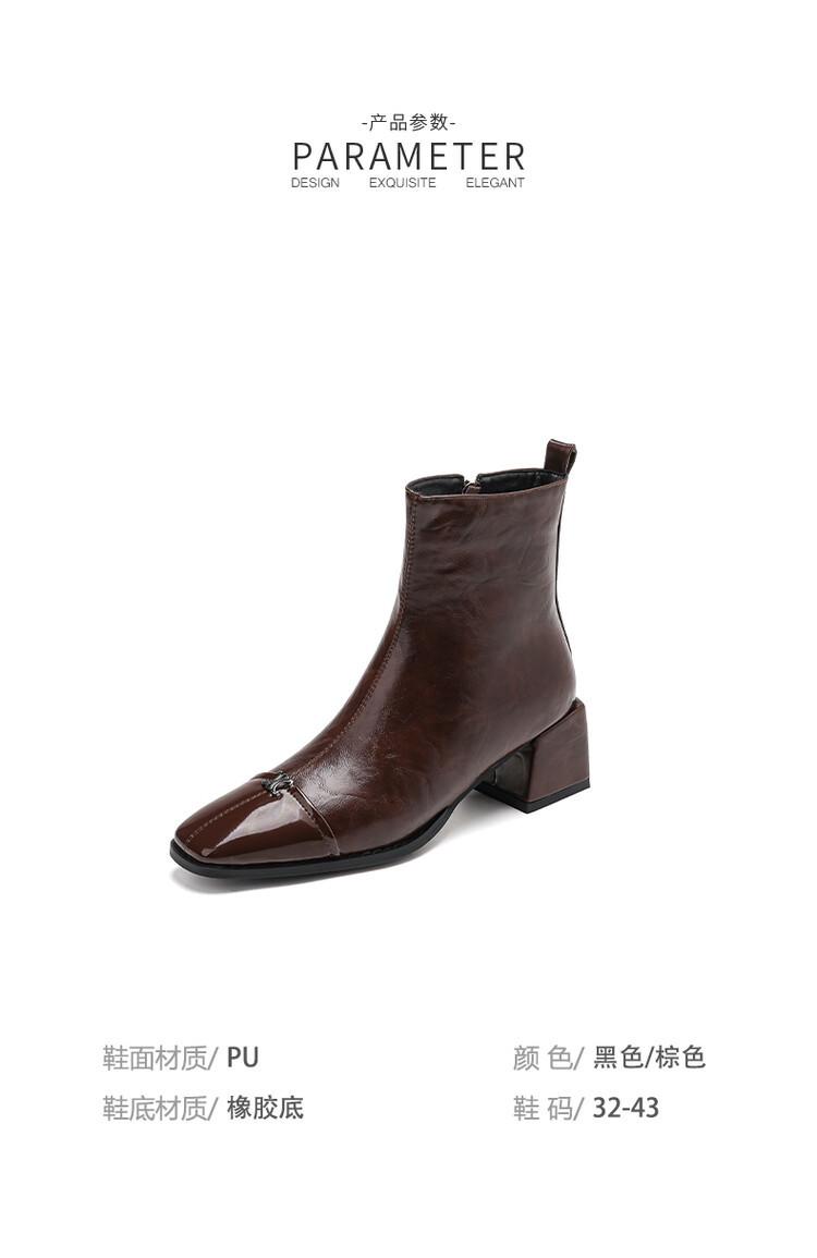 Otoño e invierno botas Martin de tacón bajo para mujer cremallera lateral talla grande botas de cuero tacón cuadrado cómodas punta cuadrada botas de mujer estilo coreano botas de media caña para mujer