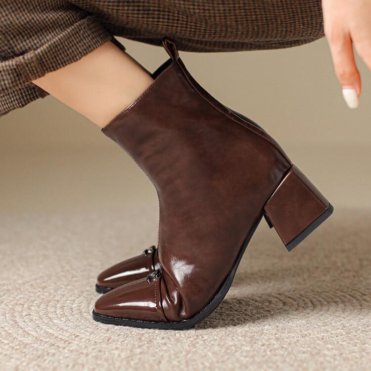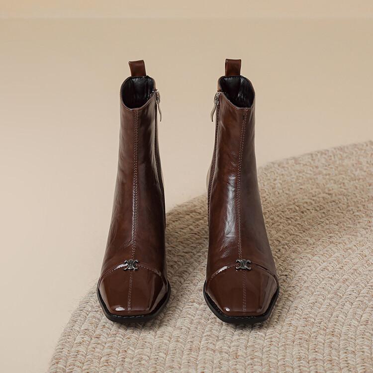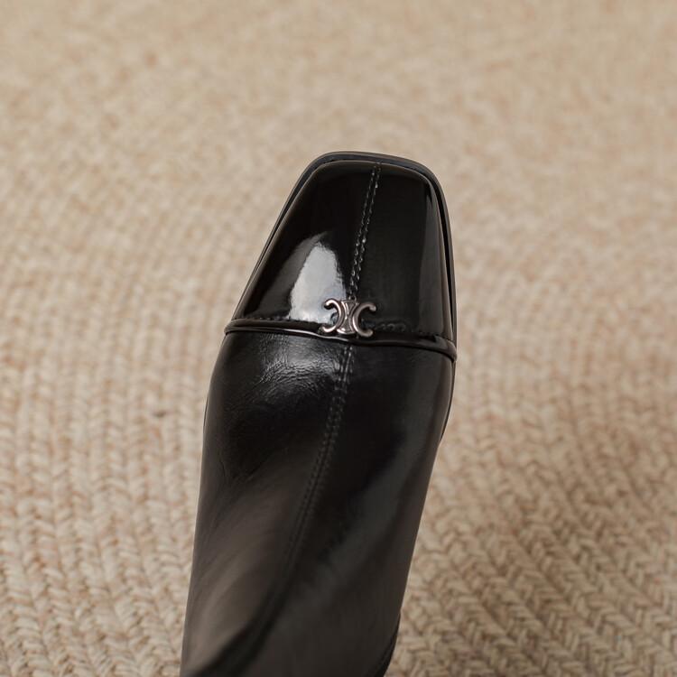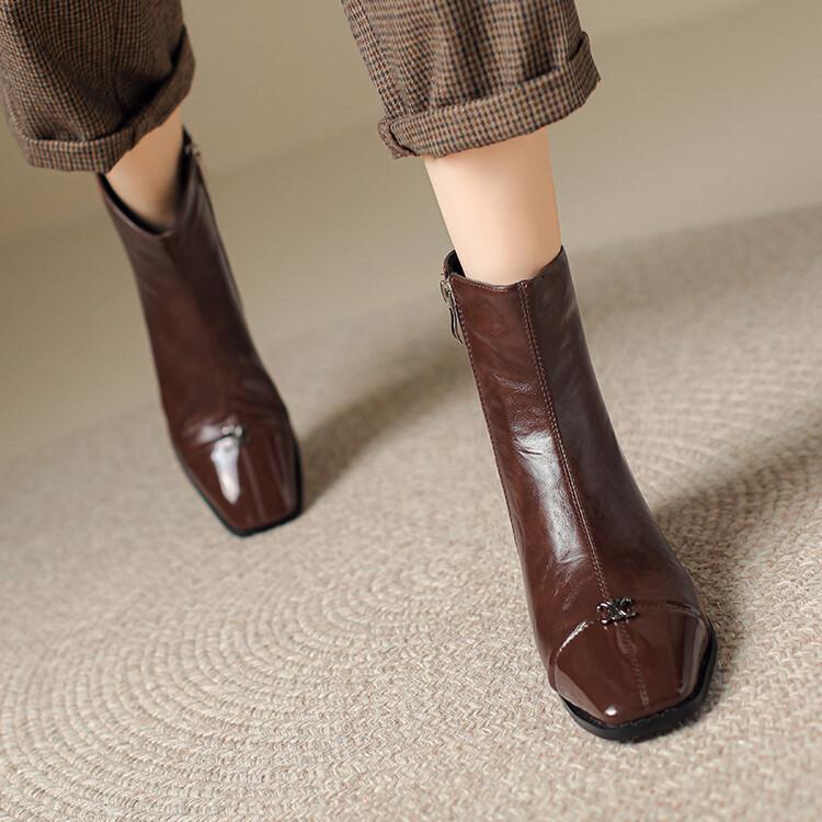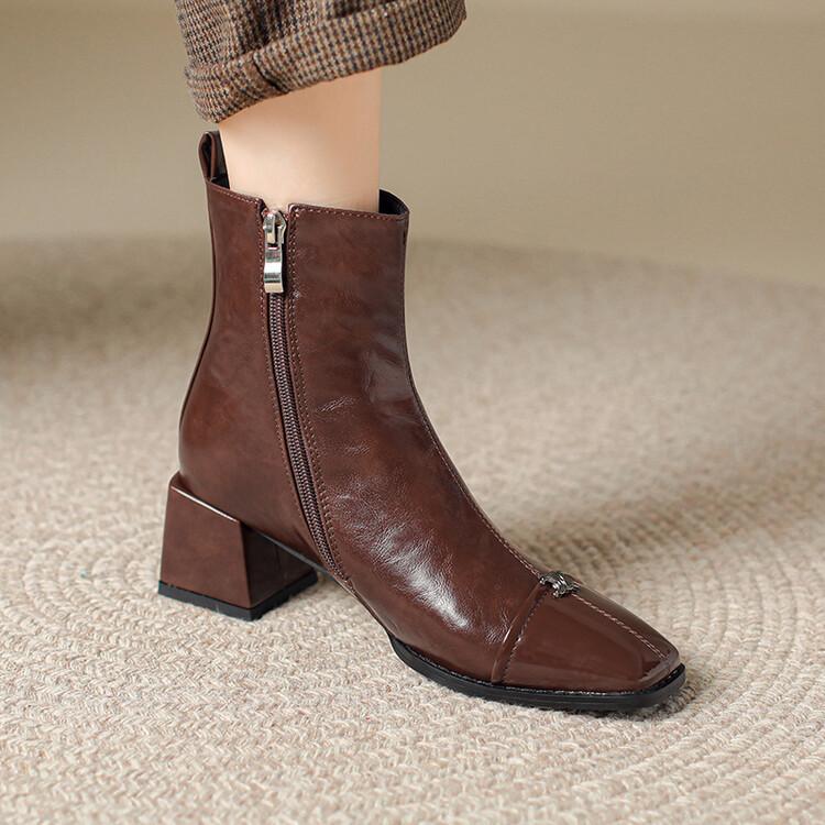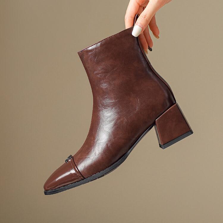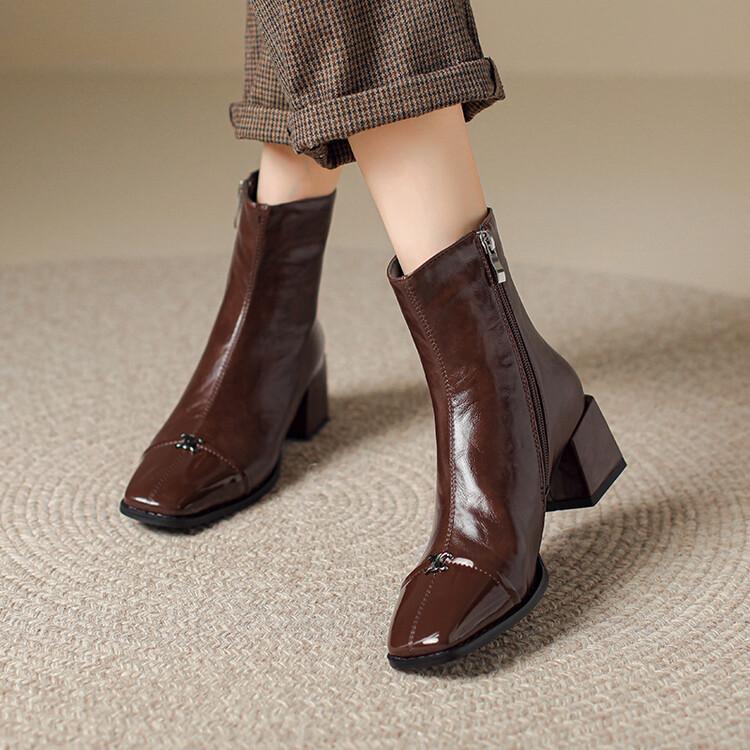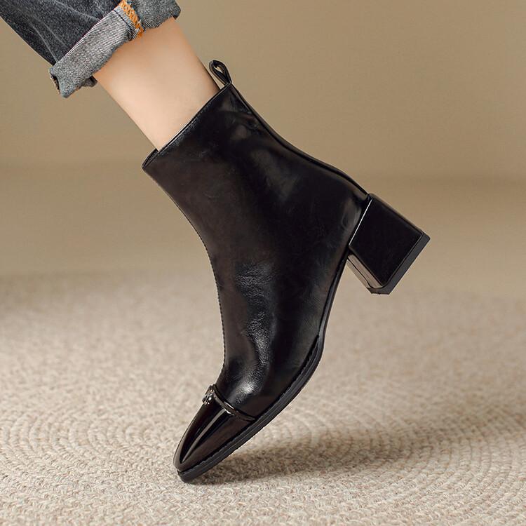 Otoño e invierno botas Martin de tacón bajo para mujer cremallera lateral talla grande botas de cuero tacón cuadrado cómodas punta cuadrada botas de mujer estilo coreano botas de media caña para mujer