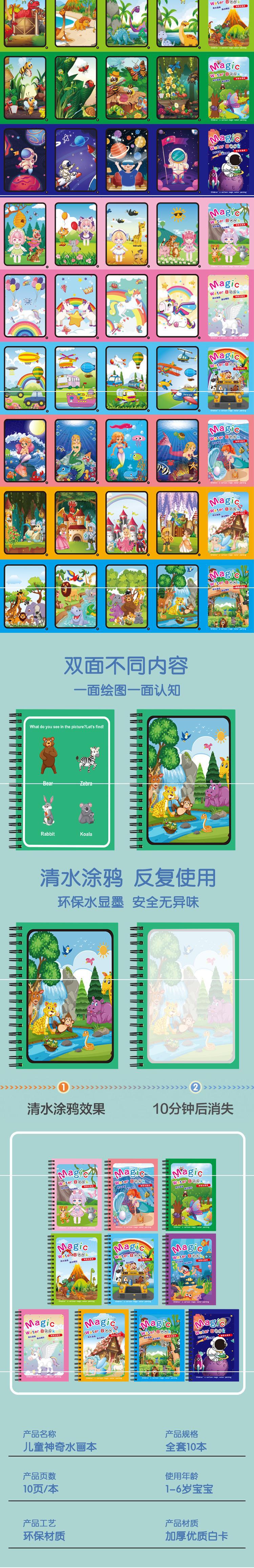 Libro de pintura mágica al agua para niños, libro mágico y tranquilo de bricolaje, libro para colorear de grafitis para bebés, libro de imágenes de agua clara, juguete