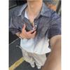 Camisa de Manga Corta de Seda de Hielo de Secado Rápido con Color Degradado para Hombre, Holgada, Moderna, Verano, Estilo Americano Urbano, Casual, Versátil
