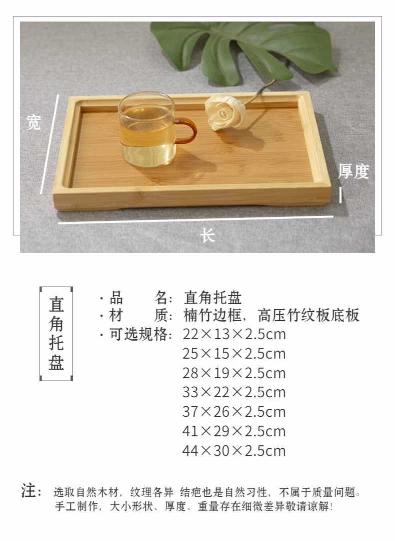 Bandeja de Madera de Bambú Japonés Bandeja de Té Doméstica Bandeja para Tazas Bandeja Rectangular de Bambú Bandeja para Servir de Hotel Restaurante Bandeja para Barbacoa