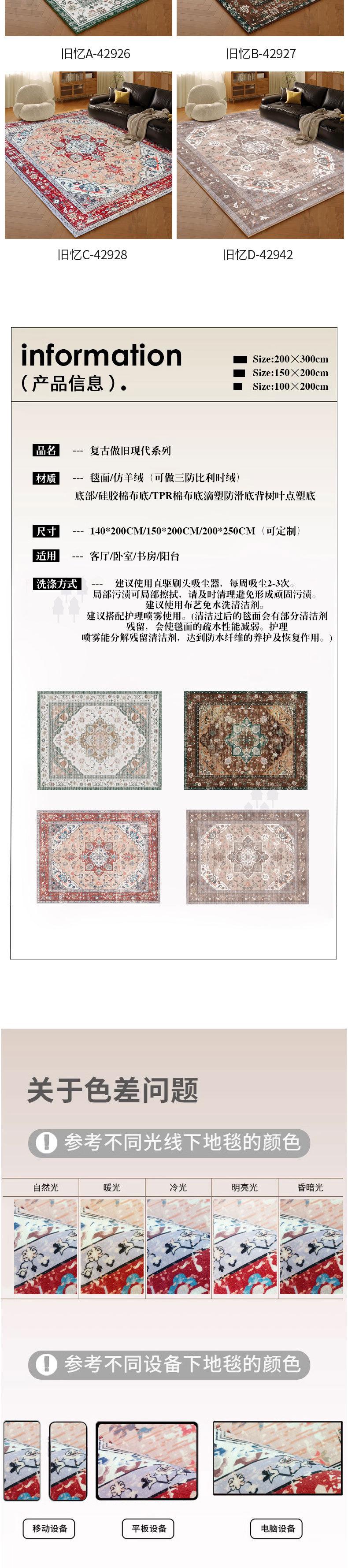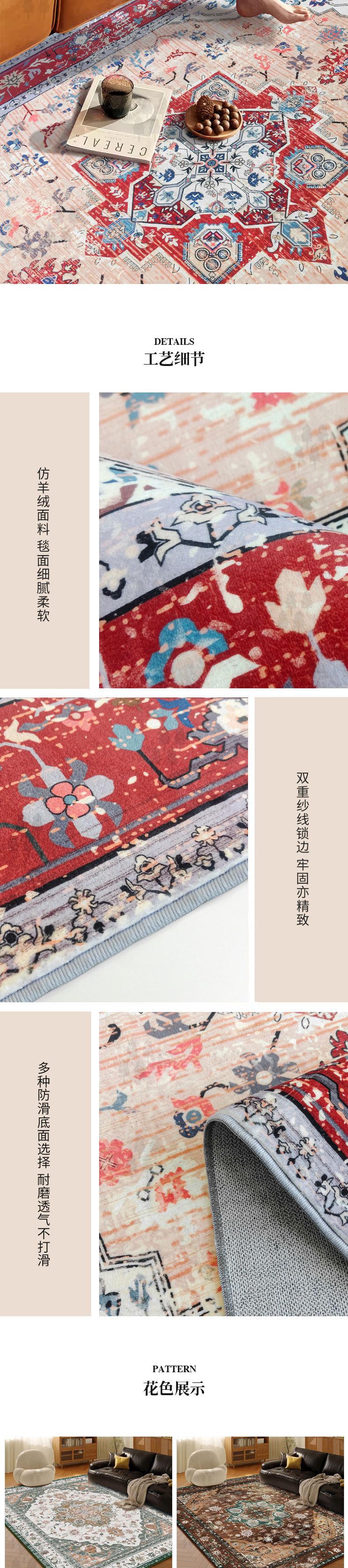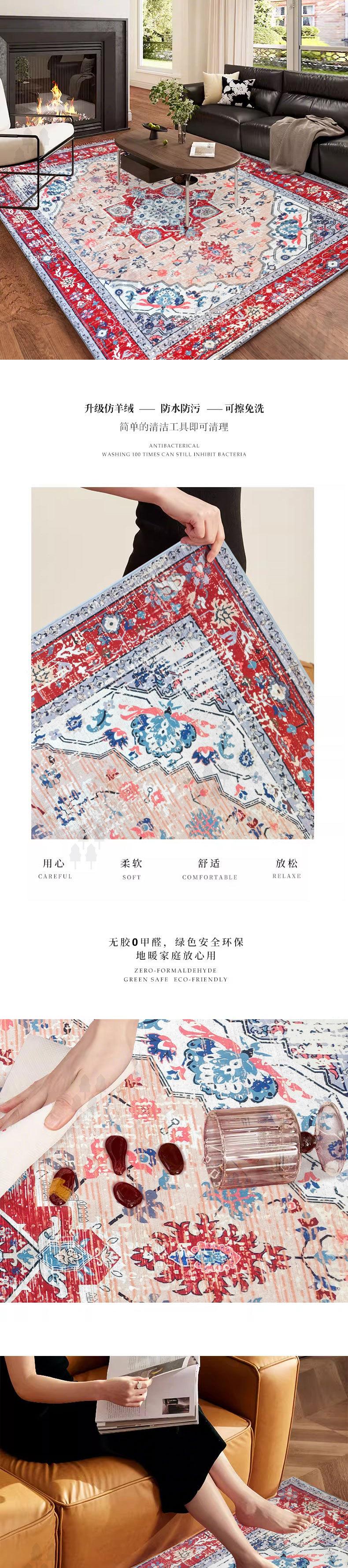 Alfombra para Sala de Estar Transfronteriza Estilo Retro Alfombra para Sofá Mesa de Centro Fondo Lavable Tpr Estilo Persa Dormitorio Alfombra de Piso Lavable