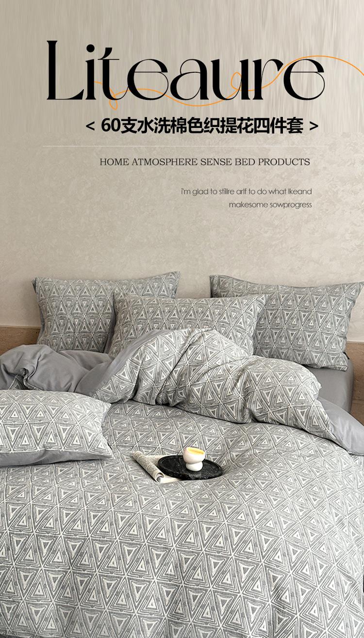 Juego de cuatro piezas Jacquard de Algodón Puro de Alta Gama, Sábanas y Fundas de Edredón de Algodón Clase A, Estilo Lujo Accesible Ropa de Cama de Algodón 100% al Por Mayor