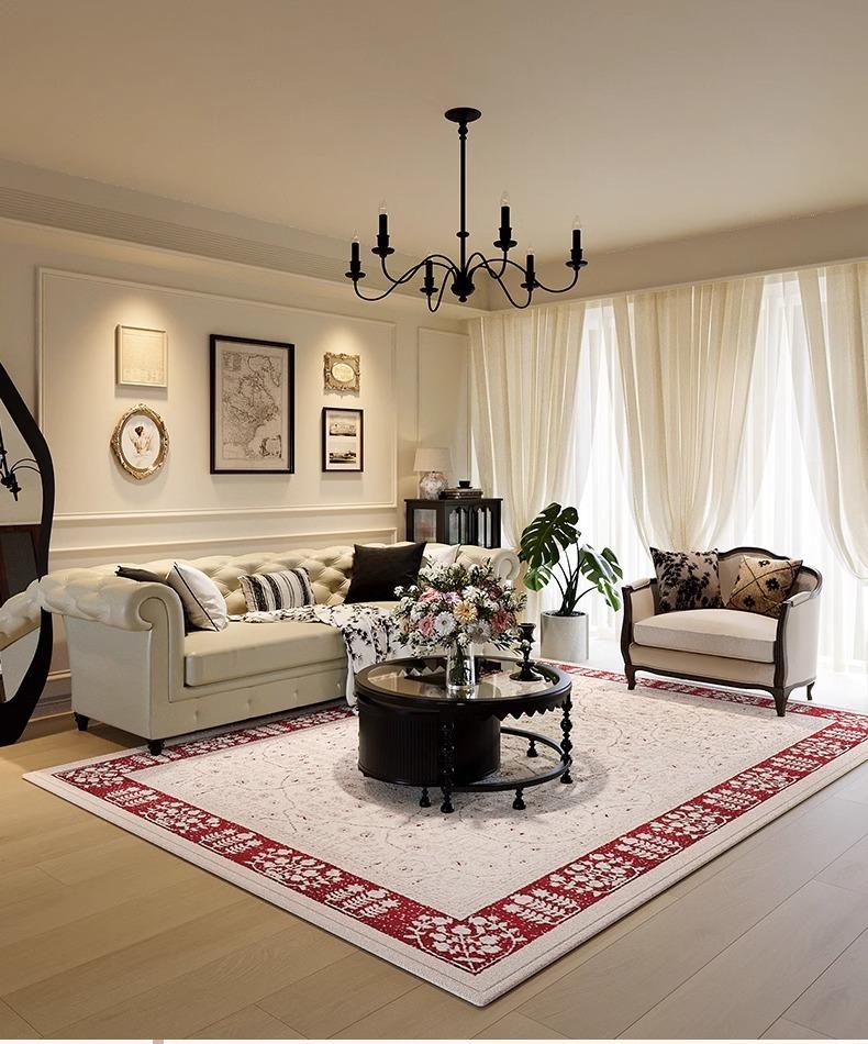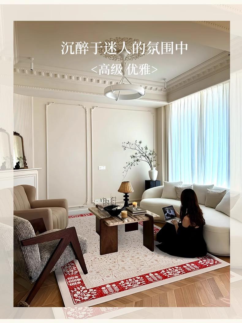 Alfombra Nueva Sala de Estar Sofá Tapete de Piso Francés Avanzado Recámara Lavable Impermeable Hogar Mesa de Centro Cama Tapete de Noche