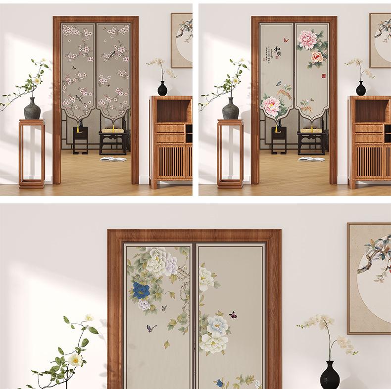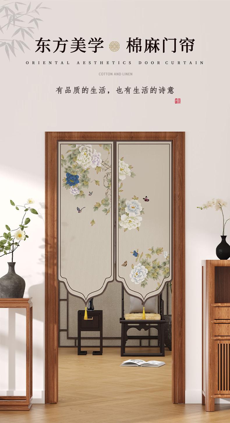 [heterosexual cotton and linen texture door curtain] dielianhua b-two-piece (send rod + hanging tassel), [hete...