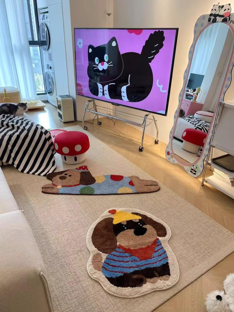 Alfombra Flotada Sala de Estar Alfombra de Huellas de Cachorro Imitación Cachemira Alfombra Mat Antideslizante Manta para Sala de Estar Dormitorio Manta Linda de Cabecera