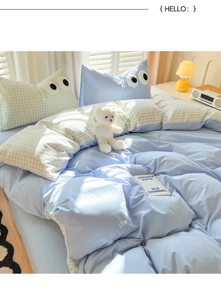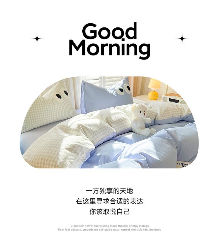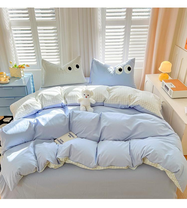Nuevo juego de cama de cuatro piezas supersuave y agradable para la piel estilo ins funda nórdica nube sábana dormitorio de estudiantes juego de cama de tres piezas 4