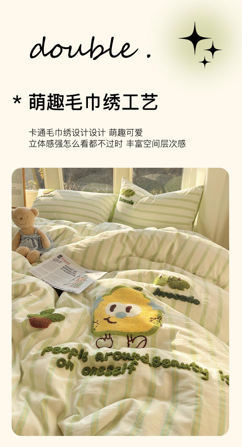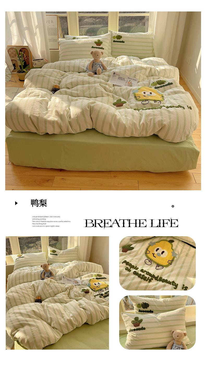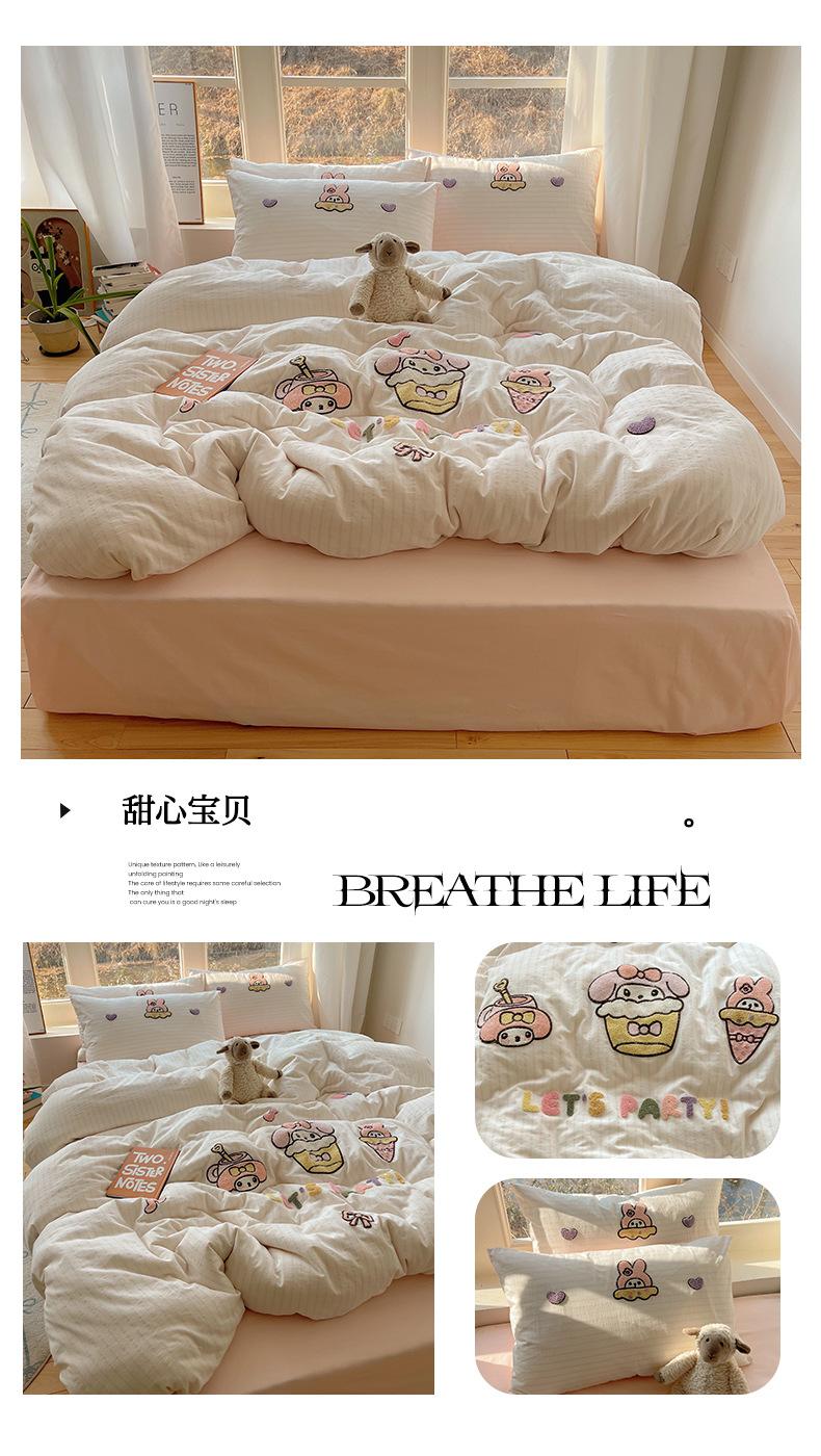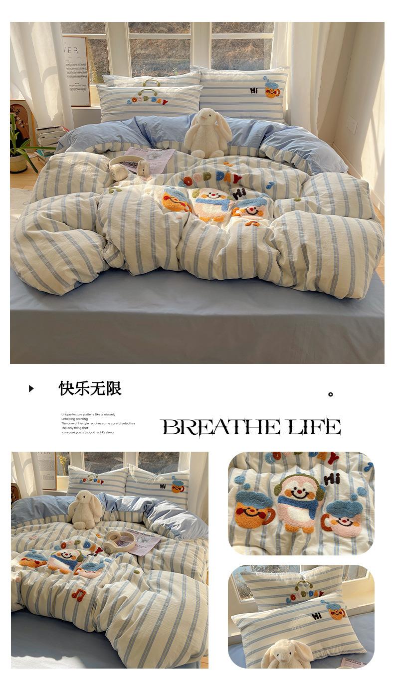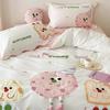 Toalla de Dibujos Animados Algodón Bordado Juego de Cama de Cuatro Piezas Algodón Dormitorio de Estudiantes para Niñas Sábana Cubrelecho Juego de Tres Piezas Ropa de Cama