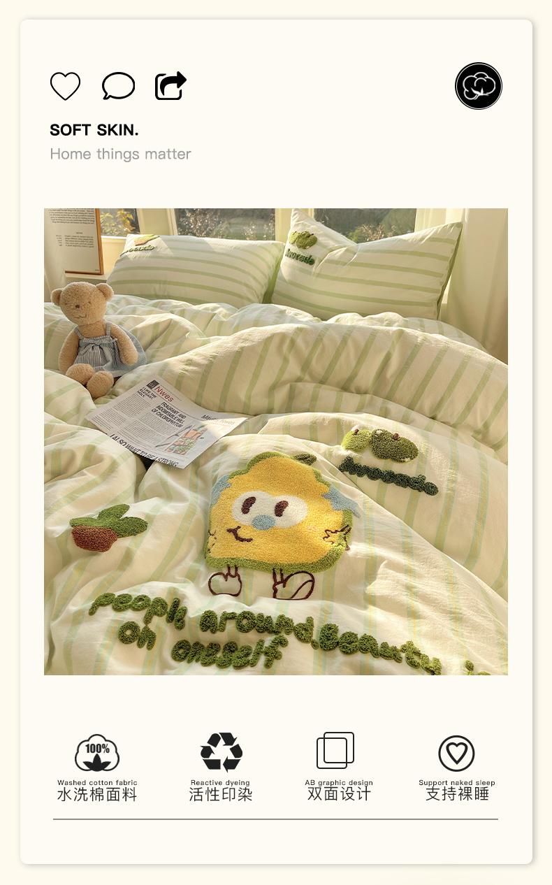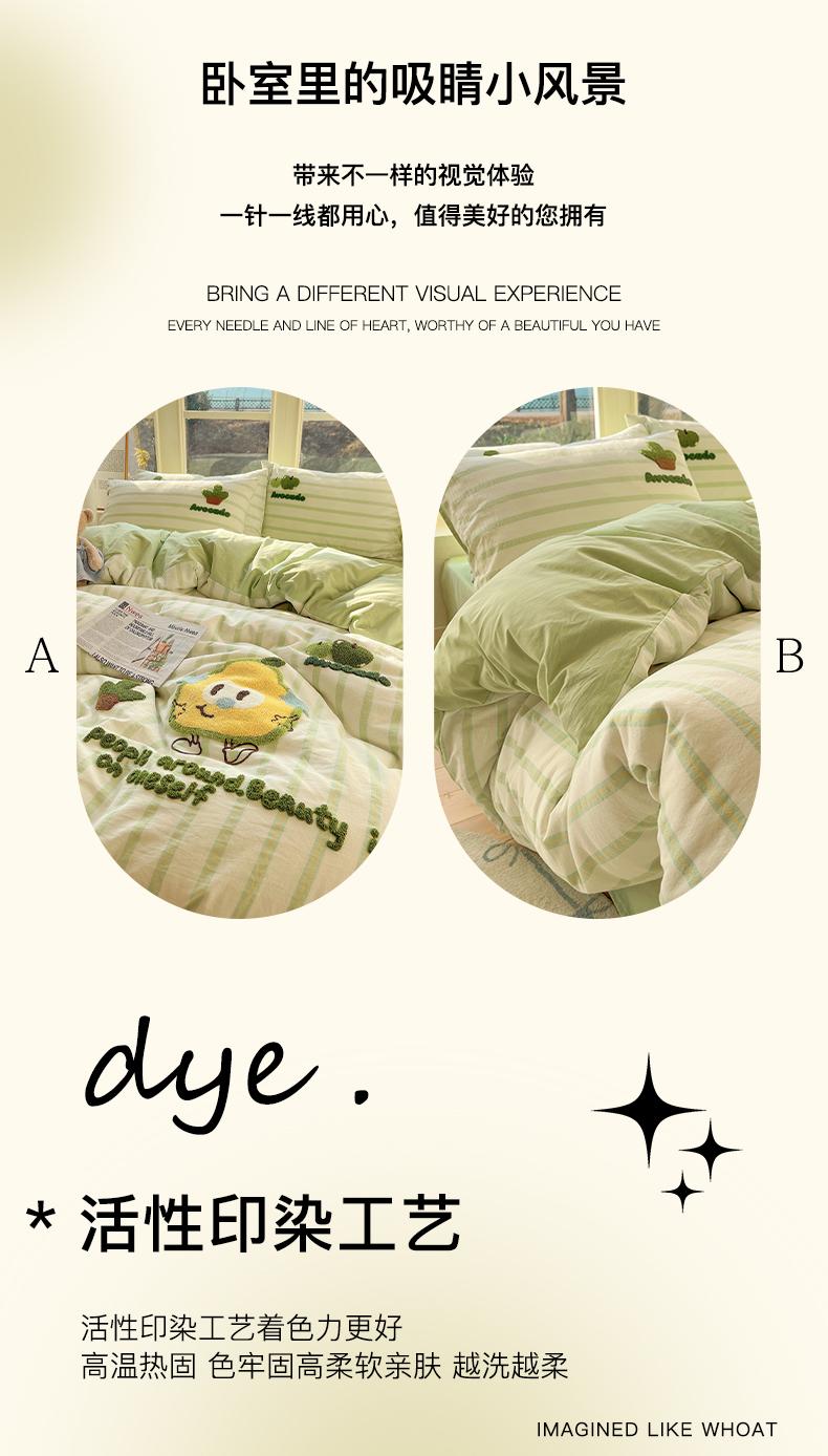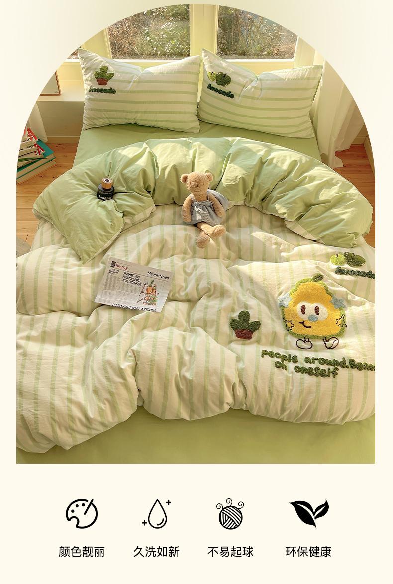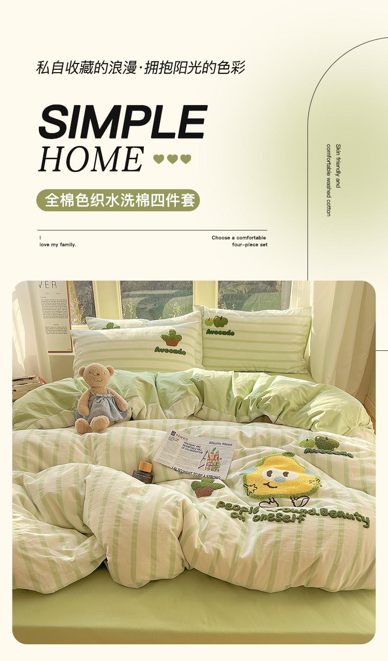 Toalla de Dibujos Animados Algodón Bordado Juego de Cama de Cuatro Piezas Algodón Dormitorio de Estudiantes para Niñas Sábana Cubrelecho Juego de Tres Piezas Ropa de Cama