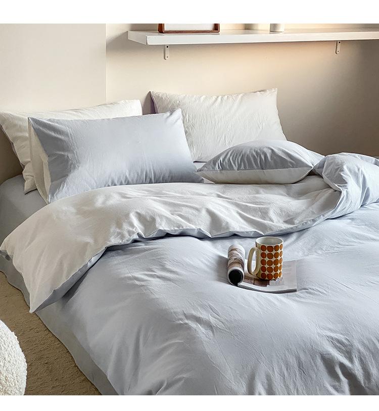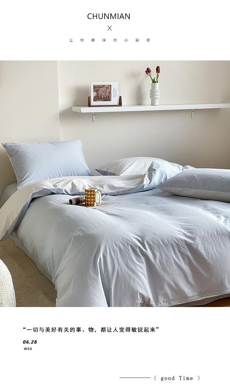 Juego de cuatro piezas de ropa de cama Ins Algodón puro Algodón Sábana Cubre edredón Cubrecama Dormitorio de estudiantes Juego individual de tres piezas