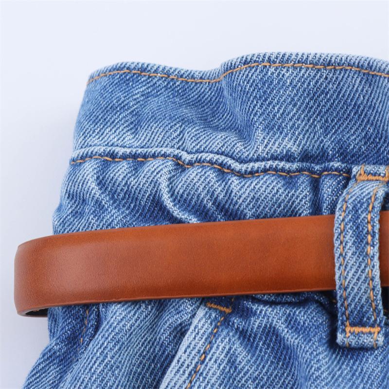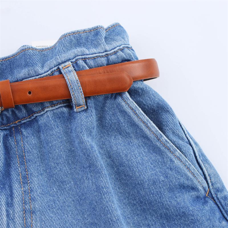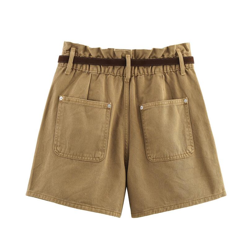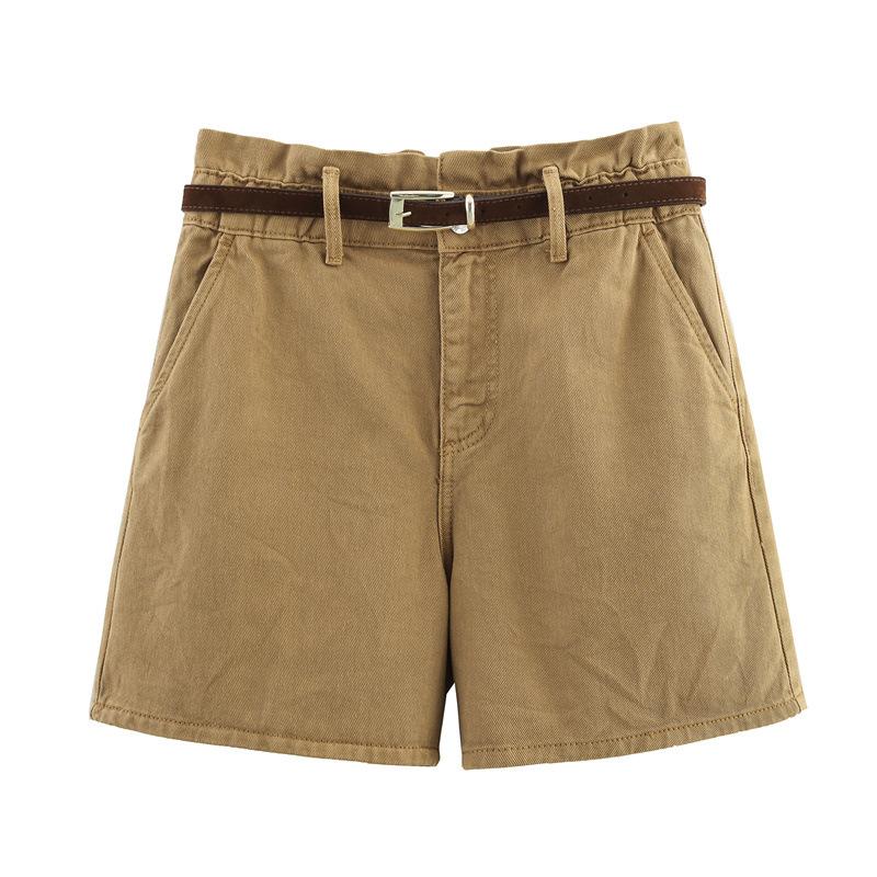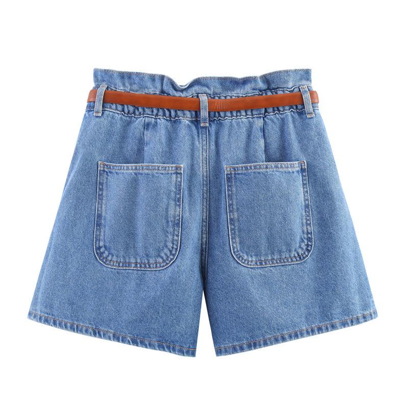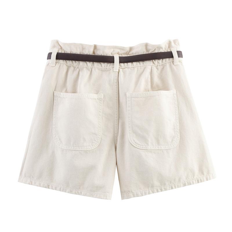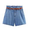 Pantalones casuales de verano para mujer de tres colores tipo bolsa de papel, color sólido, con cinturón, shorts de mezclilla blanca, estilo transfronterizo, casual, shorts nuevos