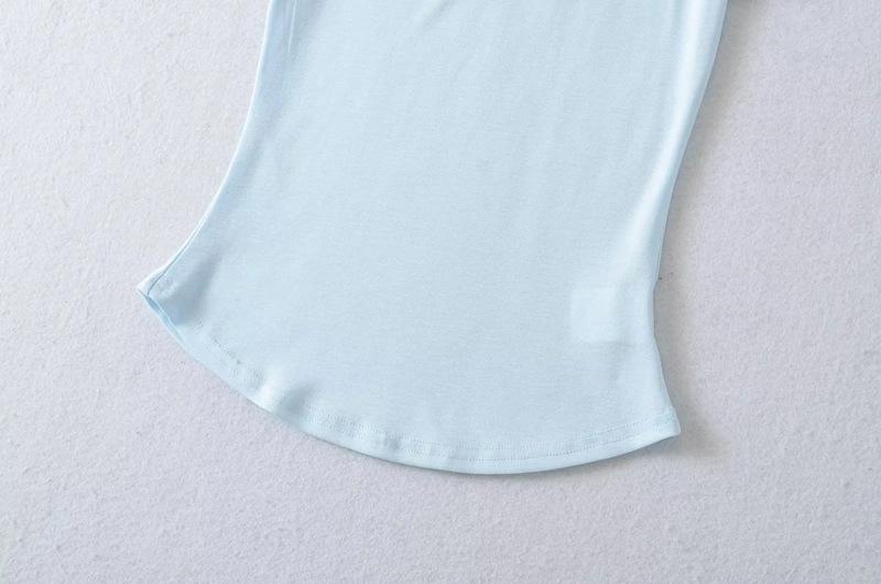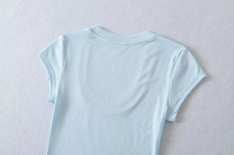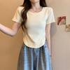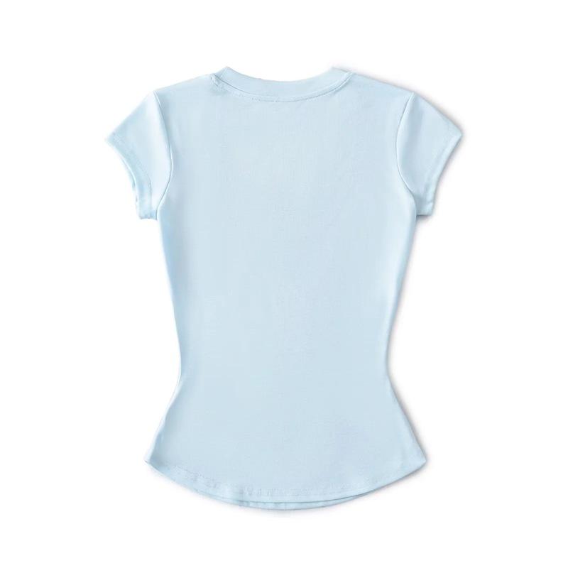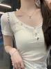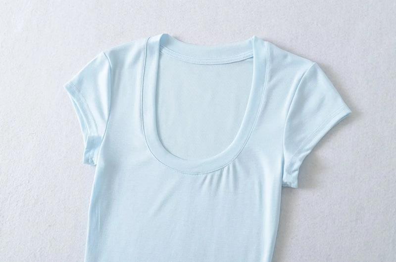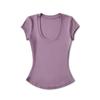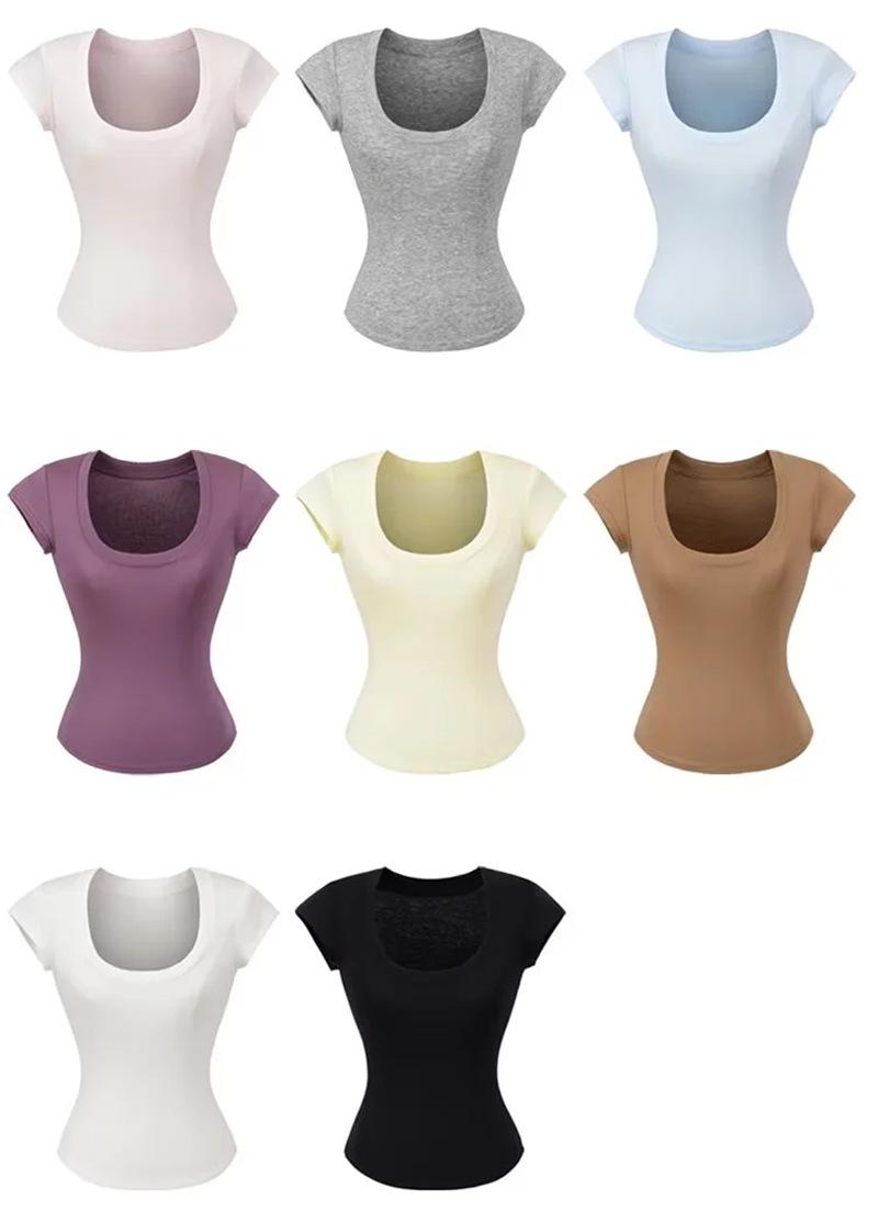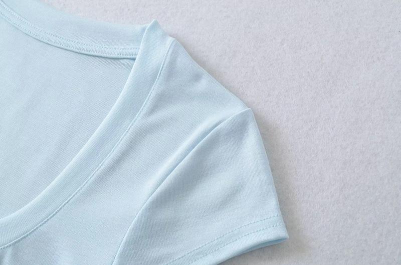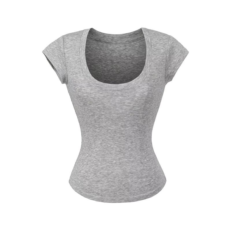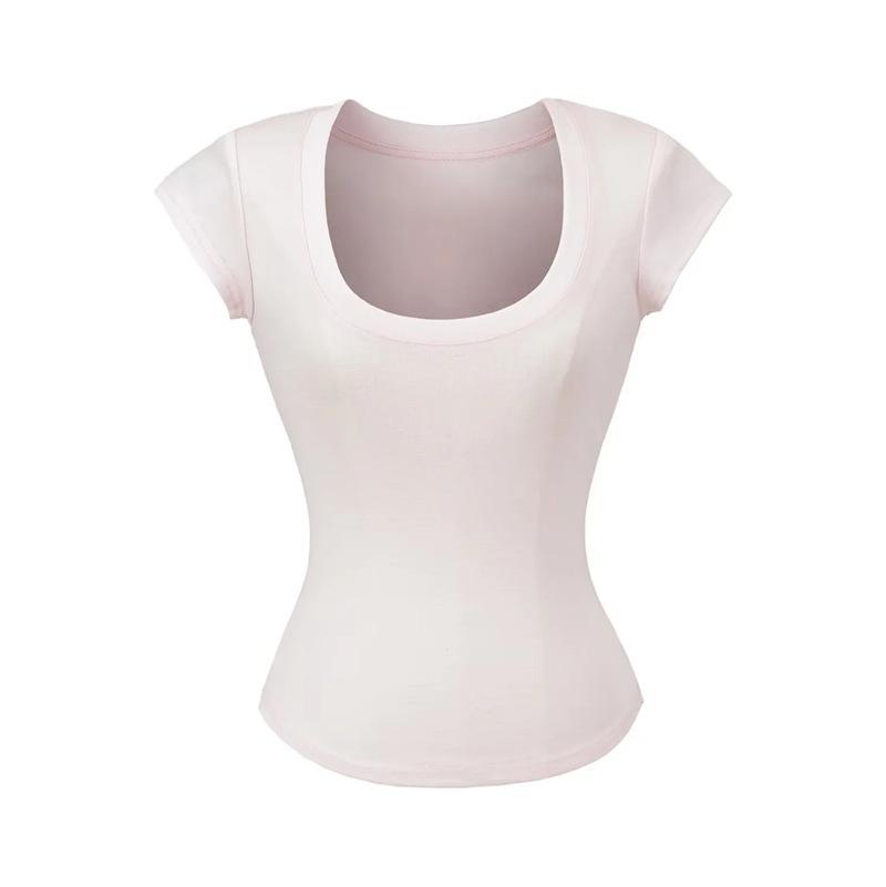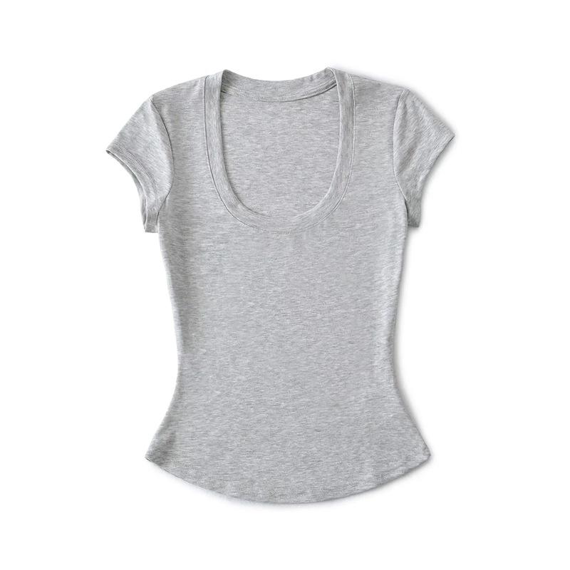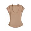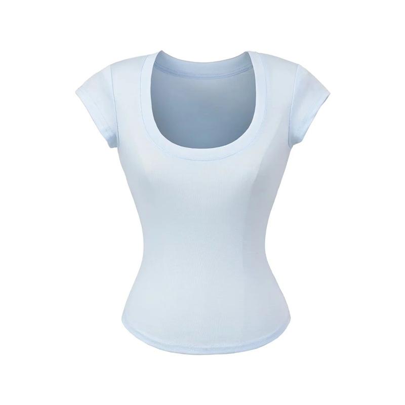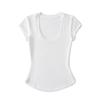 Estilo Europeo y Americano Primavera y Verano Nuevo Sexy Estilo Deseo Puro Camiseta de Manga Corta con Cuello en U de Tencel Cintura Ajustada Escote Grande Top Sexy