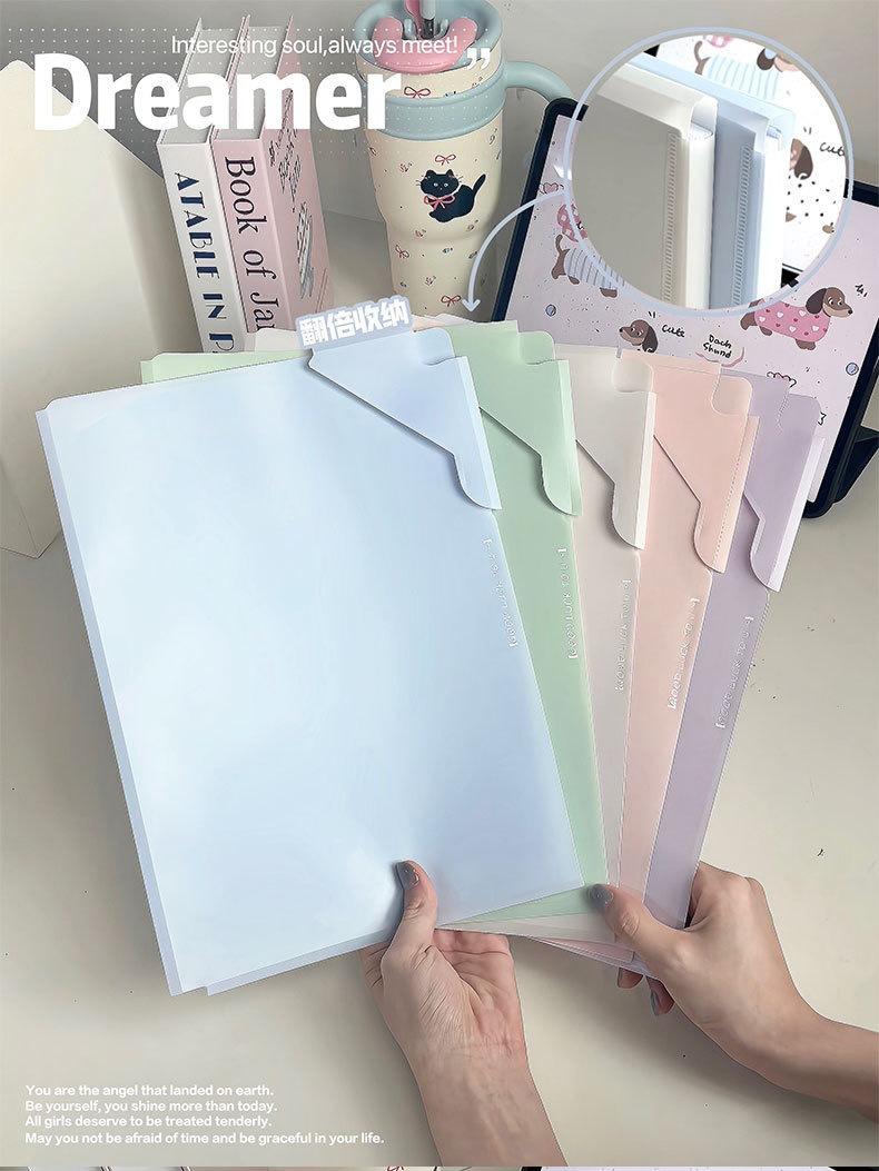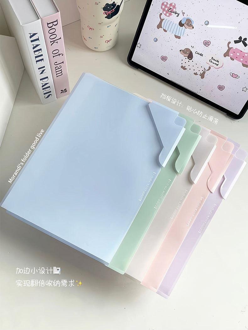 Carpeta de película A4 mejorada Morandi Color en forma de L para estudiantes, carpeta de almacenamiento de datos, gran capacidad, lotes