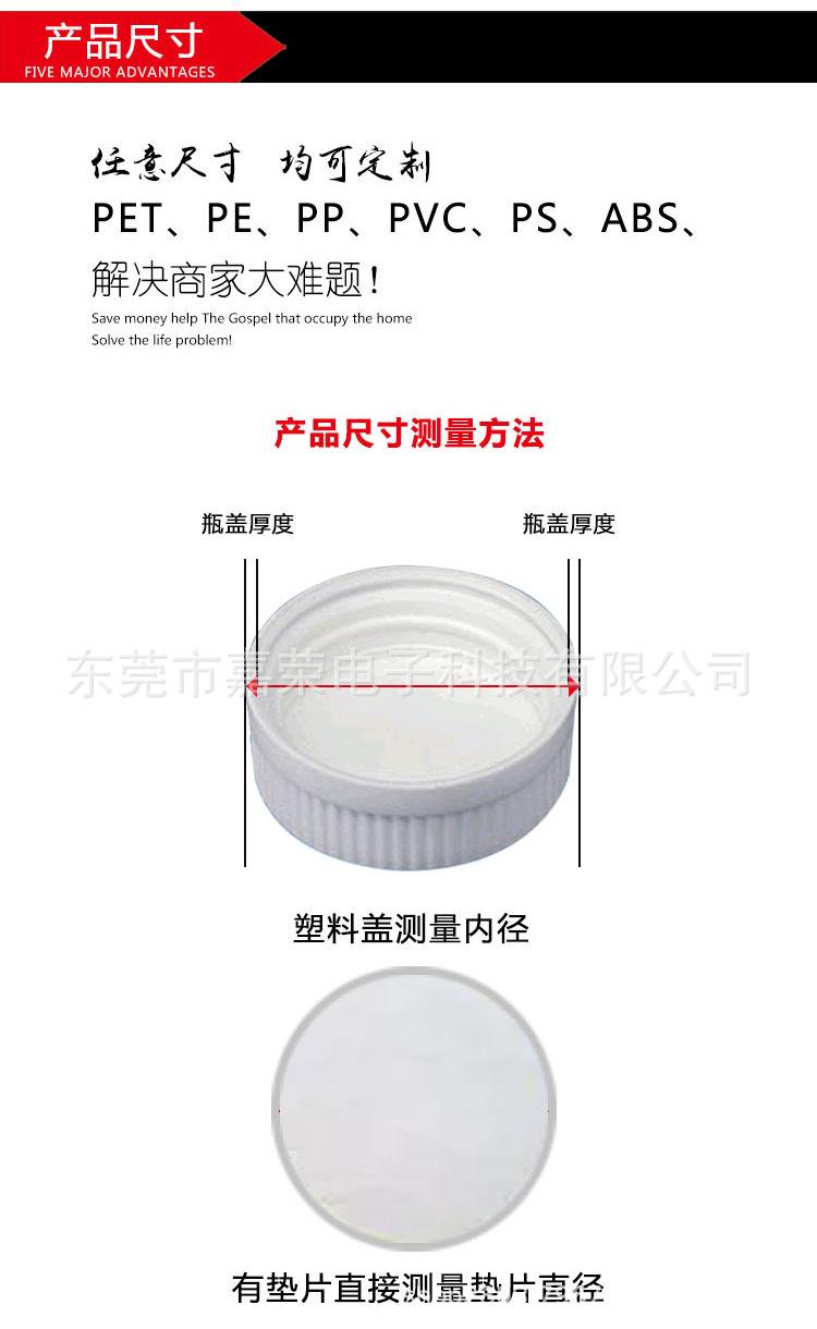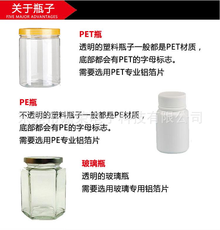 La junta de papel de aluminio está incrustada en la tapa de la botella de modo que el papel de aluminio quede expuesto, y luego se aplica al cuerpo de la botella y se aprieta la boca de la botella. La botella se puede sellar por inducción local de la máquina de sellado por inducción electromagnética.